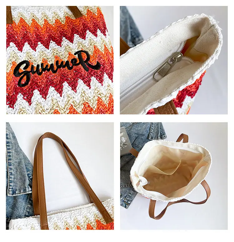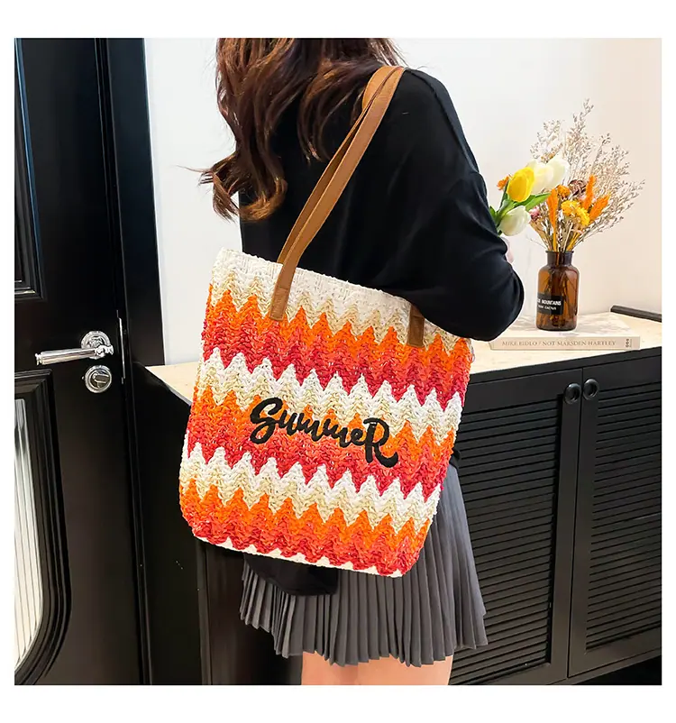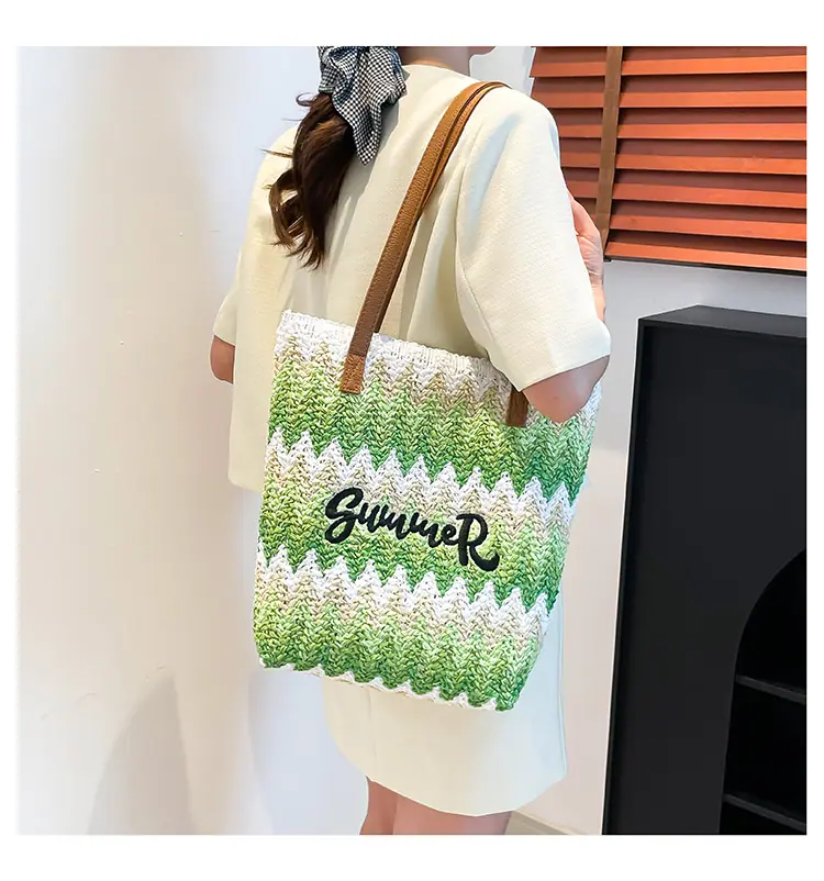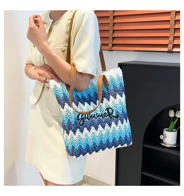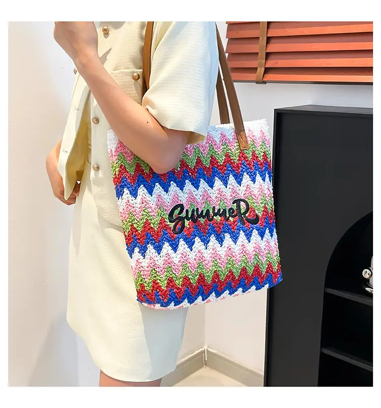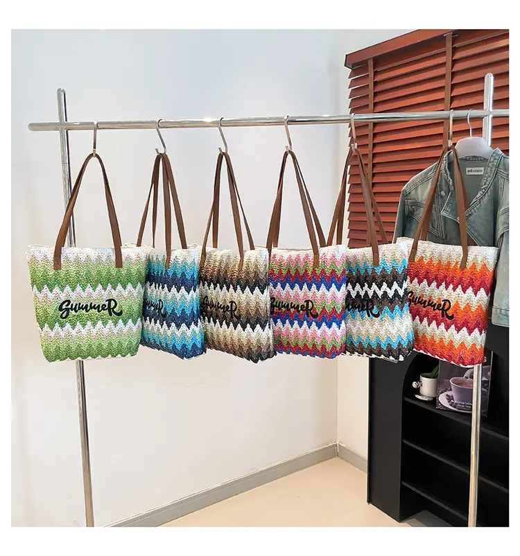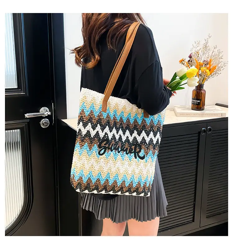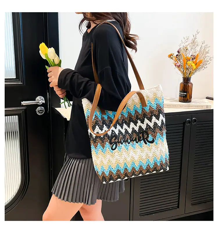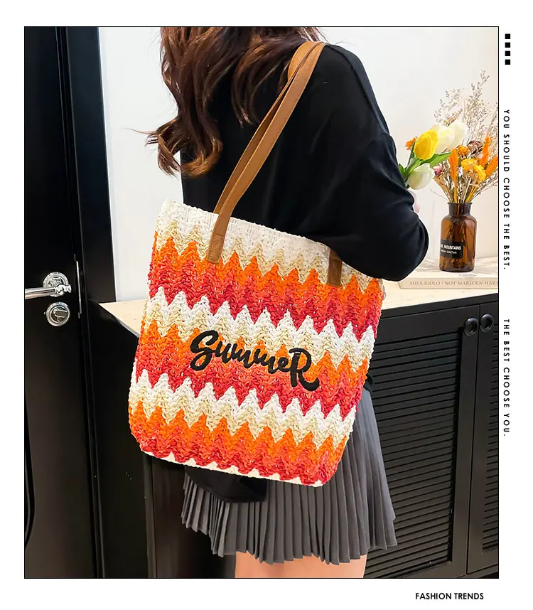 Bolso Tejido para Mujer 2025 Nuevo Vacaciones en la Playa Bolso de Hombro Bolso de Mano Bolso Tote de Gran Capacidad Bolso de Paja para Viaje