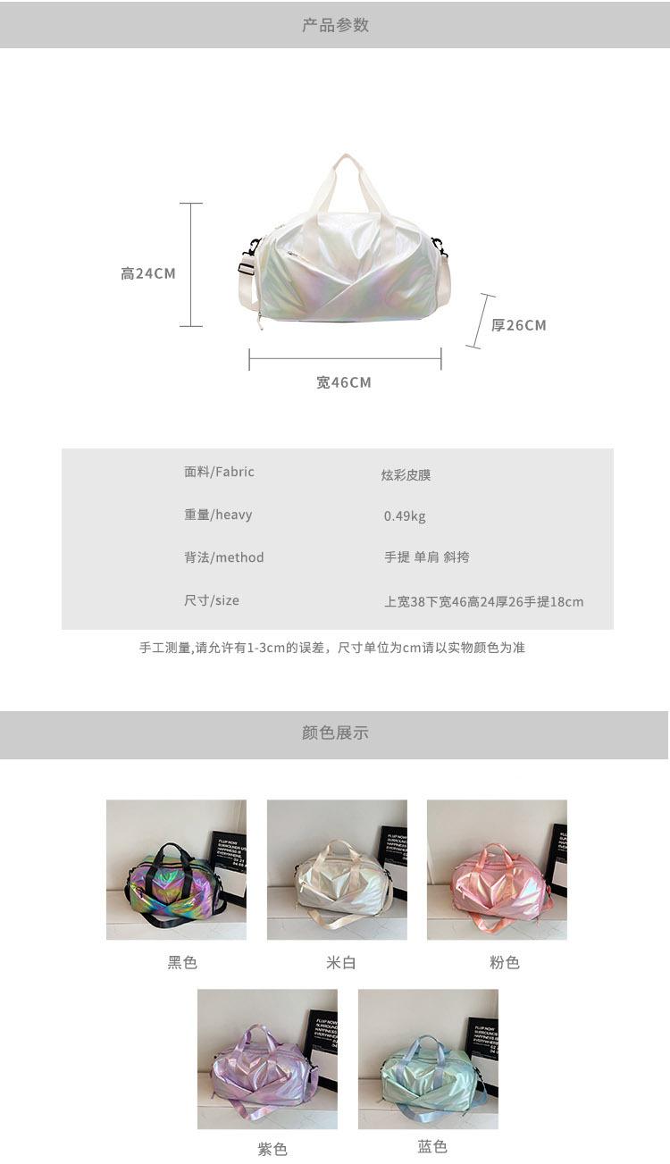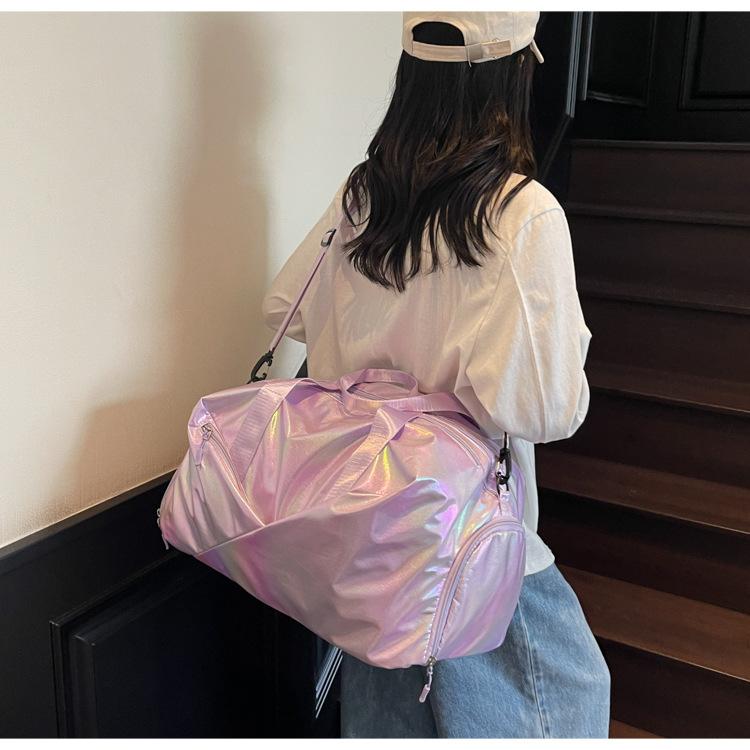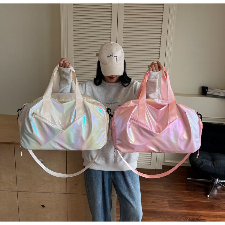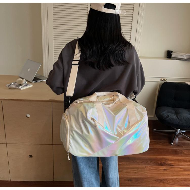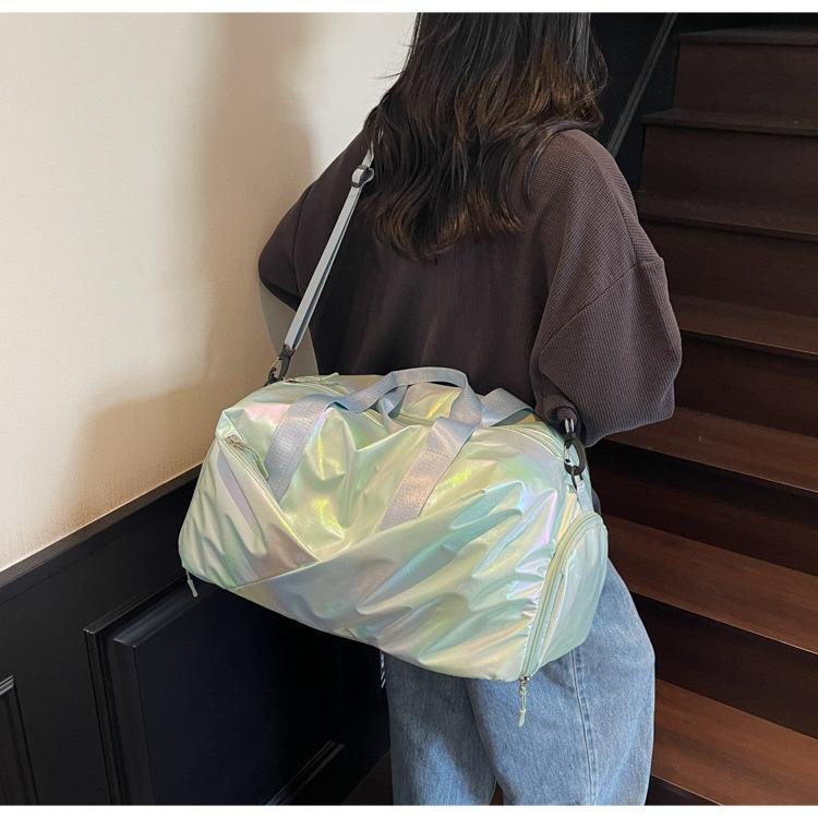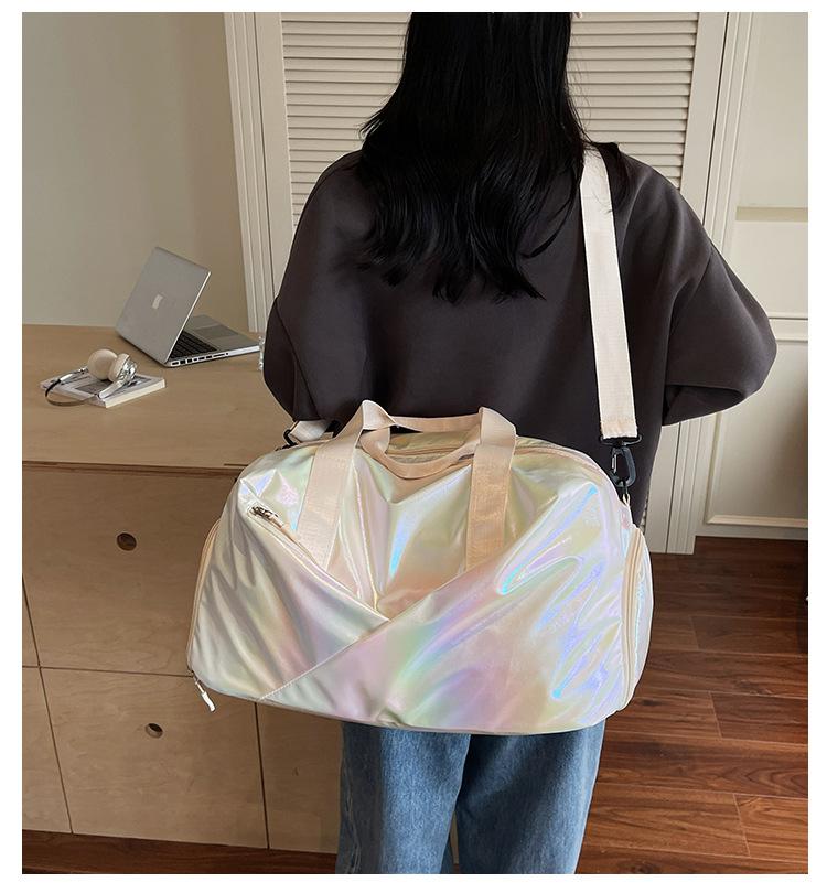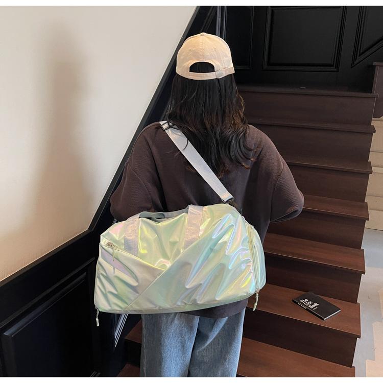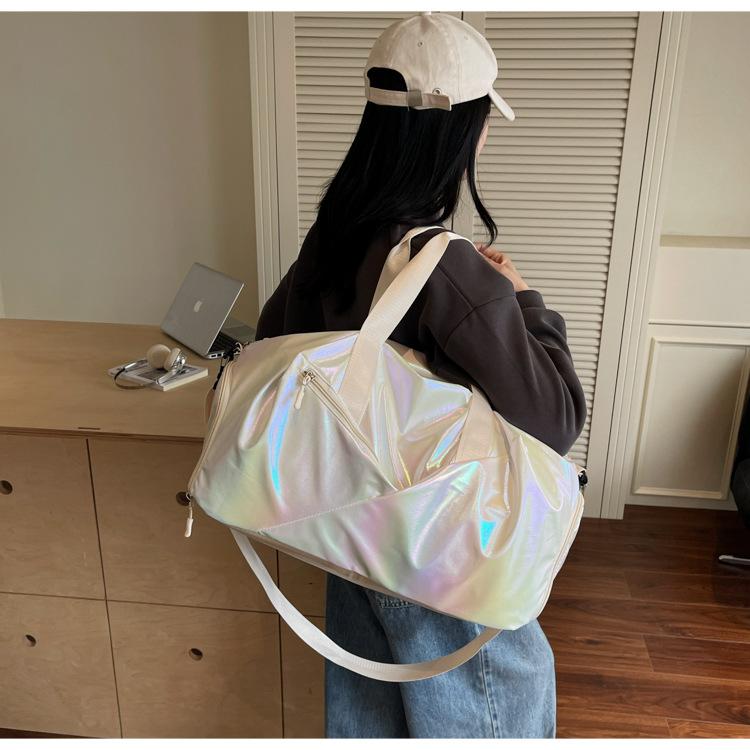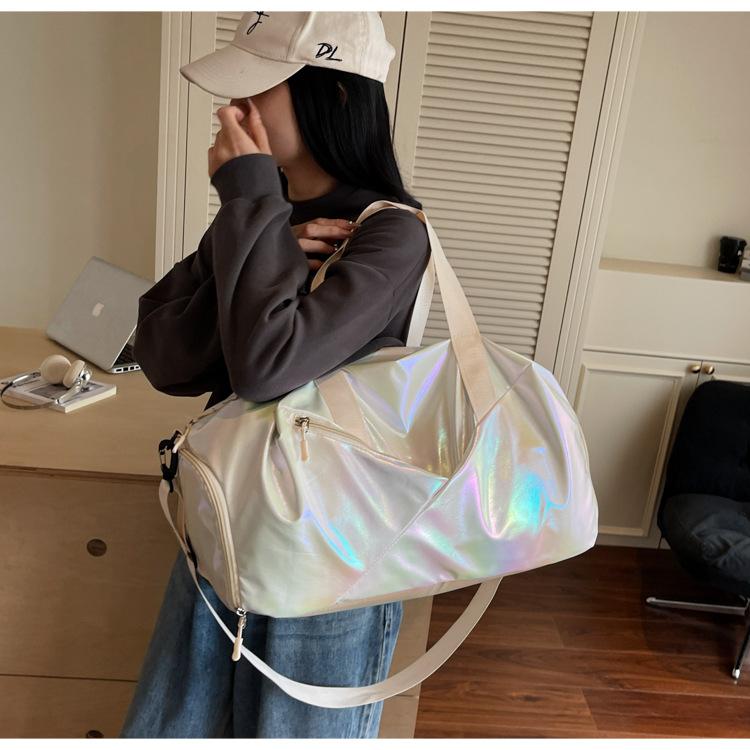 Bolsa de Viaje Iridiscente Láser de Gran Capacidad Bolsa Casual para Yoga Bolso de Mano para Viaje Corto de Mujer Bolsa Deportiva de Moda para Fitness