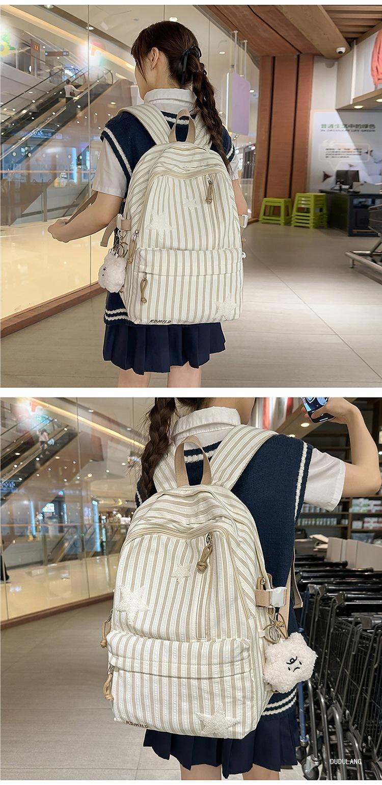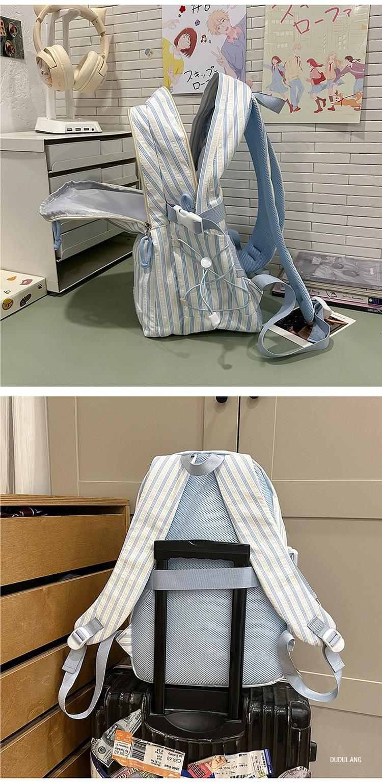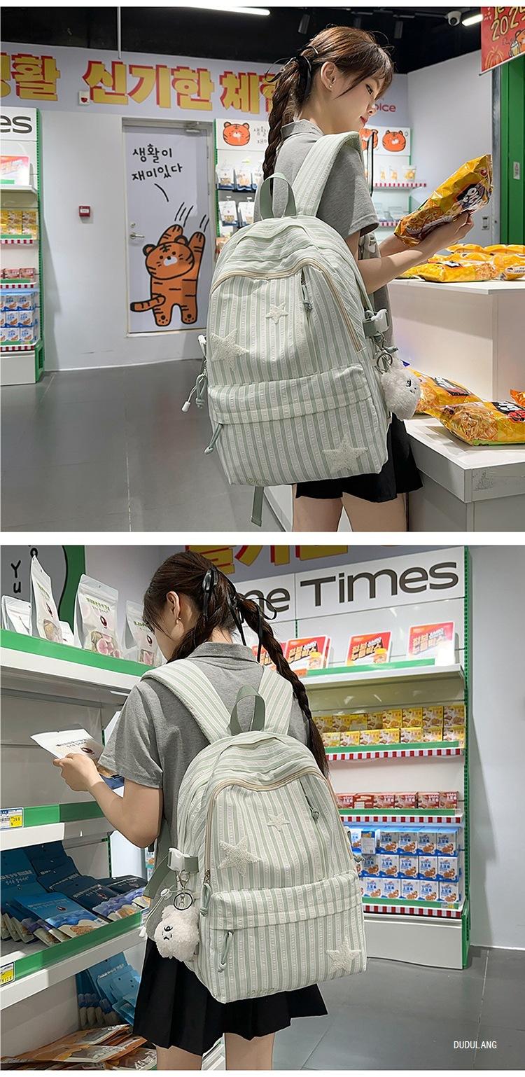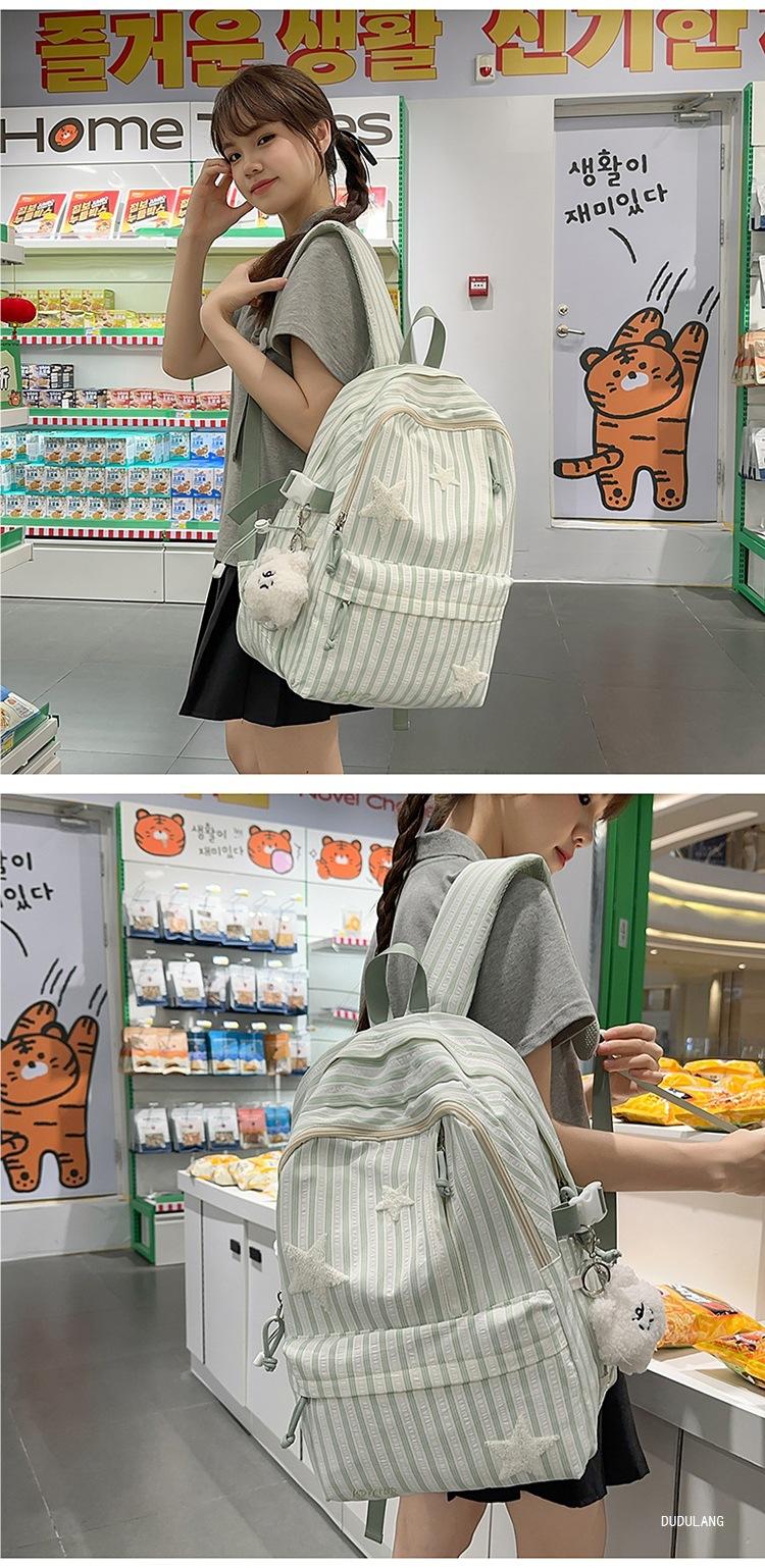 Mochila a rayas estilo coreano de gran capacidad para estudiantes de secundaria, mochila de alto valor, estudiante de secundaria, temporada de regreso a clases, nueva mochila escolar ligera