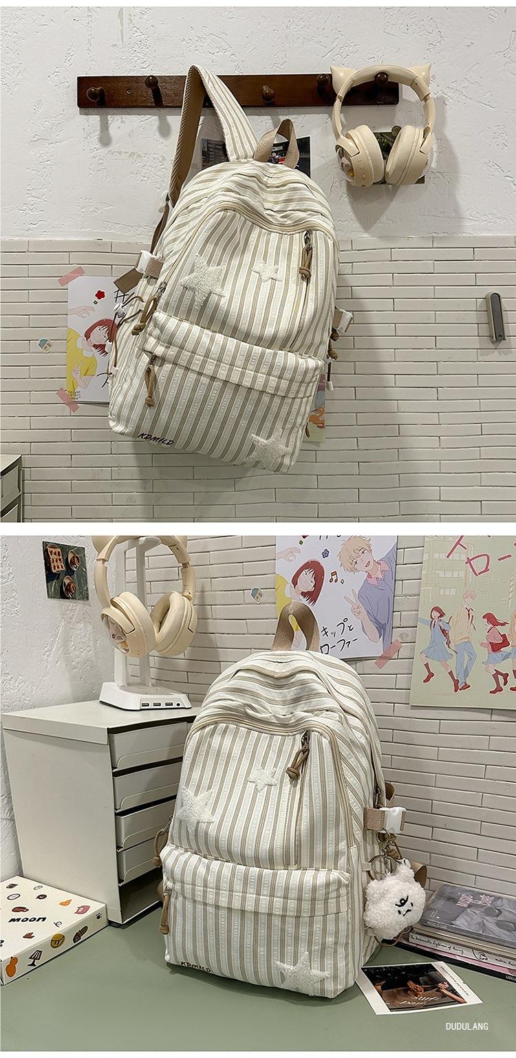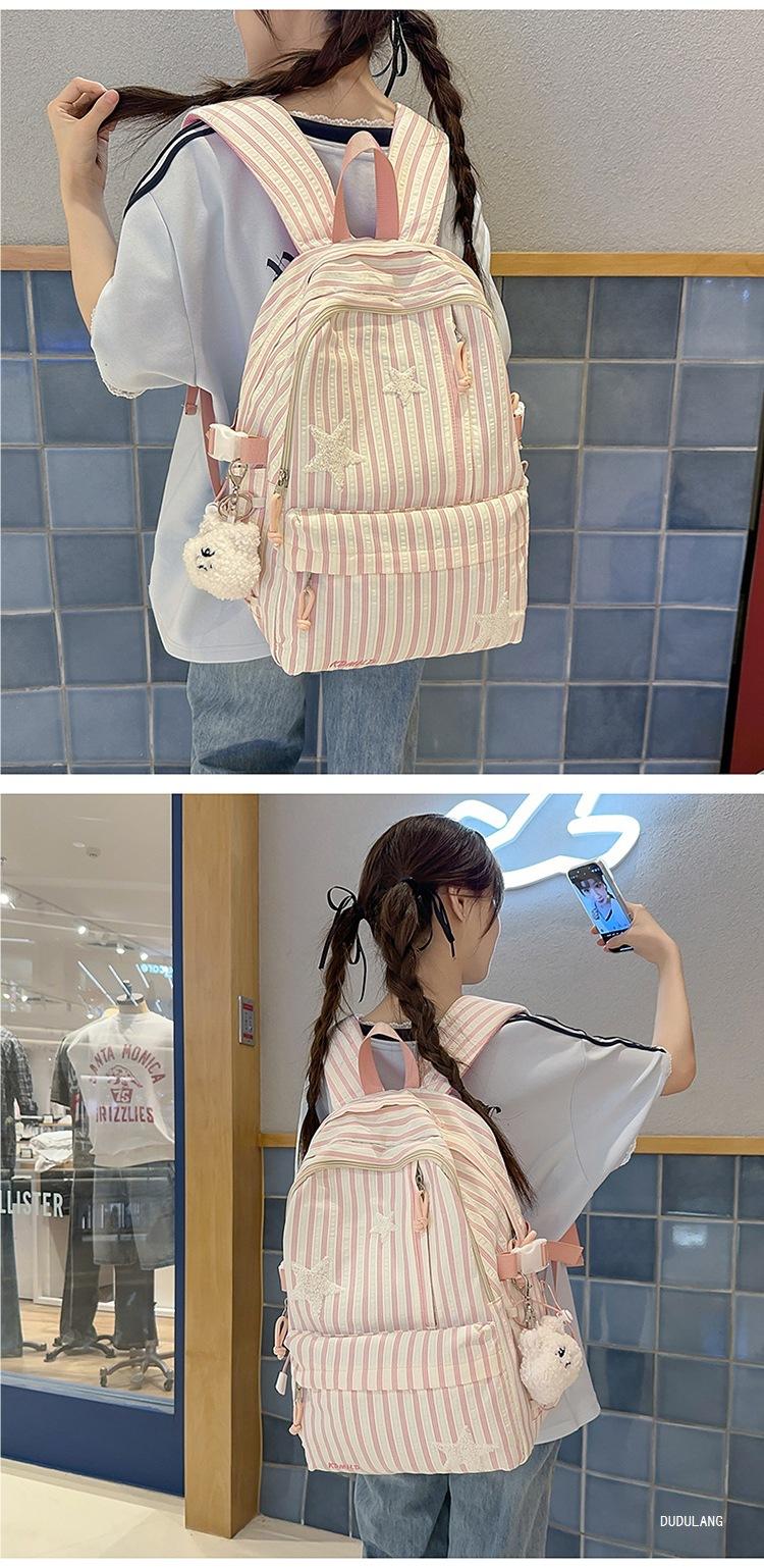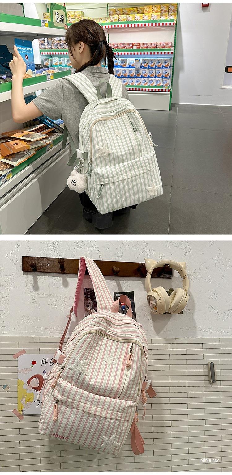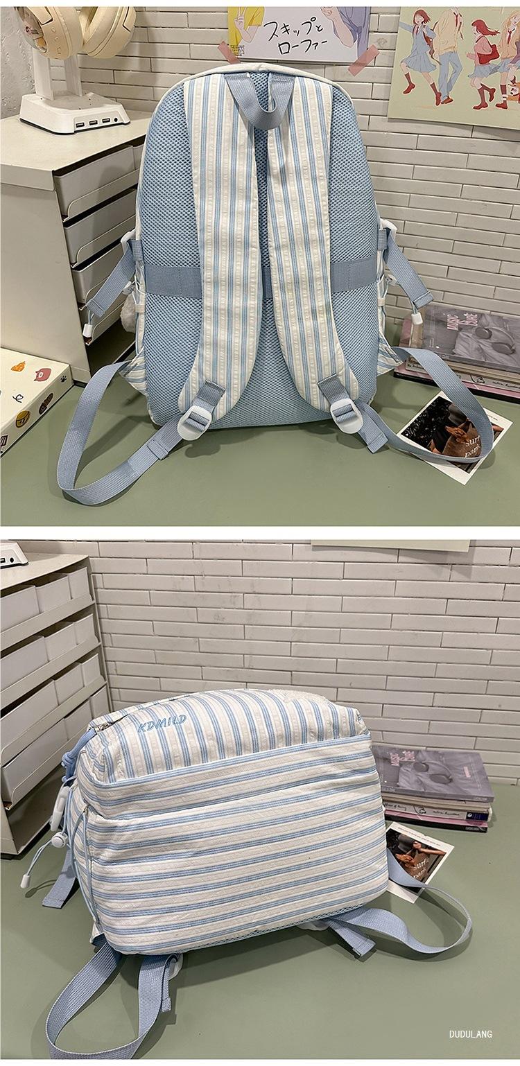 Mochila a rayas estilo coreano de gran capacidad para estudiantes de secundaria, mochila de alto valor, estudiante de secundaria, temporada de regreso a clases, nueva mochila escolar ligera