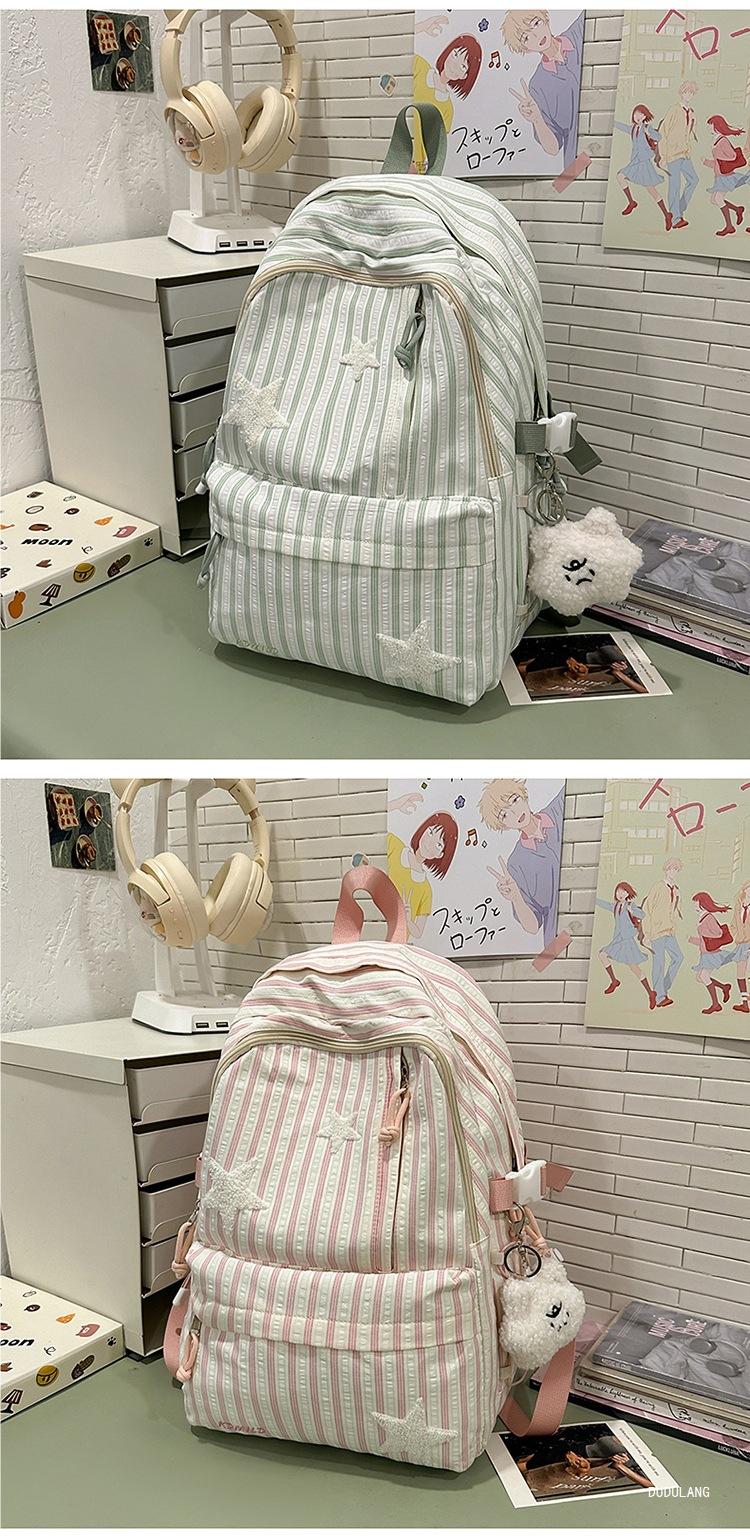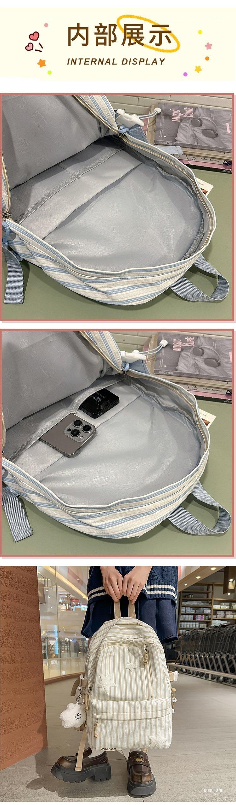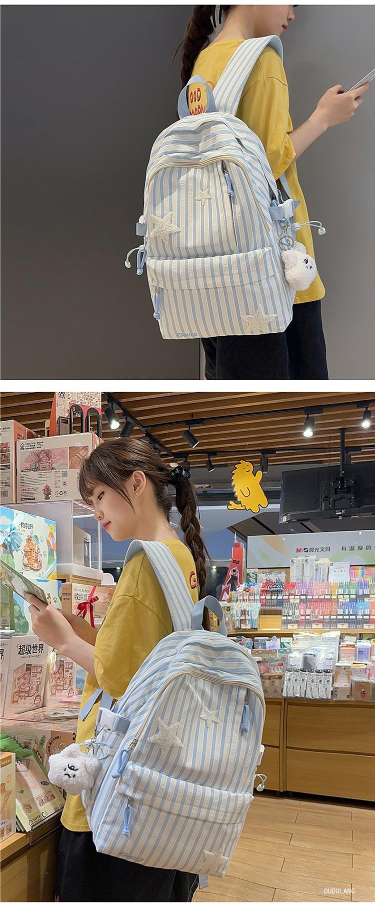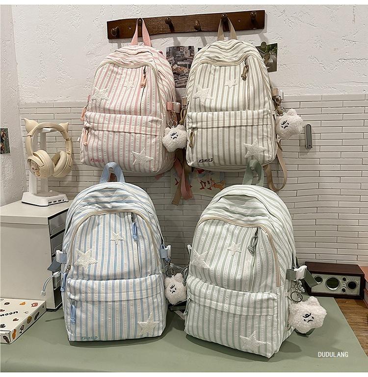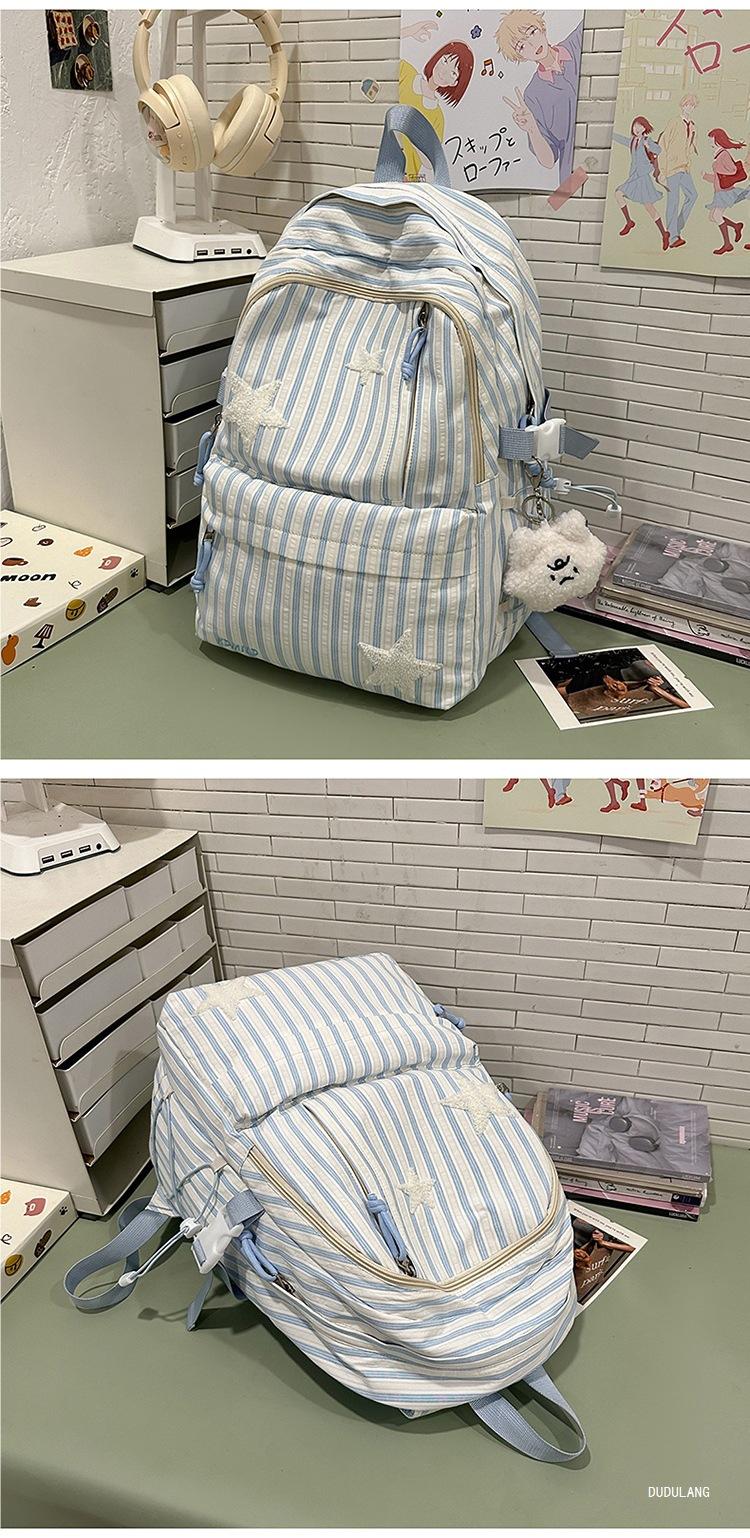 Mochila a rayas estilo coreano de gran capacidad para estudiantes de secundaria, mochila de alto valor, estudiante de secundaria, temporada de regreso a clases, nueva mochila escolar ligera