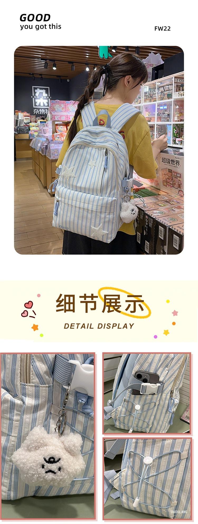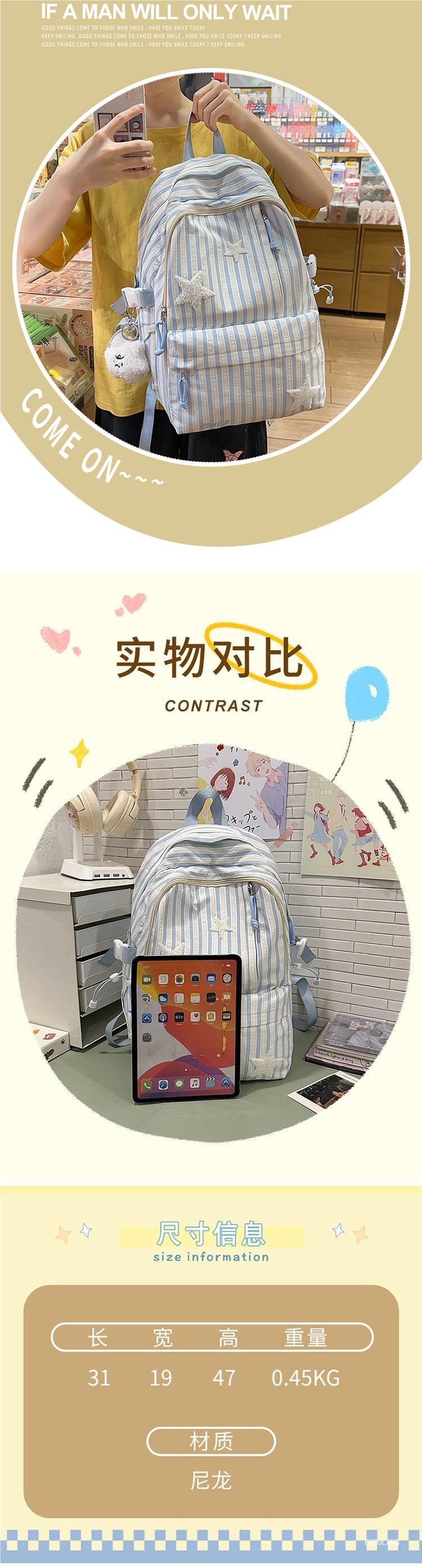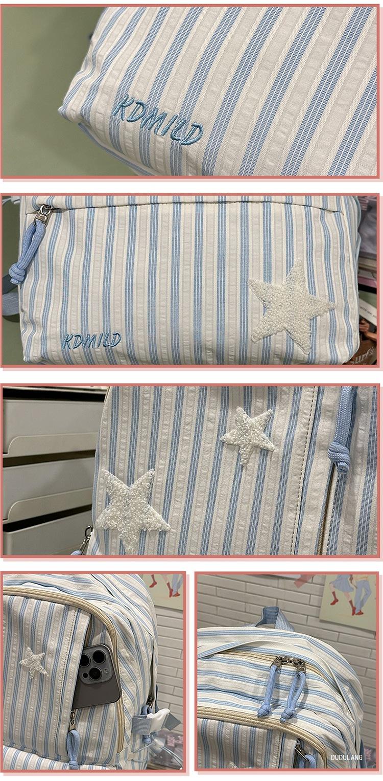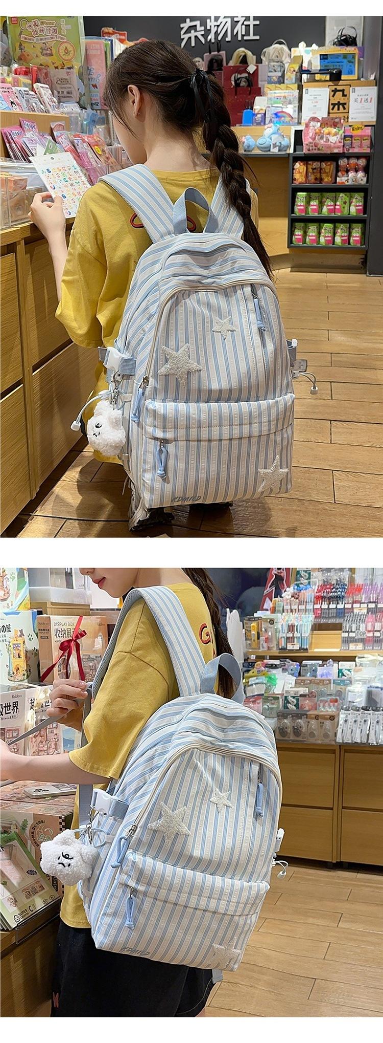 Mochila a rayas estilo coreano de gran capacidad para estudiantes de secundaria, mochila de alto valor, estudiante de secundaria, temporada de regreso a clases, nueva mochila escolar ligera