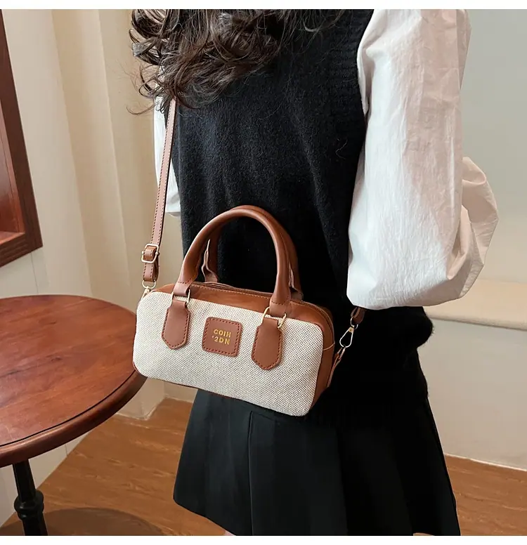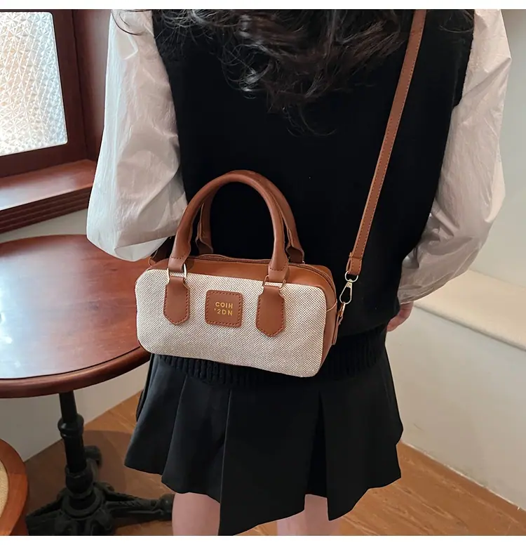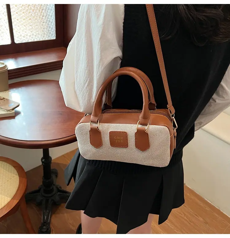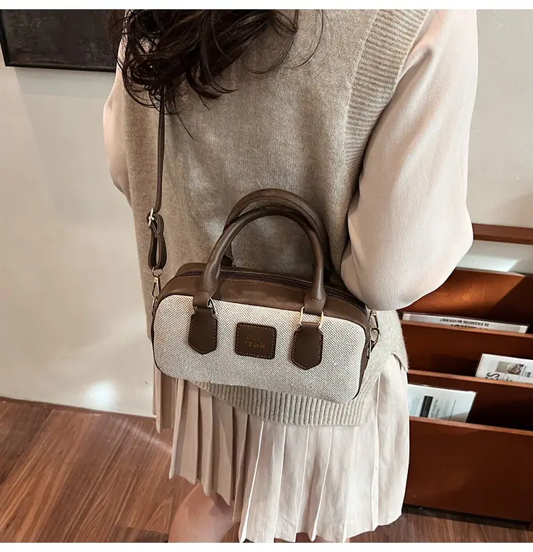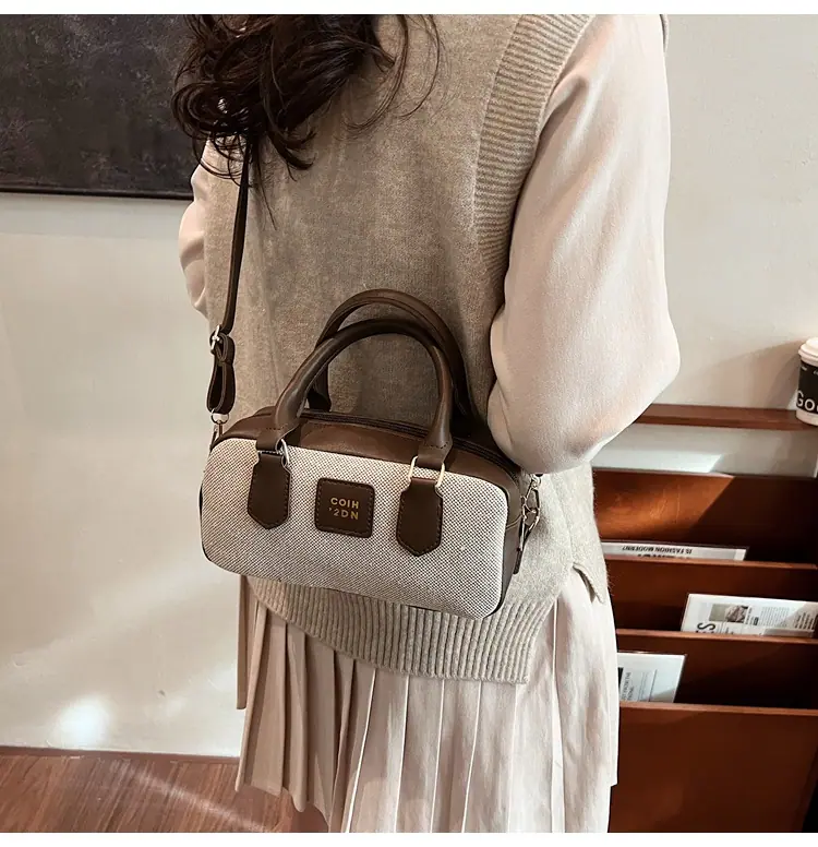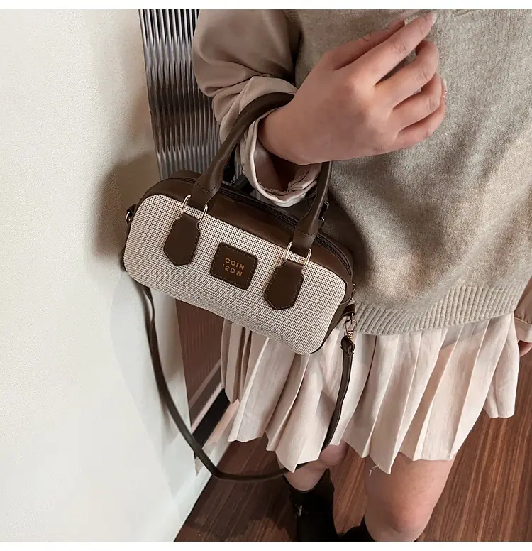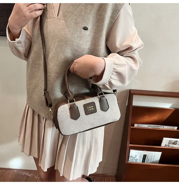 Bolso Boston portátil para mujer, estilo retro británico, de estilo nicho (2025), bolso cruzado de moda para mujer, combinable con todo.