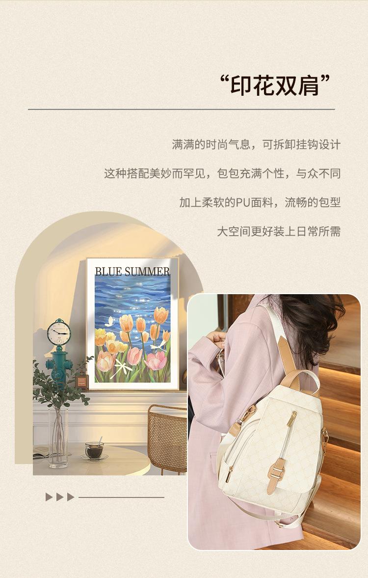Mochila Gran Capacidad Alta Gama Primavera 2025 Nueva Pu Suave Estampado Gran Capacidad Mochila Casual Ropa de Trabajo Viaje