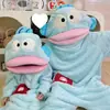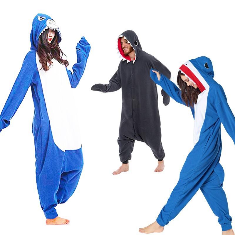 Pijama de Tiburón para Niños Mono de Dibujos Animados Pareja Otoño e Invierno Polar Grueso Disfraz de Halloween onesie