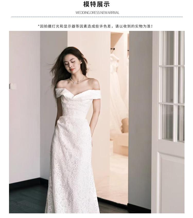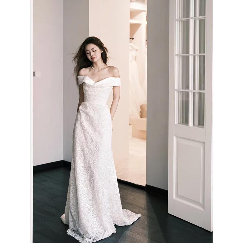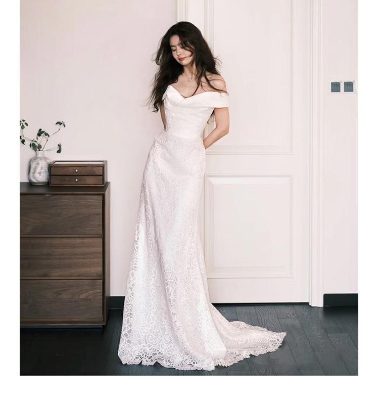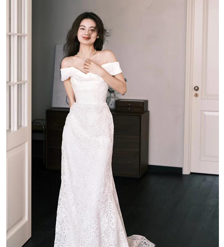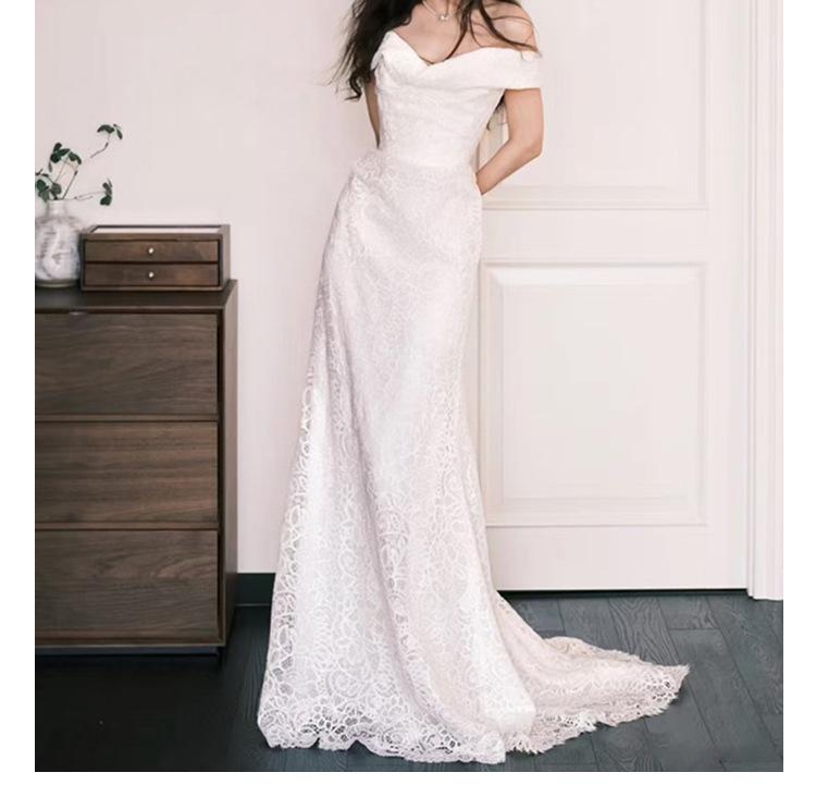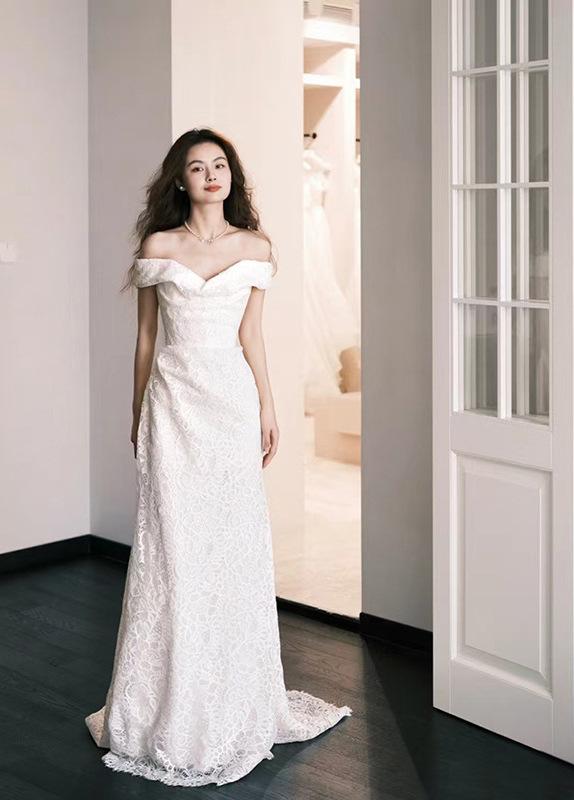 Compra Nuevo Vestido de Novia Ligero de Un Hombro Encaje Francés Vestido con Cola Pequeña Vestido de Novia Vestido de Boda Sencillo Estilo Occidental al por mayor en Joom.pro