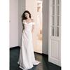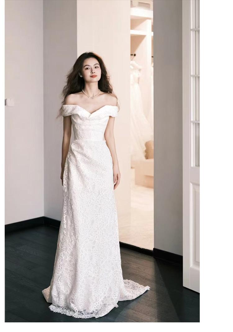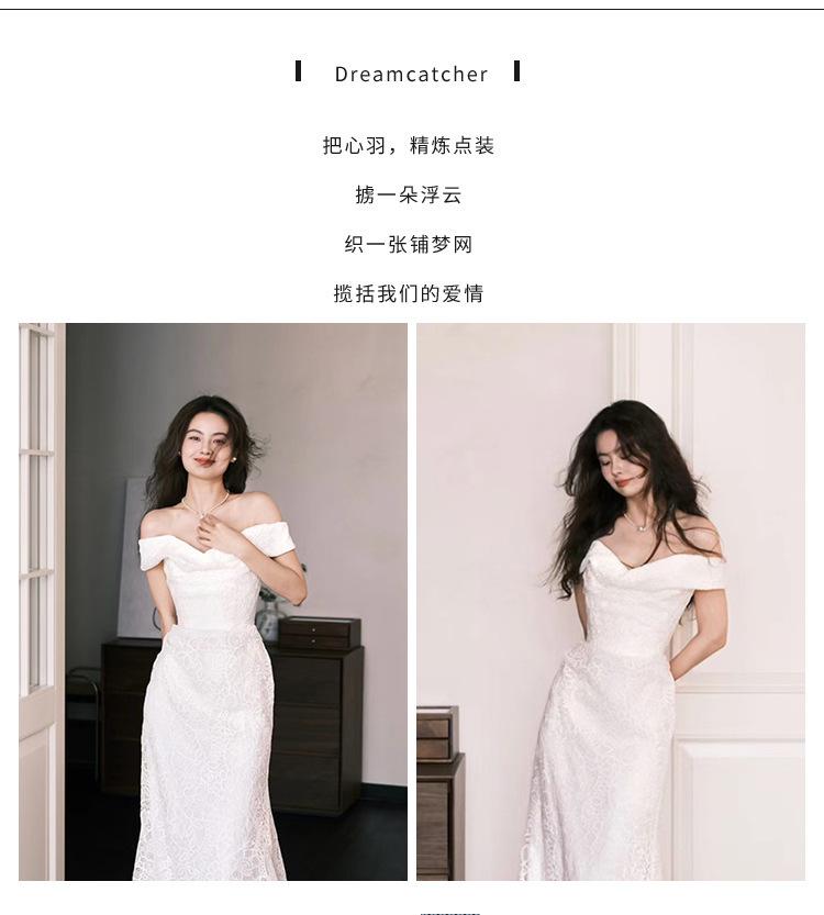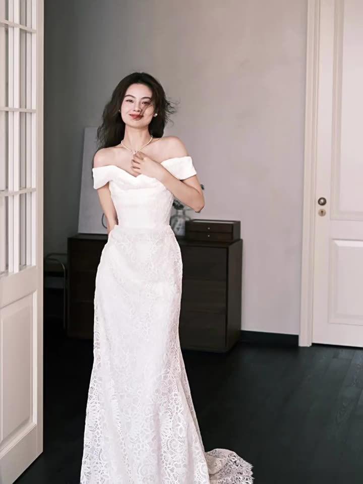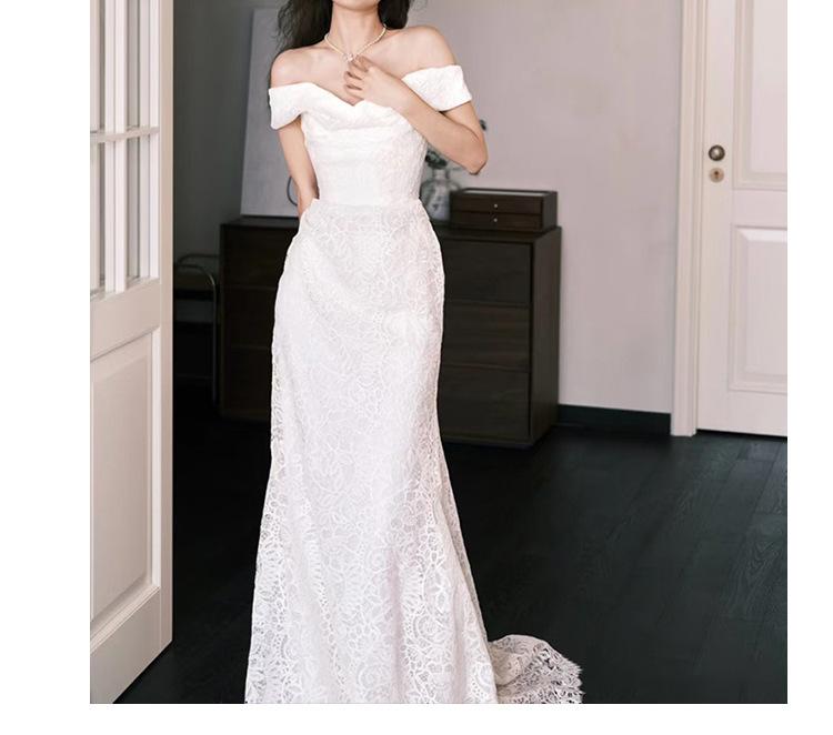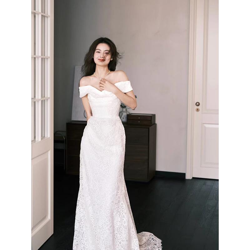 Compra Nuevo Vestido de Novia Ligero de Un Hombro Encaje Francés Vestido con Cola Pequeña Vestido de Novia Vestido de Boda Sencillo Estilo Occidental al por mayor en Joom.pro