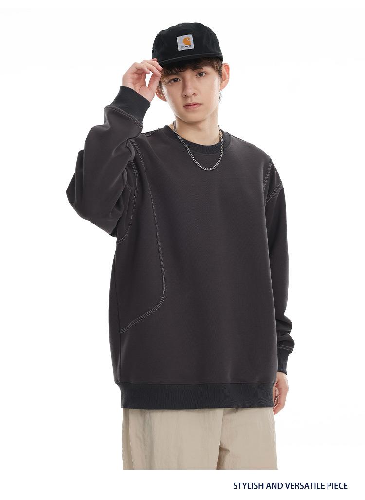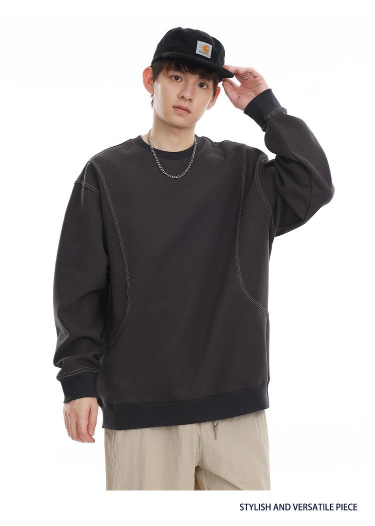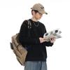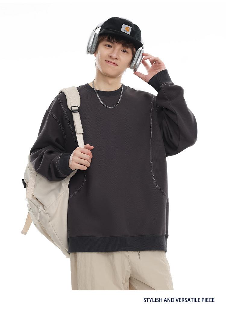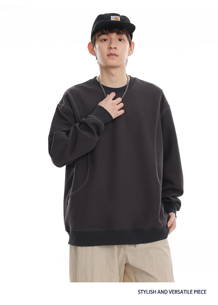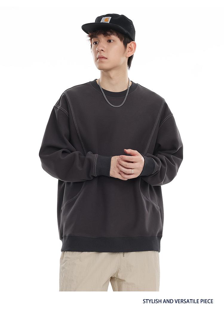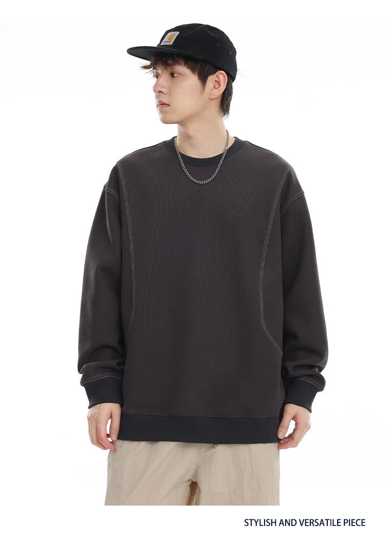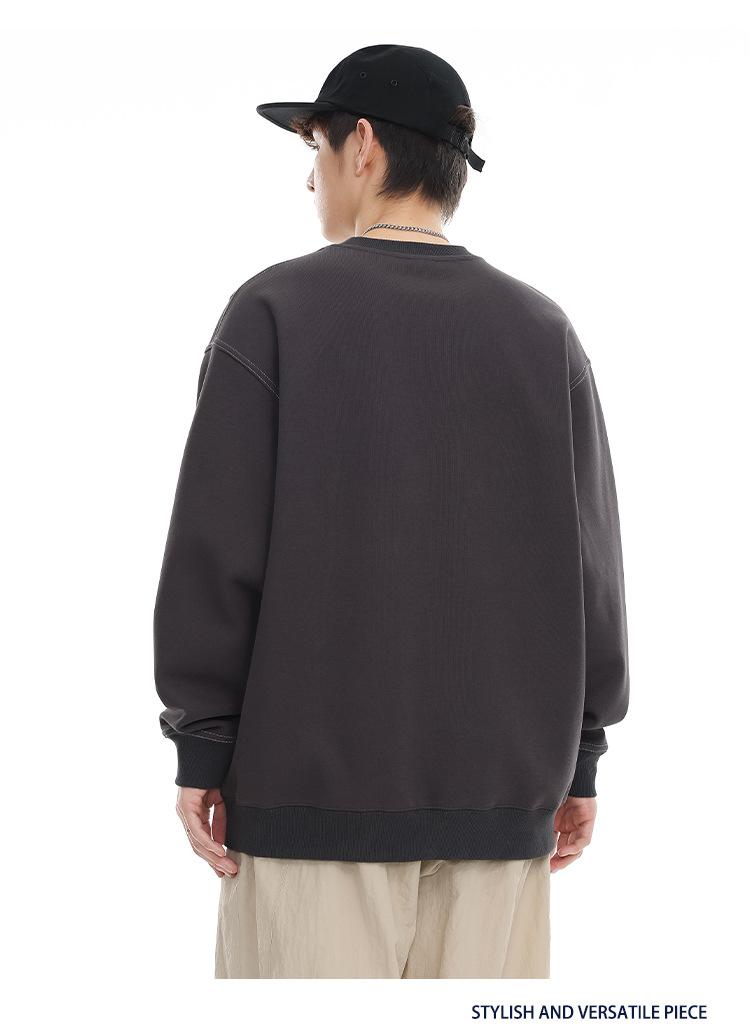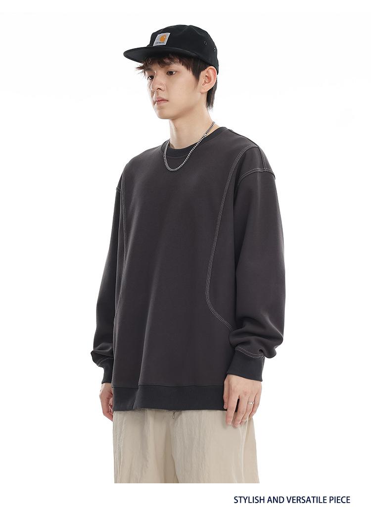 Otoño e Invierno Nuevo Estilo Americano Retro Cuello Redondo Suéter gris oscuro para Hombre Holgado Talla Grande Jersey Juvenil Camiseta Base Top Marca de Moda