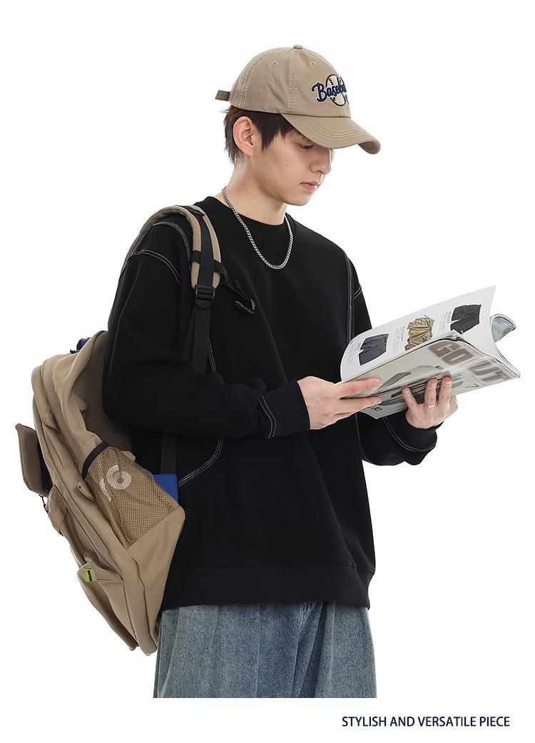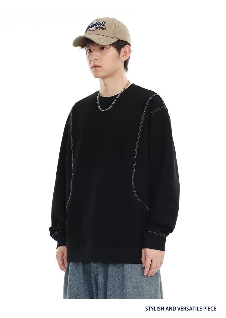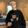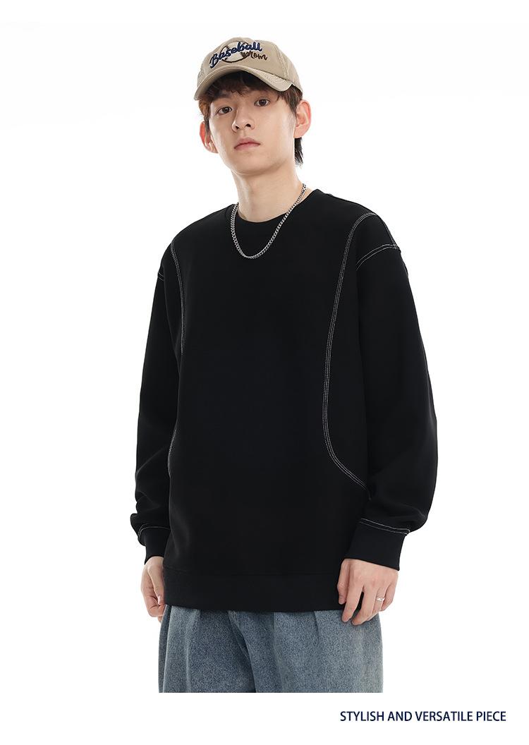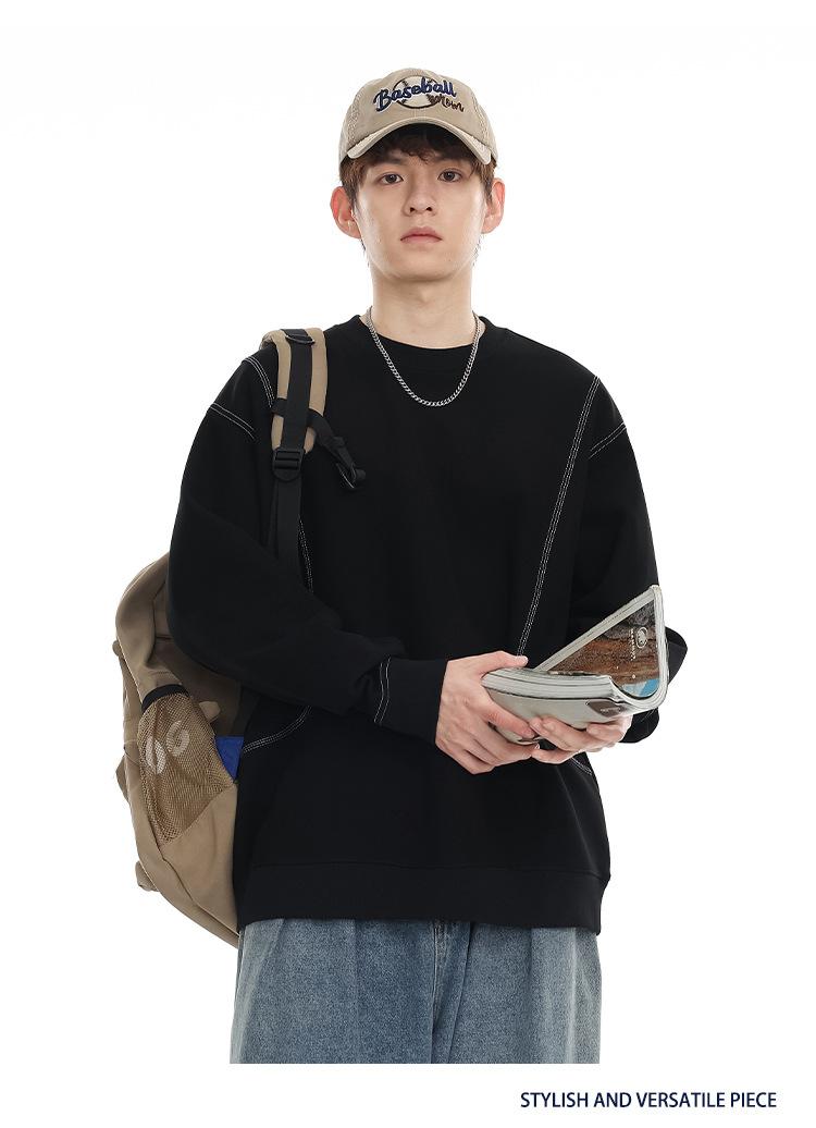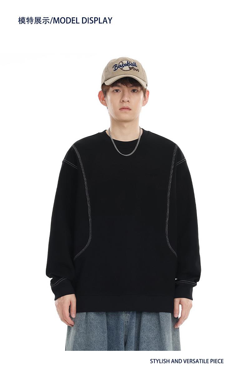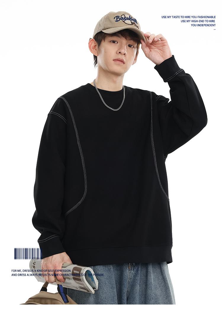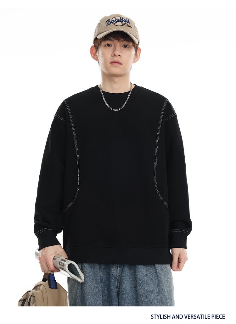 Otoño e Invierno Nuevo Estilo Americano Retro Cuello Redondo Suéter gris oscuro para Hombre Holgado Talla Grande Jersey Juvenil Camiseta Base Top Marca de Moda