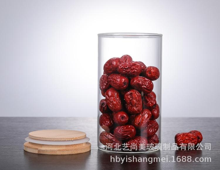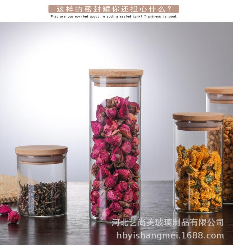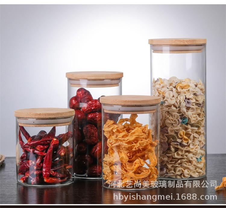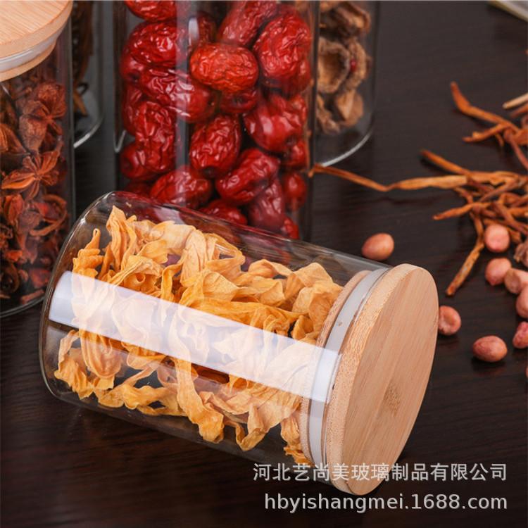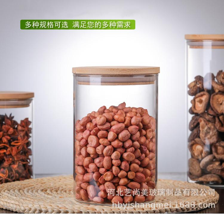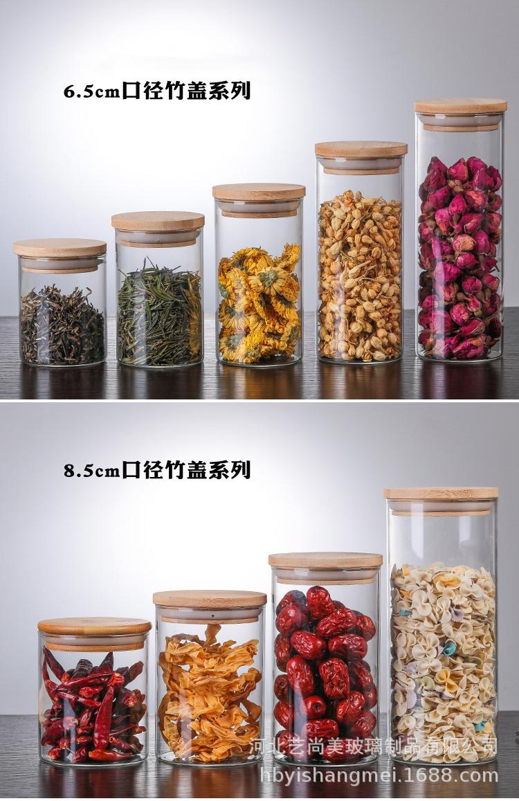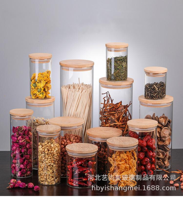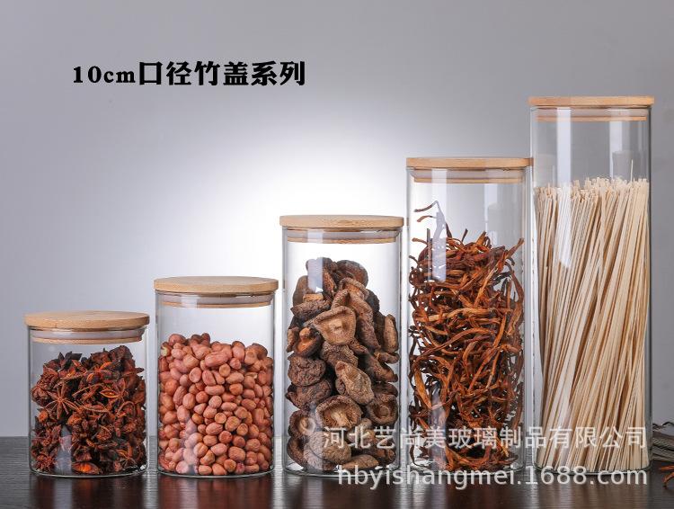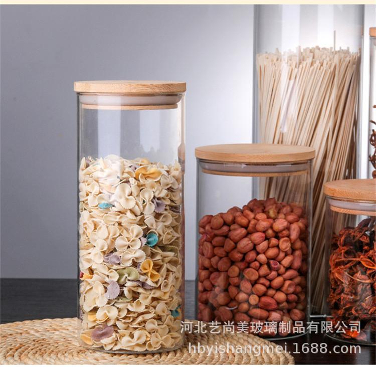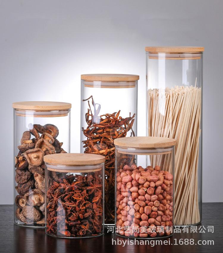 Frasco Redondo de Vidrio de Borosilicato Alto Resistente al Calor Caja de Almacenamiento con Tapa de Bambú para Cocina Apilable Frasco de Almacenamiento de Granos Almacenamiento de Cocina