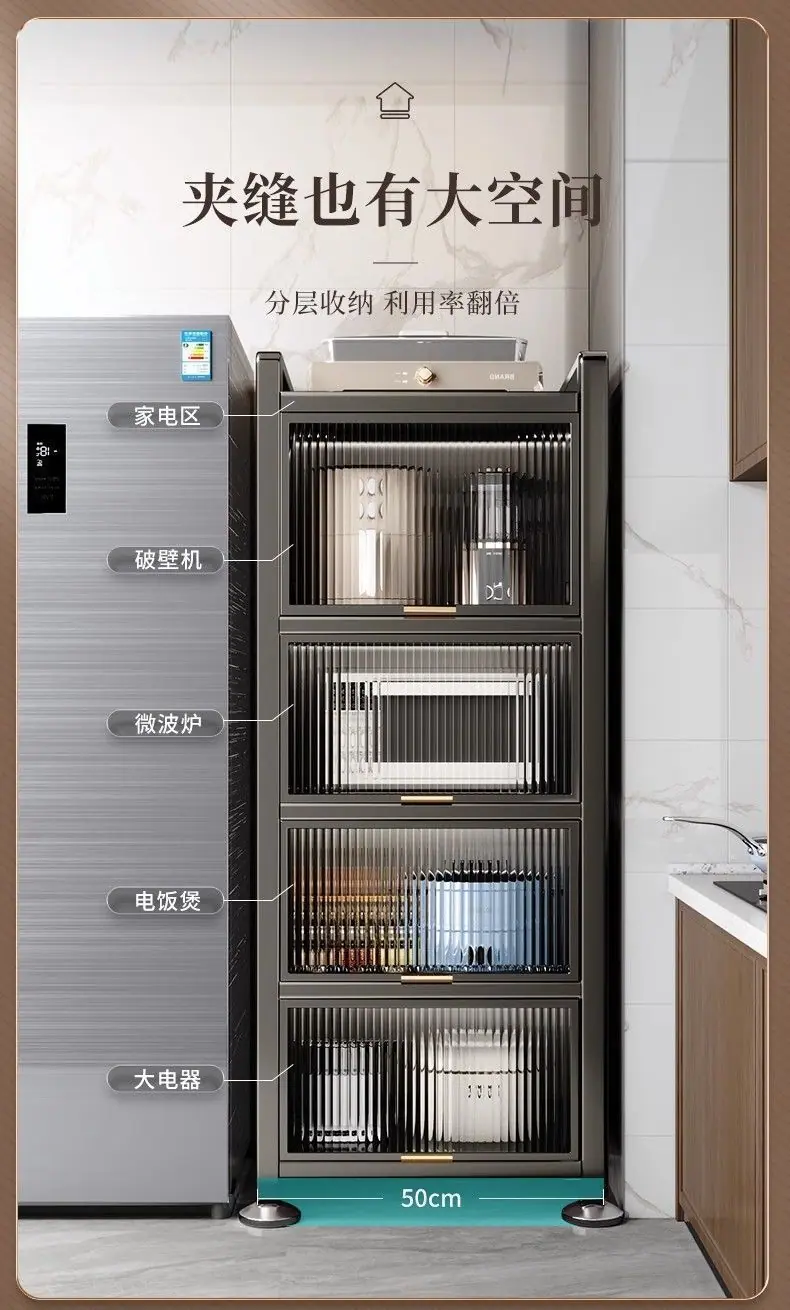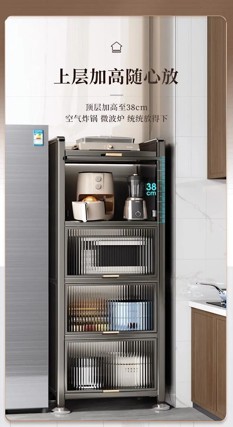 Estante de almacenamiento de cocina de gran venta gabinete de almacenamiento para horno microondas gabinete de almacenamiento multicapa alacena multifuncional armario para hueco de refrigerador gabinete elevador de altura