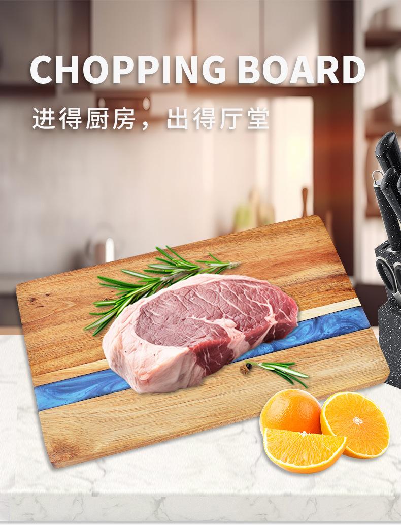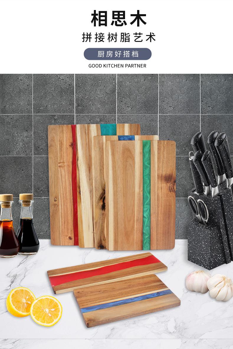 Tabla de cortar de resina transfronteriza tabla de cortar empalmada de madera de acacia tabla de cortar para bistec de madera maciza tabla de cortar de madera para pizza tabla de arte para frutas