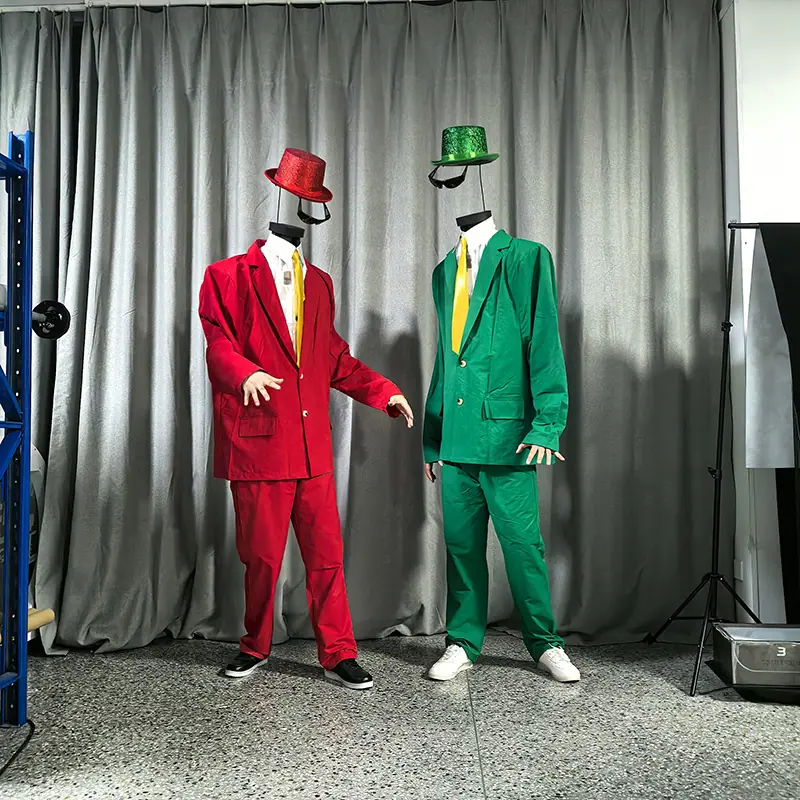 Traje de Rendimiento de Hombre sin Cabeza Cosplay Disfraz de Halloween Traje Rojo Verde Azul Disfraz de Fiesta Desfile Disfraz de Esqueleto