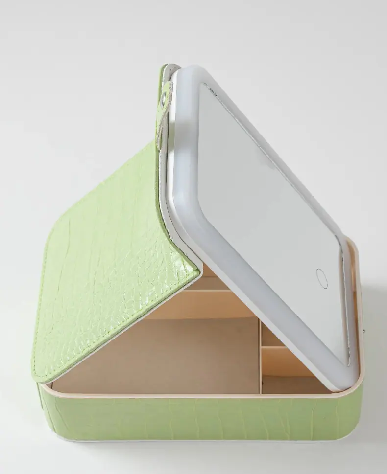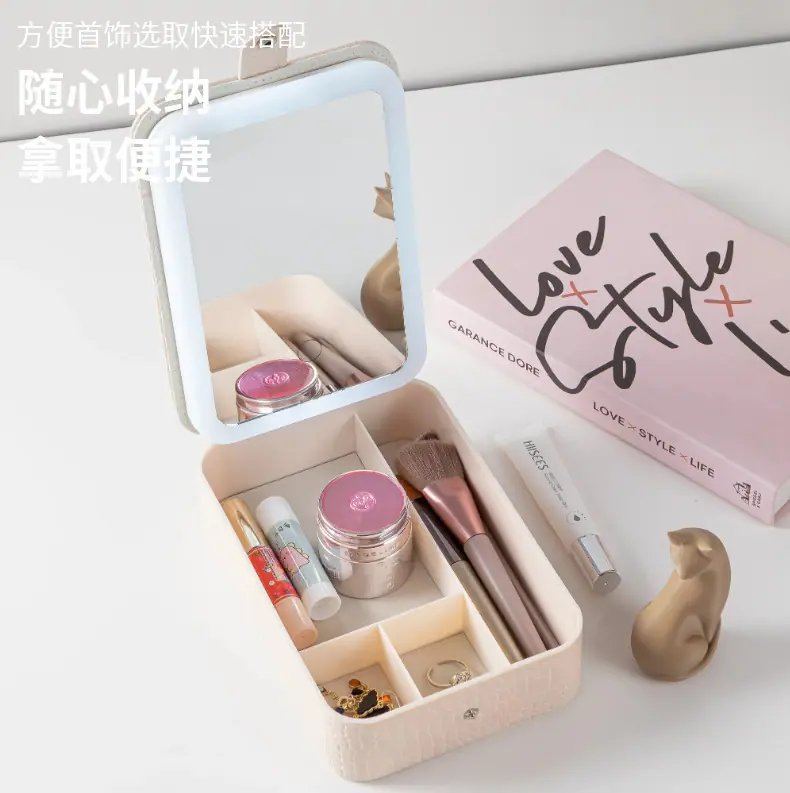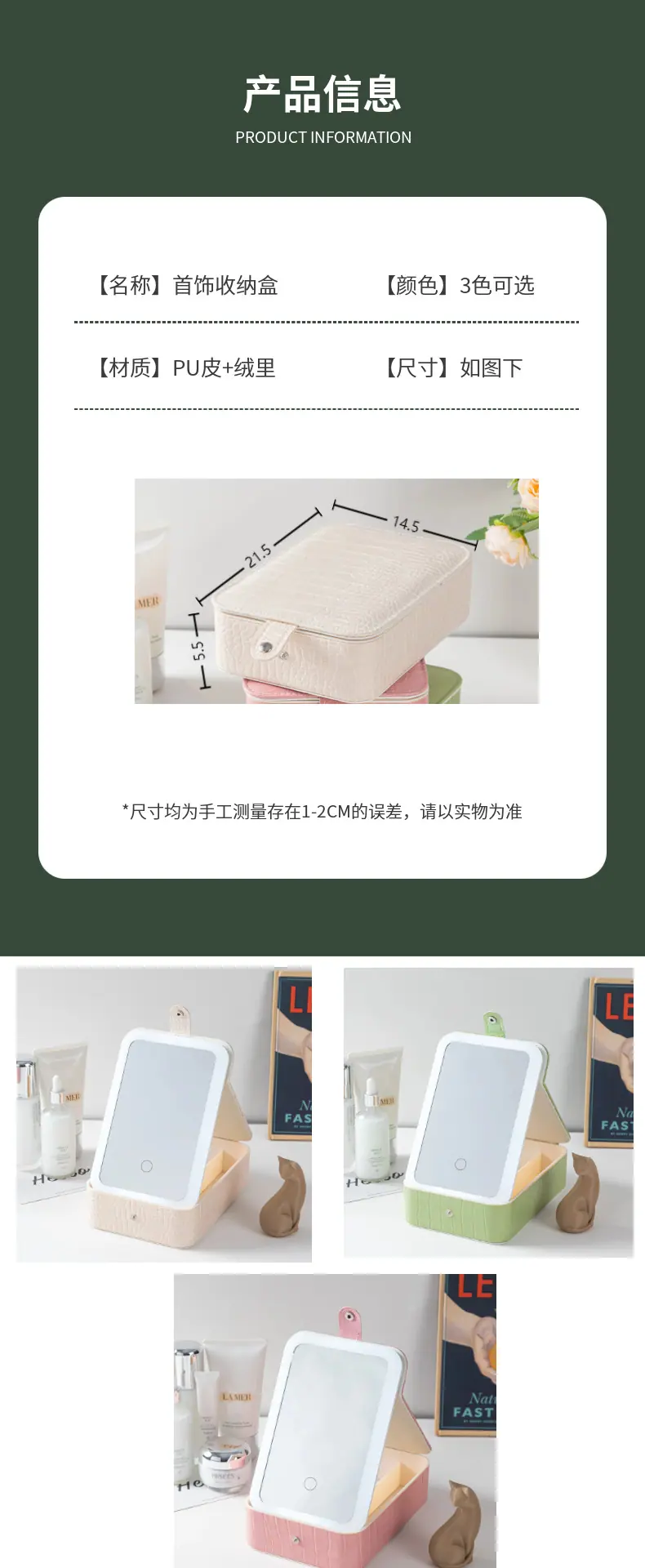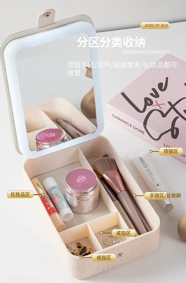 Caja de Joyería con Espejo Luz de Relleno LED Caja de Almacenamiento Cosméticos Portátil Multifuncional Almacenamiento de Escritorio Caja de Joyería