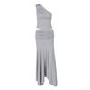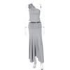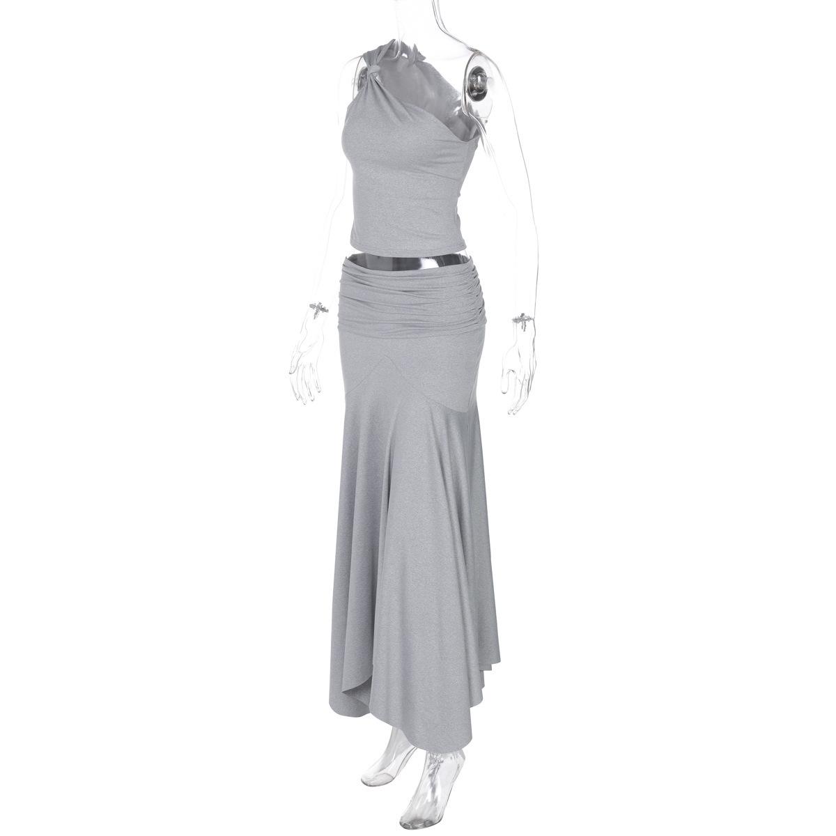 Verano Americano Estilo INS Top Corto de Un Hombro Adelgazante Falda Midi Plisada de Cintura Alta Conjunto de Dos Piezas Transfronterizo