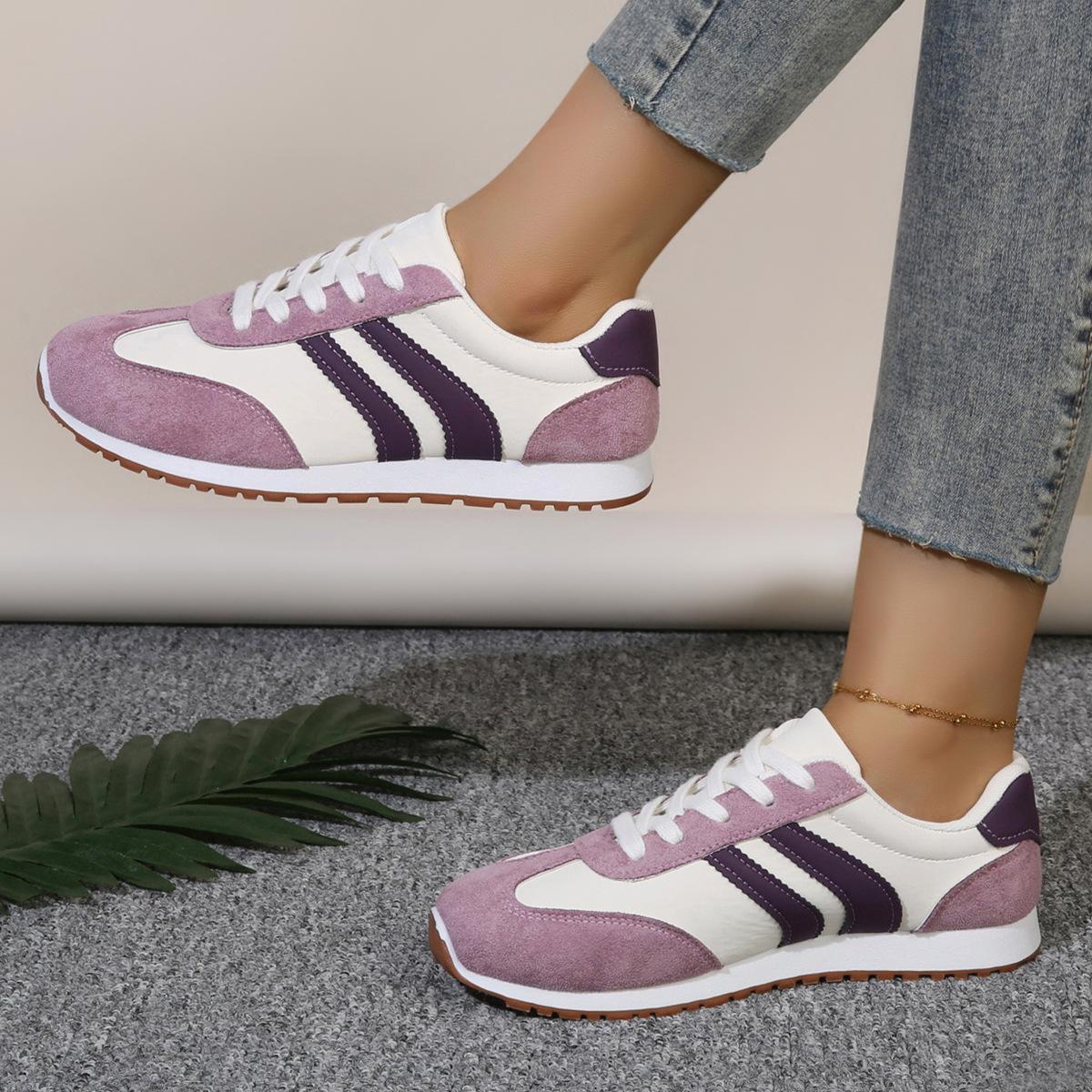 Europeo y Americano Comercio Exterior Talla Grande Bloque de Color de Cuero Transpirable Zapatos Casuales Zapatos de Mujer Transfronterizos Suela Plana Running Ligeros Deportivos Zapatos Individuales