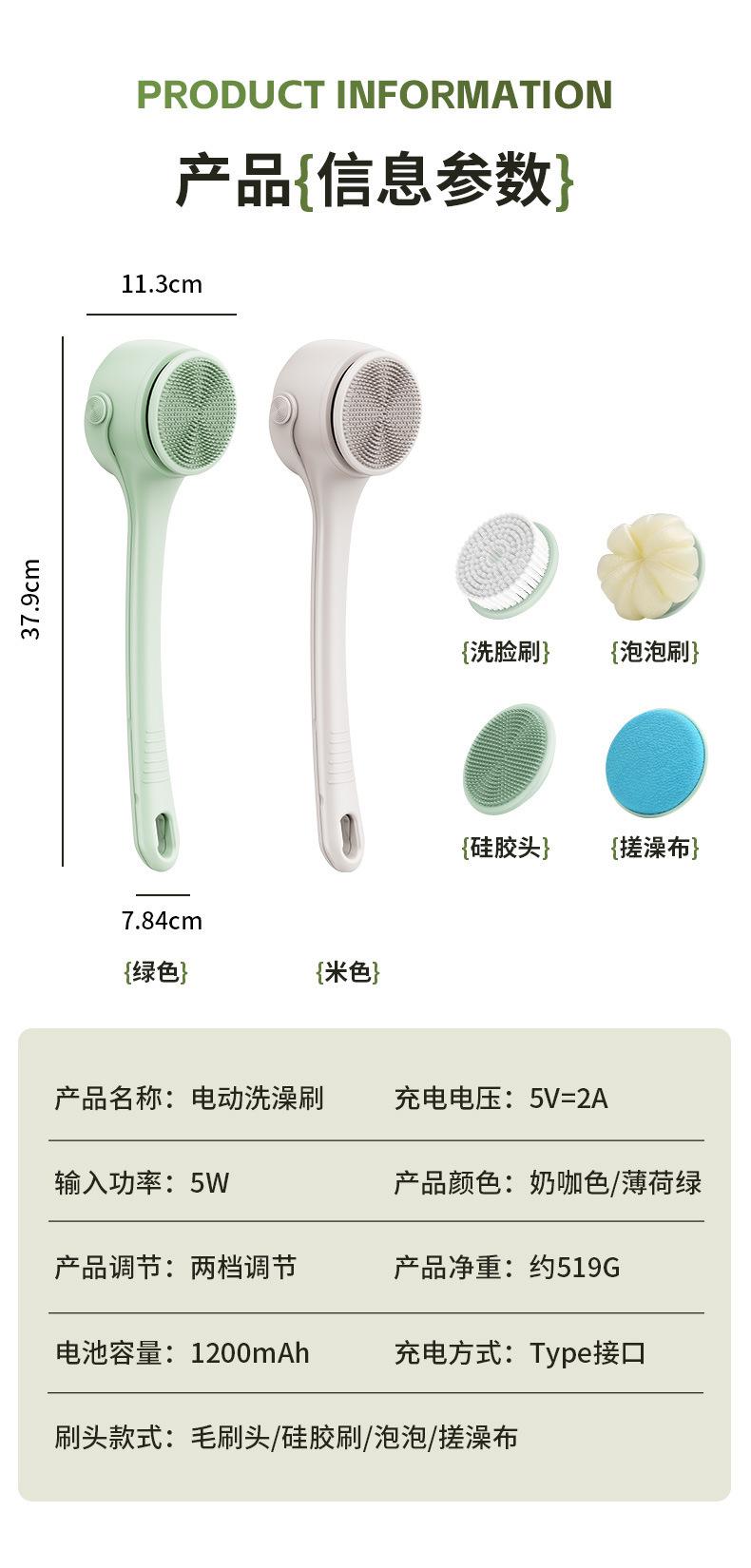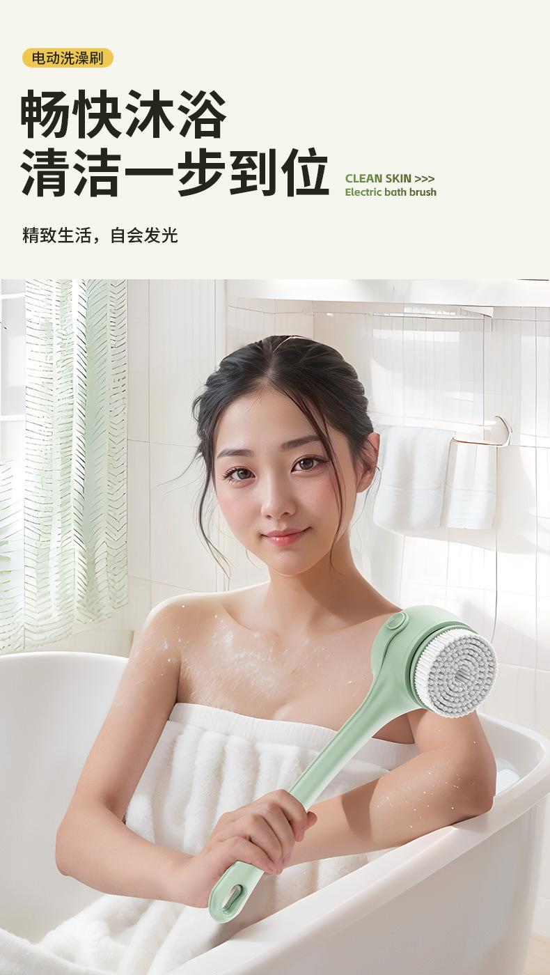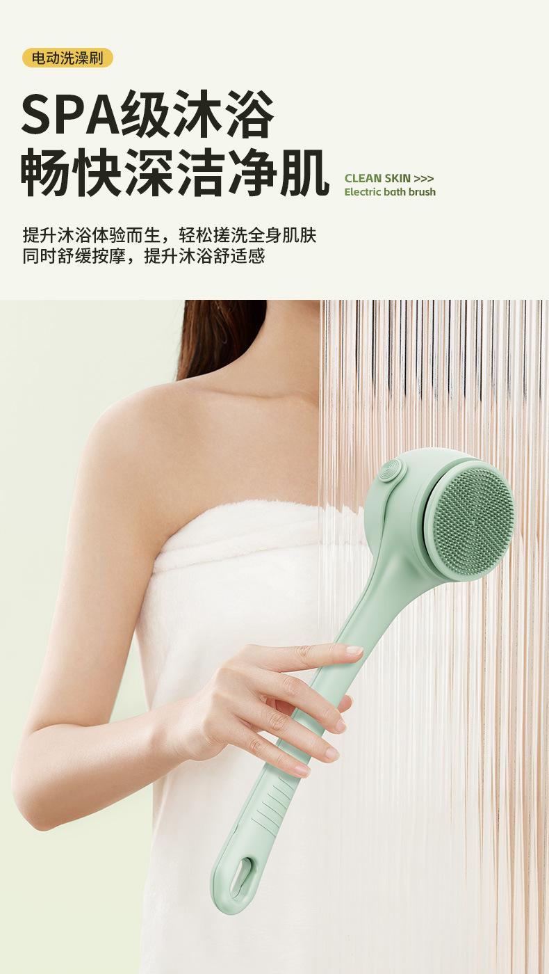 Cepillo Eléctrico de Baño de Mango Largo de Venta Caliente Transfronterizo Pantalla Digital Cepillo de Baño Totalmente Automático Exfoliante Impermeable Dispositivo Exfoliante Cepillo para Espalda