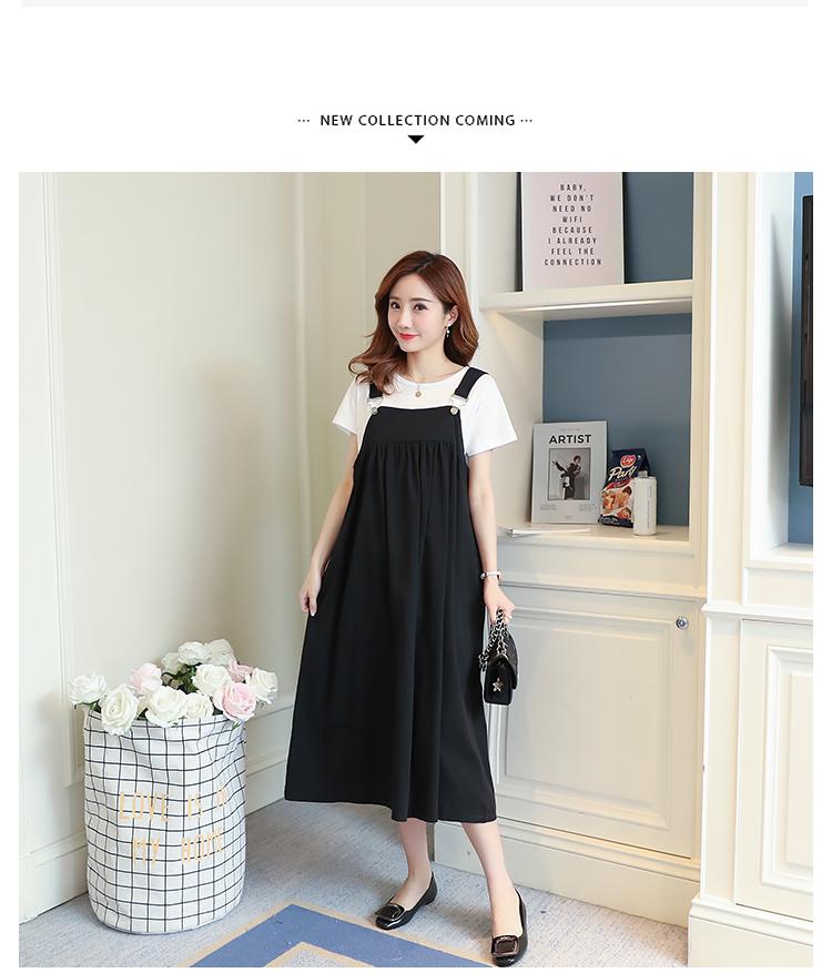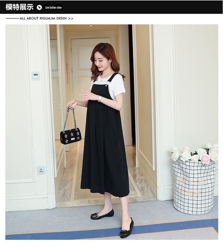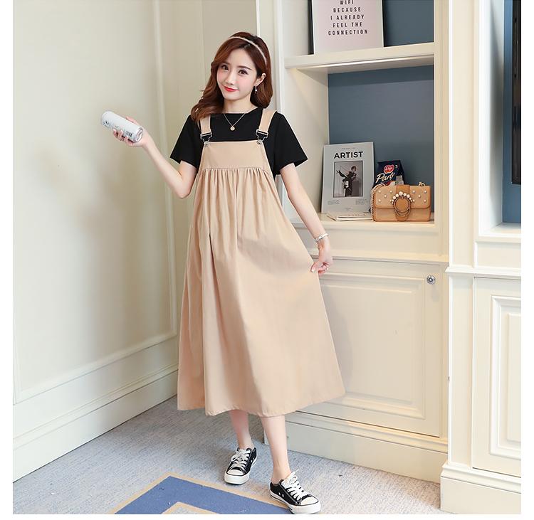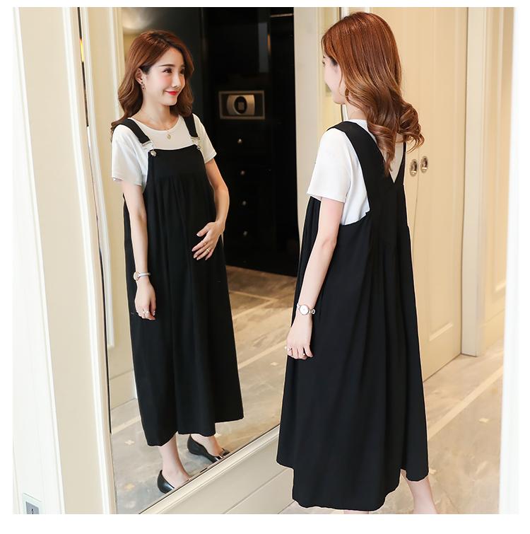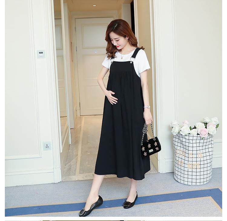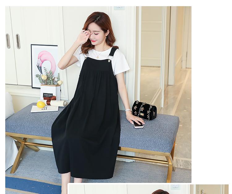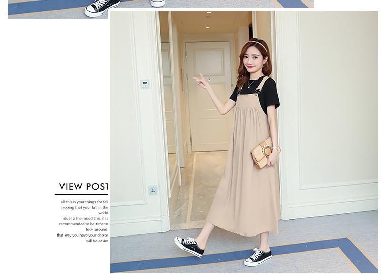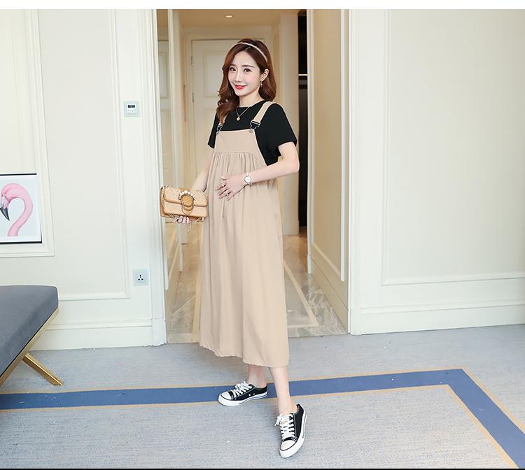 Maternidad 2022 Verano Nuevo Moda Coreana Color Sólido Falda de Tirantes + Camiseta Holgada Vestido de Maternidad de Dos Piezas