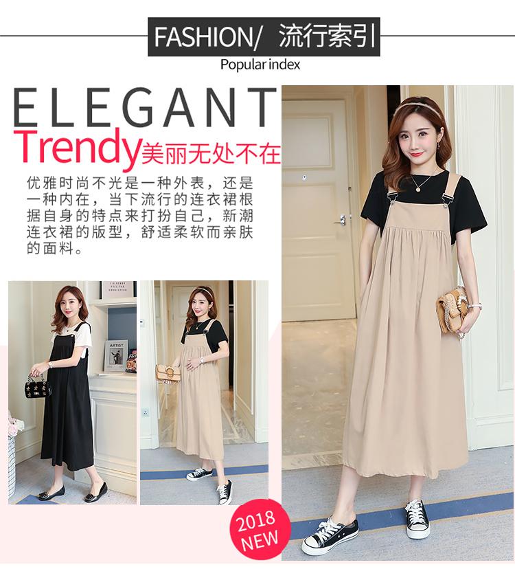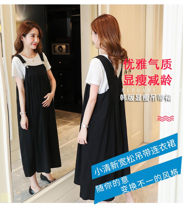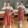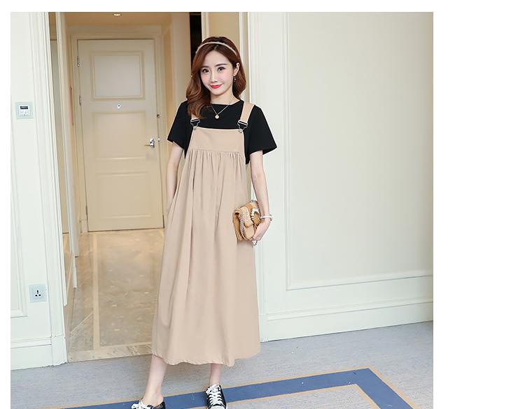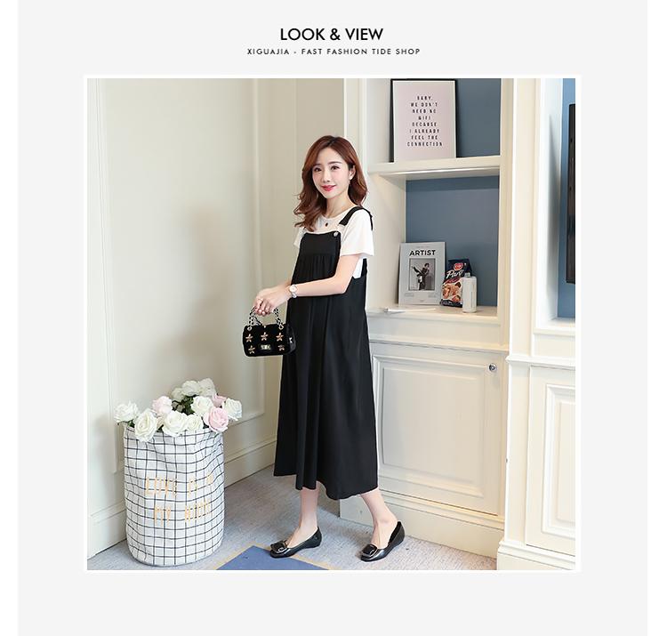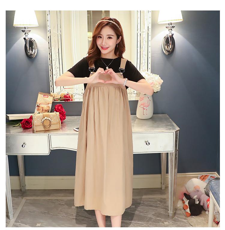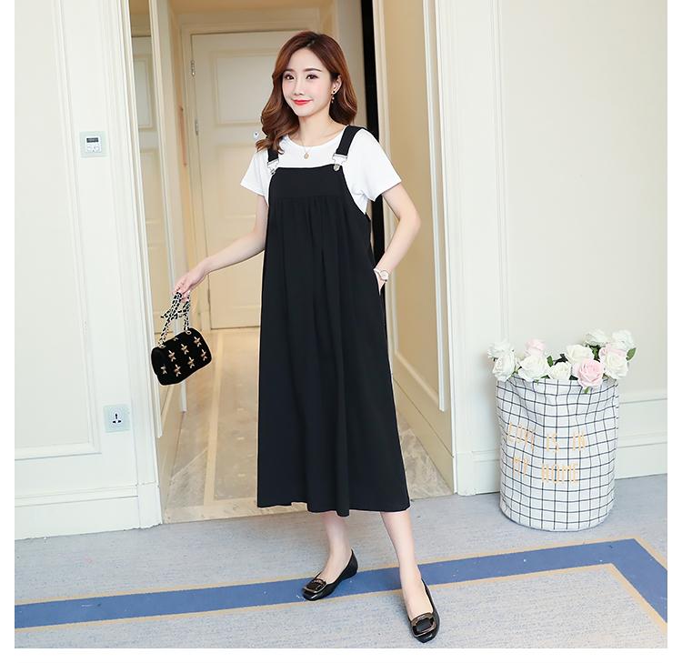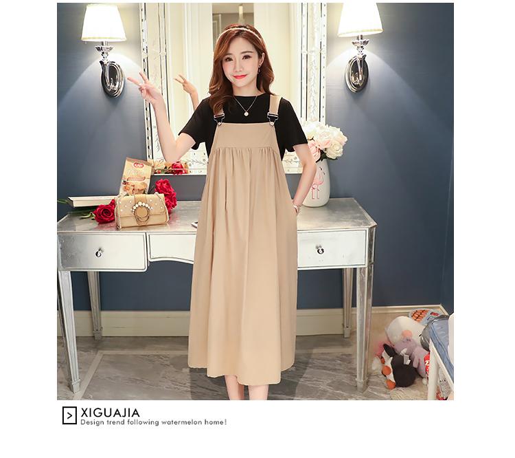 Maternidad 2022 Verano Nuevo Moda Coreana Color Sólido Falda de Tirantes + Camiseta Holgada Vestido de Maternidad de Dos Piezas