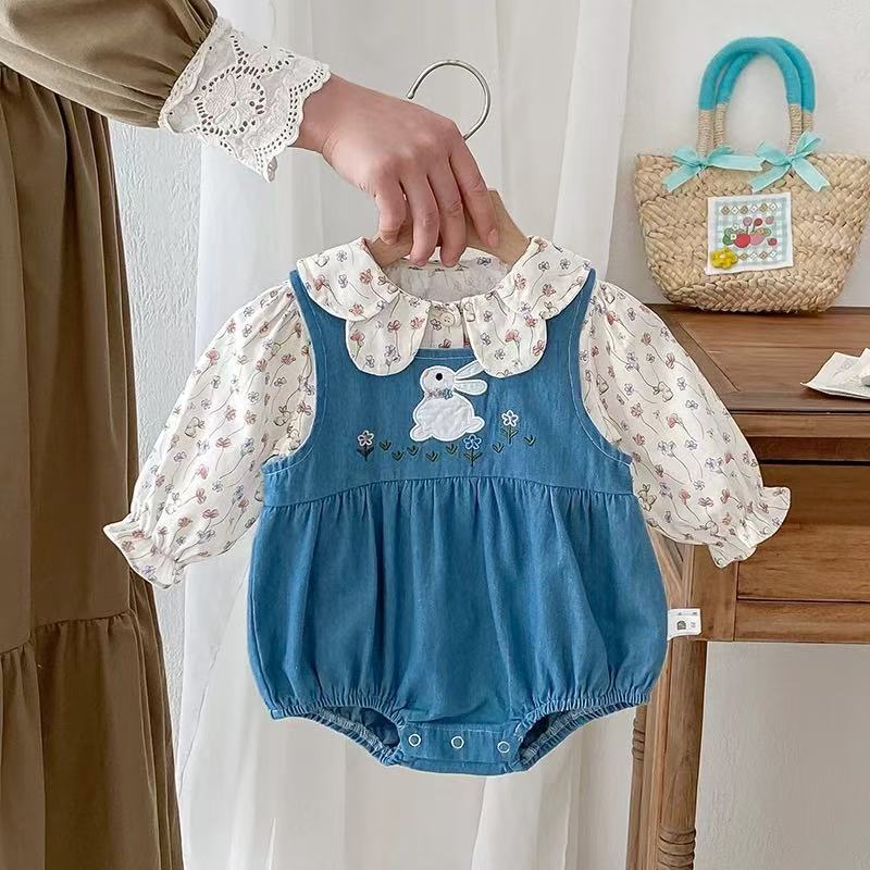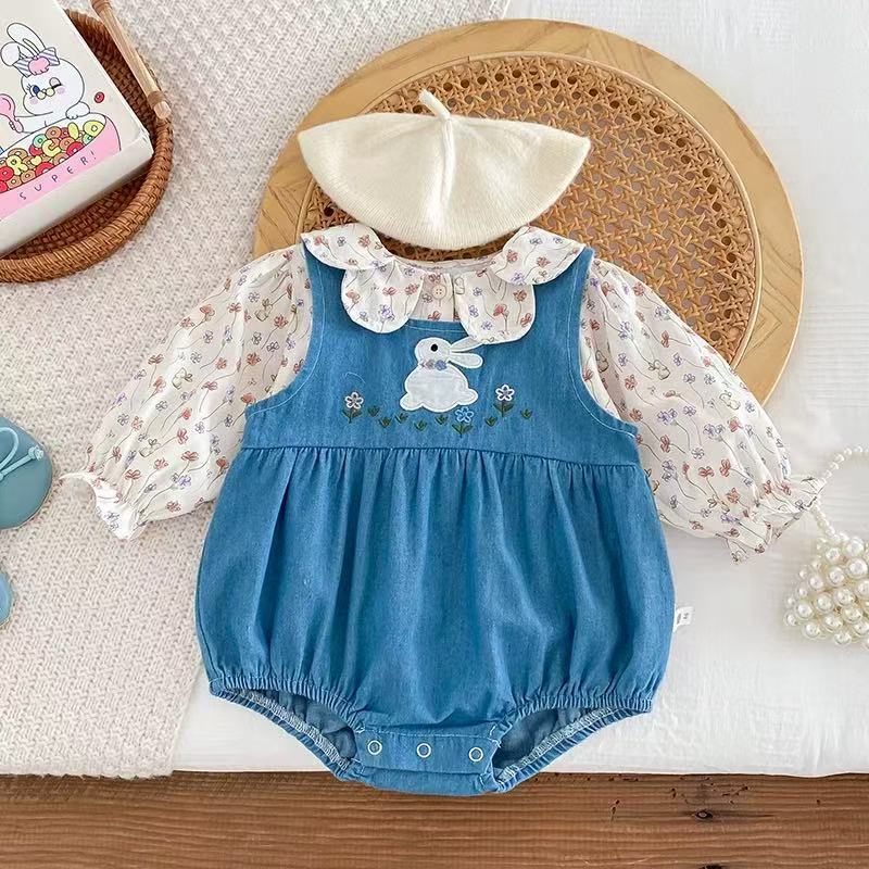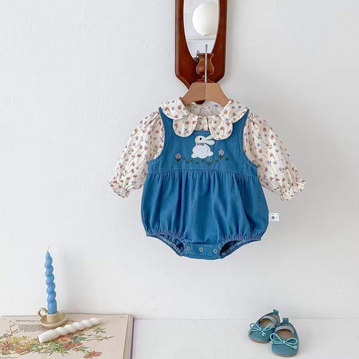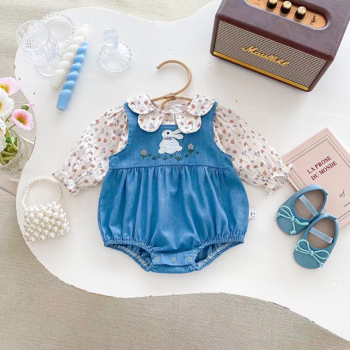 Flower Bunny Romper Set Denim Blue