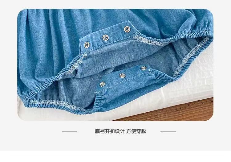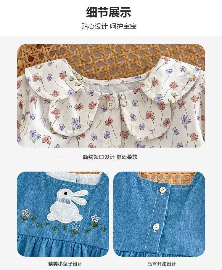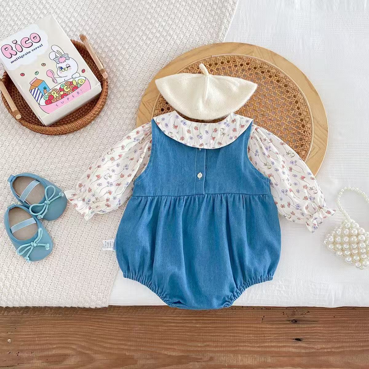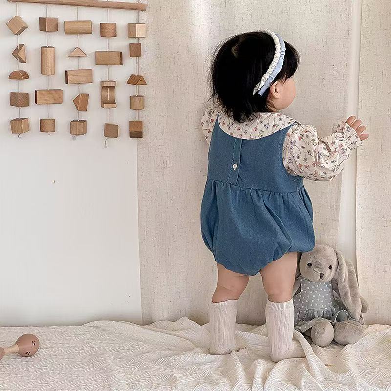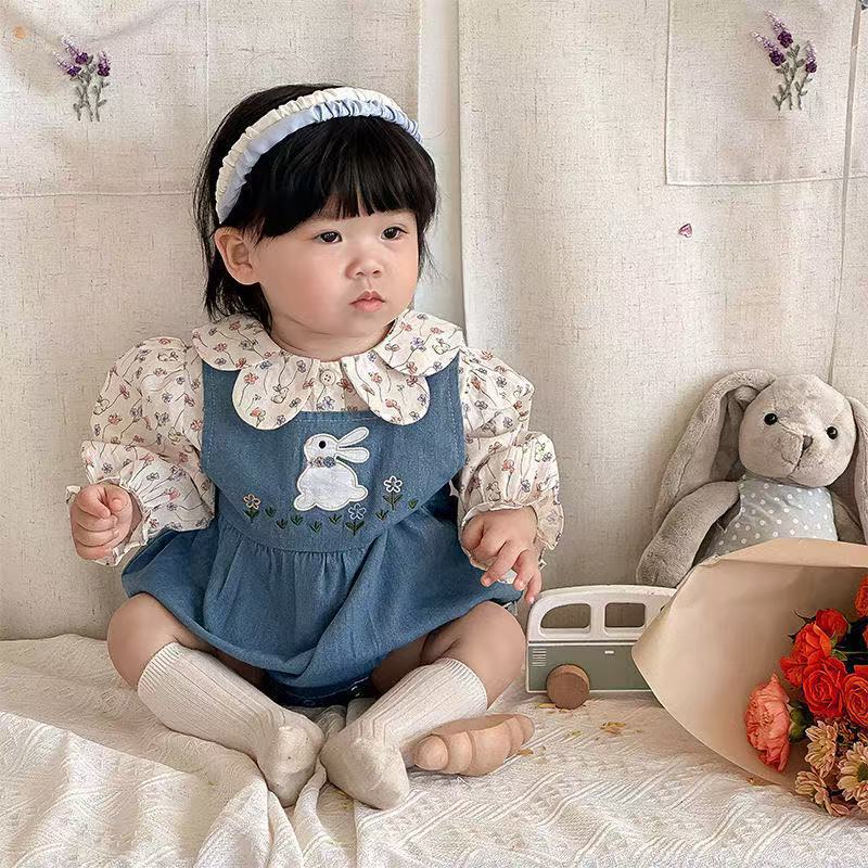 Flower Bunny Romper Set Denim Blue