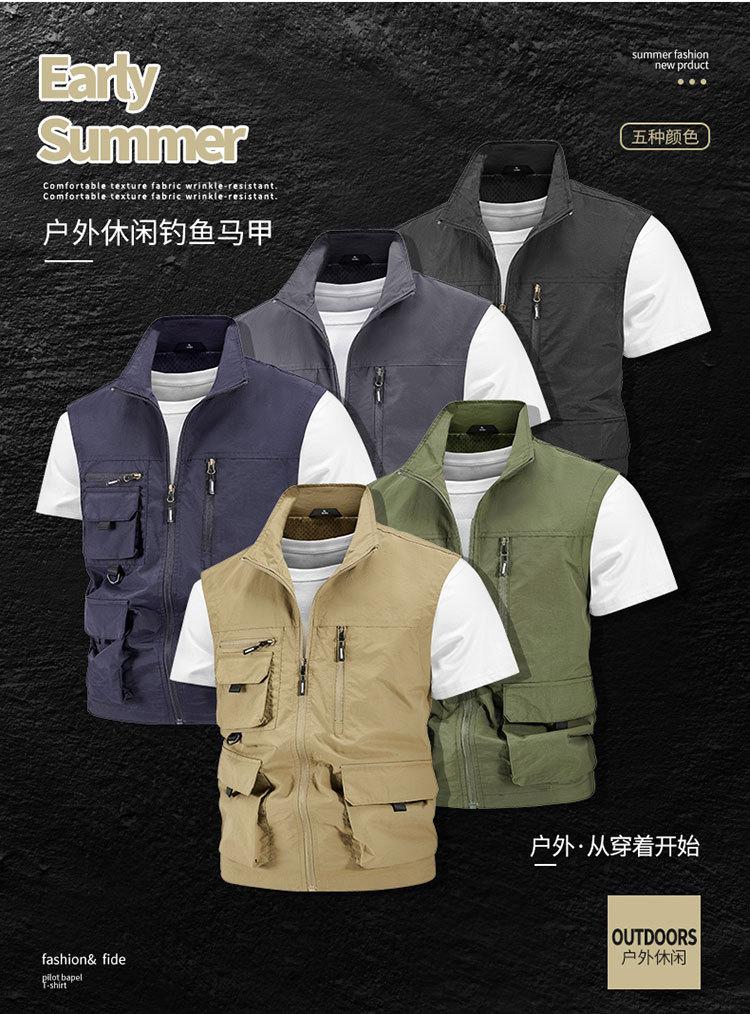 Nuevo Chaleco para Hombre Casual para Exteriores con Cuello Chaleco de Fotografía Chaleco Exterior para Hombre