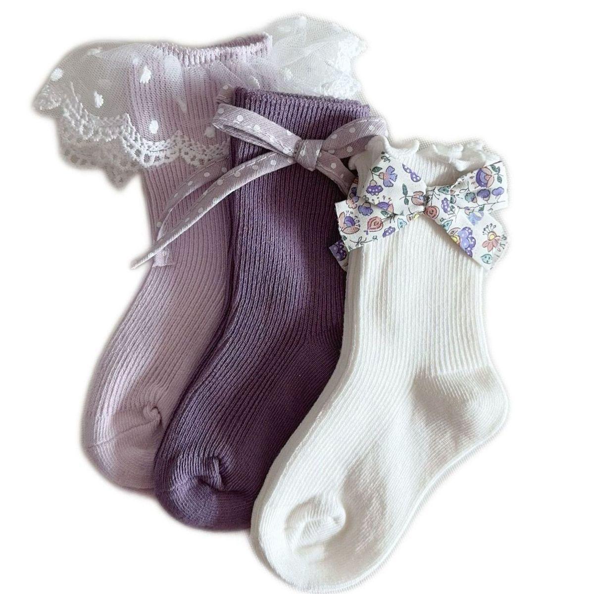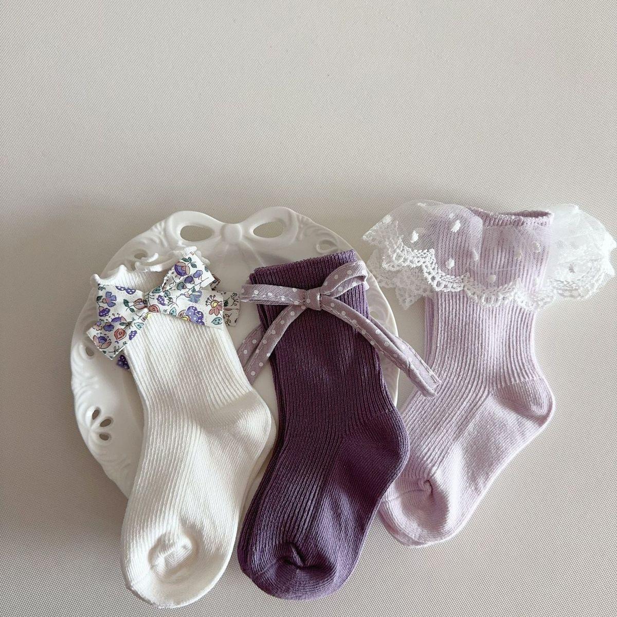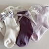 Calcetines para Niñas Primavera y Otoño Calcetines de Princesa Finos de Media Caña Estilo Coreano Encaje Lazo Calcetines de Primavera y Otoño Estilo Princesa