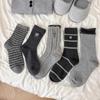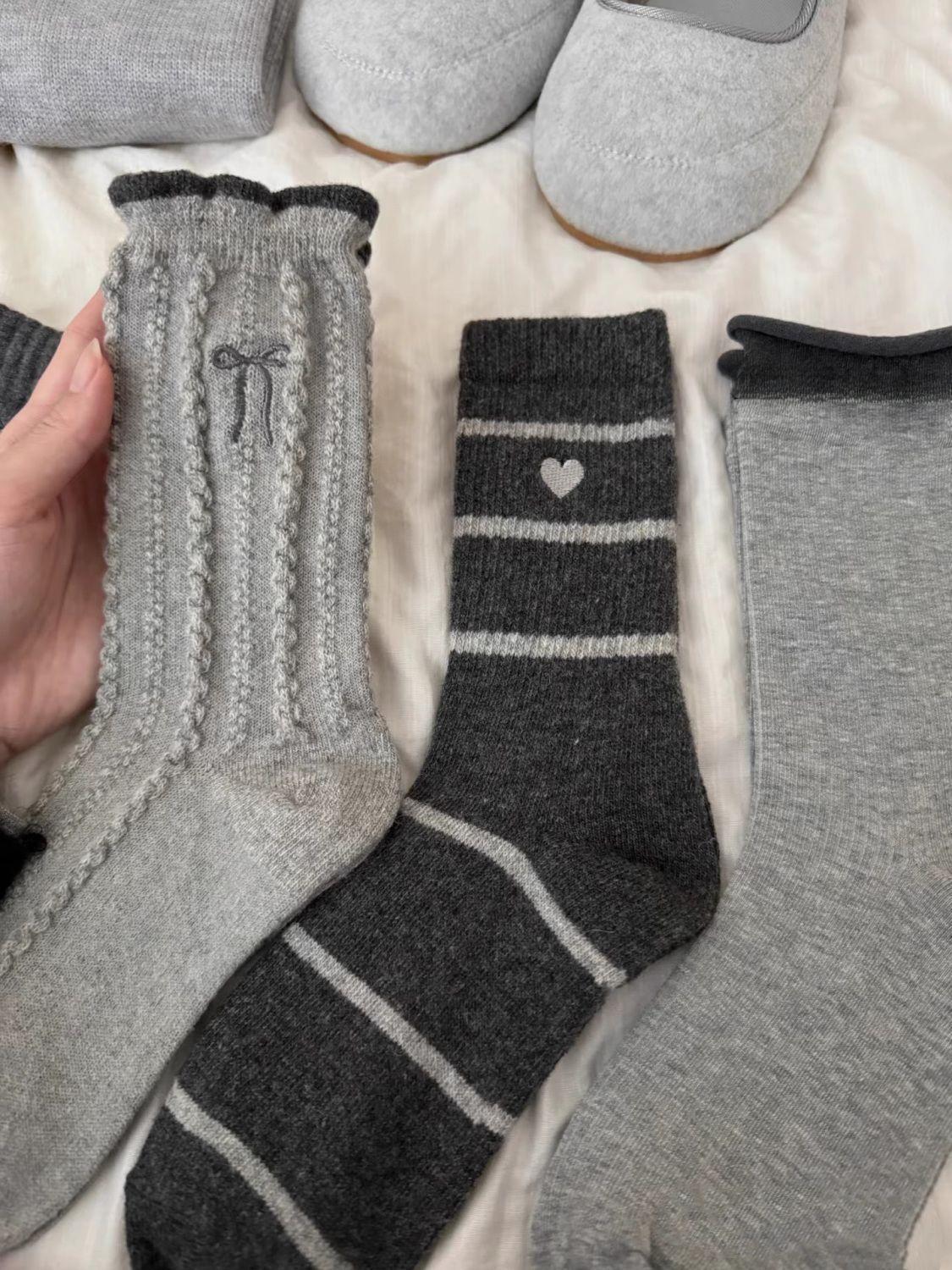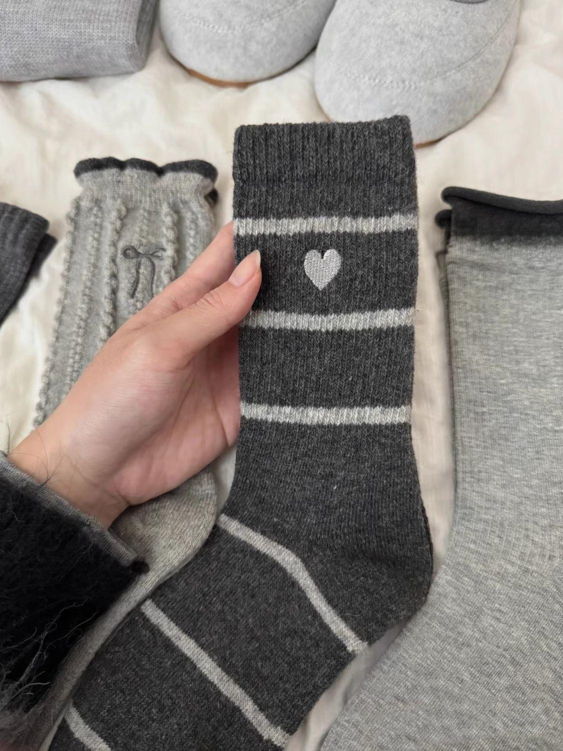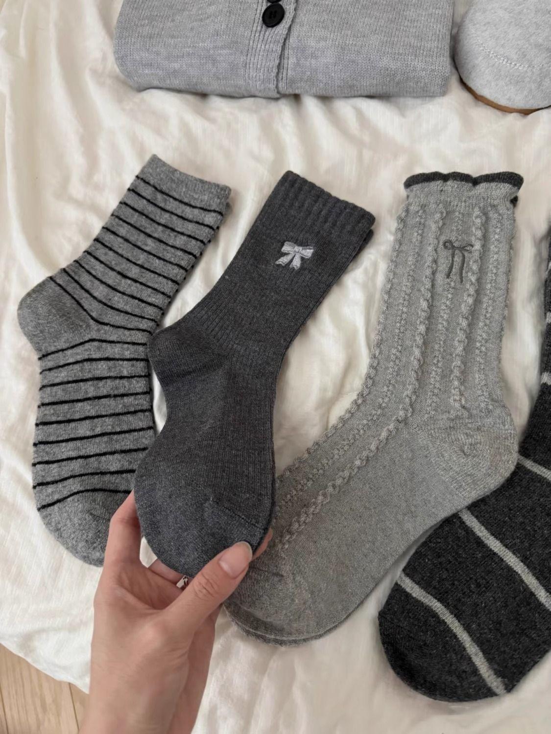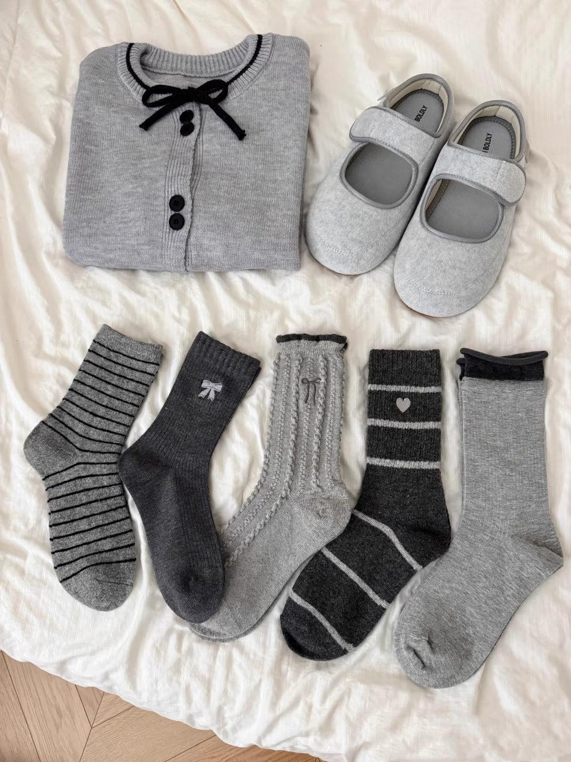 Calcetines para Niñas Serie Gris Calcetines para Niños Serie Gris Calcetines de Media Caña Calcetines de Otoño e Invierno para Niñas Estilo Caliente Rayados Versátiles Lazo
