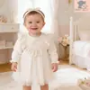 Vestido de Bebé Primavera y Otoño Niña Bebé Encaje Retro Elegante Vestido Ropa de Niños Vestido Malla Vestido Dulce Primer Cumpleaños