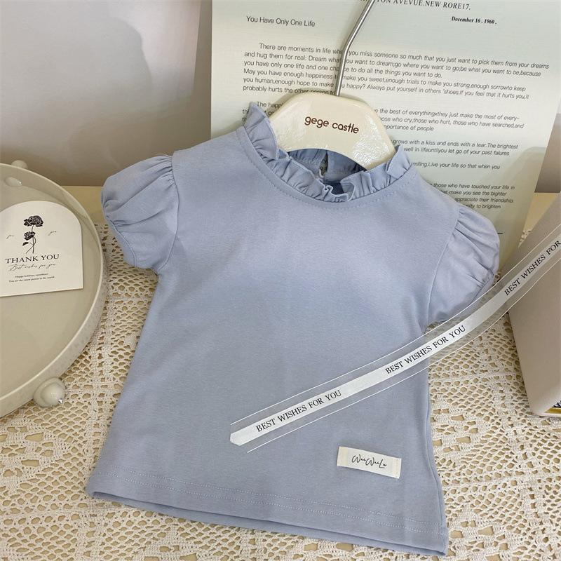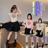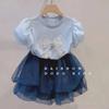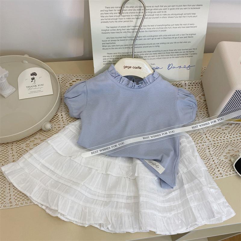 Ropa coreana para niños 2024 nuevo verano niñas camiseta manga abullonada ropa infantil estilo occidental falda de encaje blanco pantalones conjunto de dos piezas