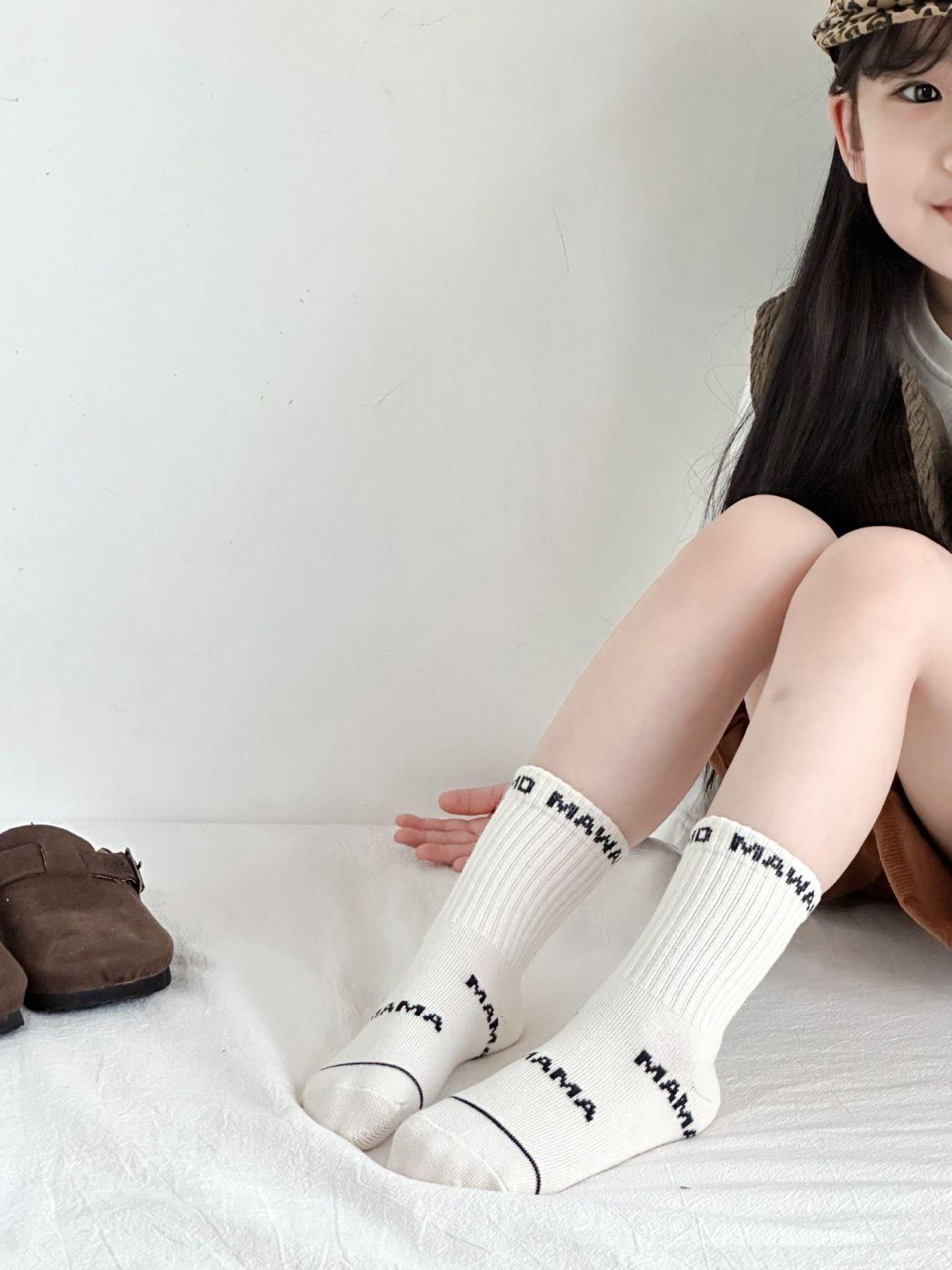 Compra Calcetines de otoño e invierno para niños versátiles calcetines de media caña a rayas para bebé niños y niñas letra caricatura modernos niño deportes estudiante calcetines de algodón al por mayor en Joom.pro