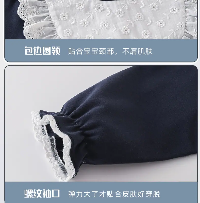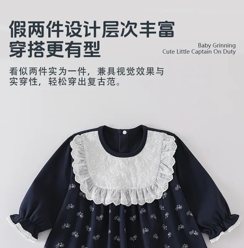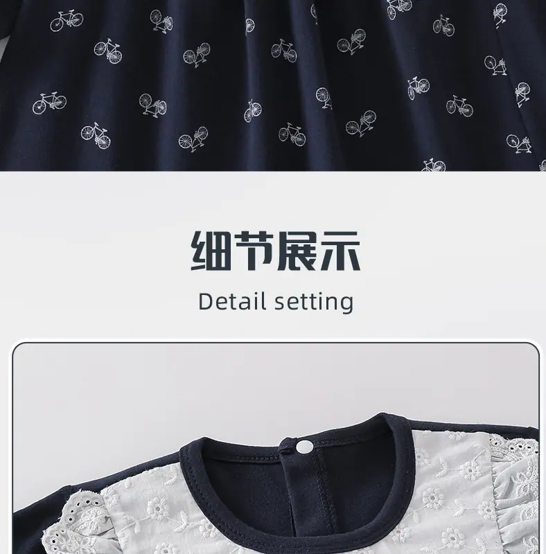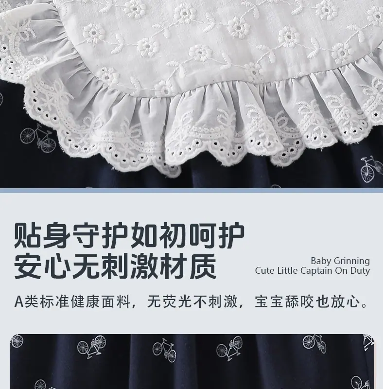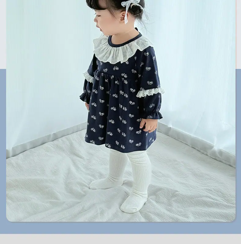 Vestido de Bebé Clase A Algodón Puro Vestido de Princesa Vestido de Niña Otoño Nuevo Set de Vestido con Cuello de Muñeca