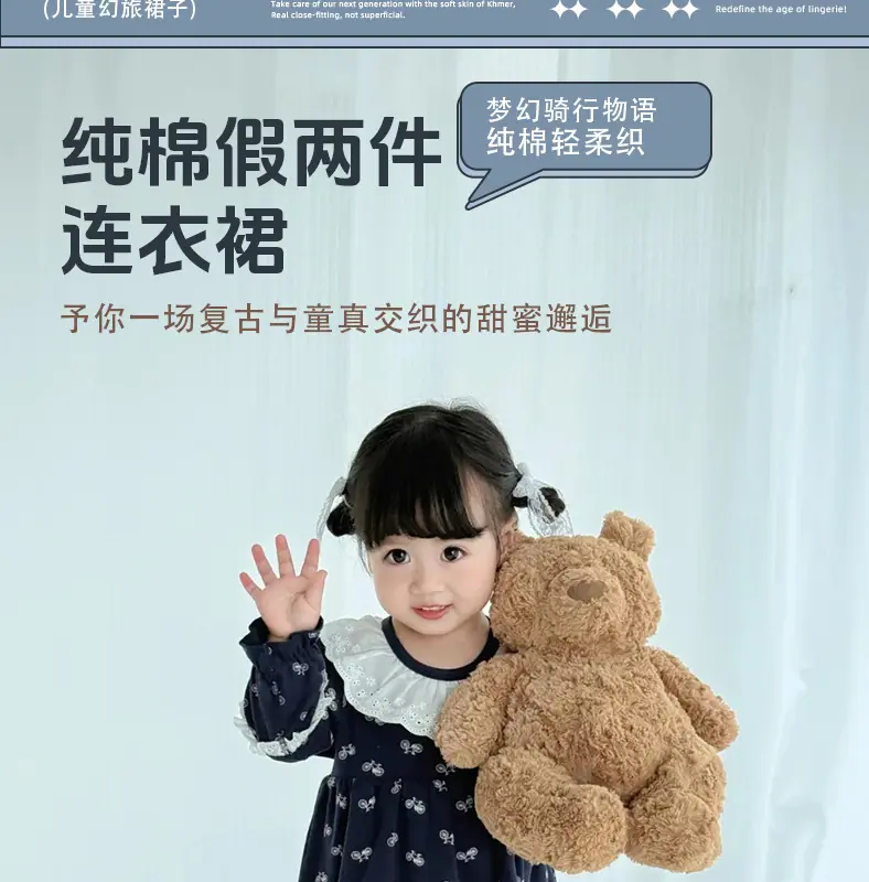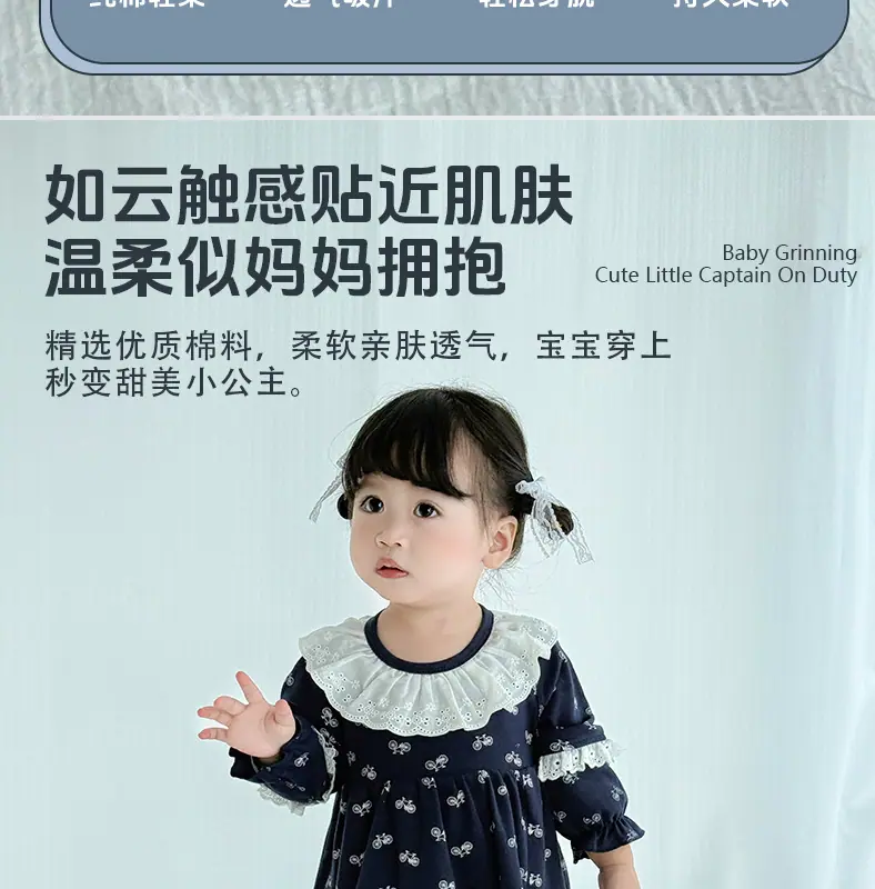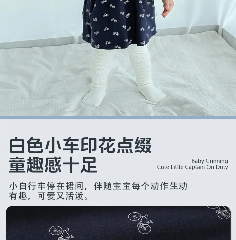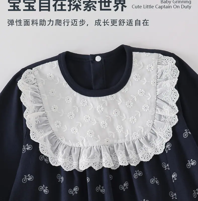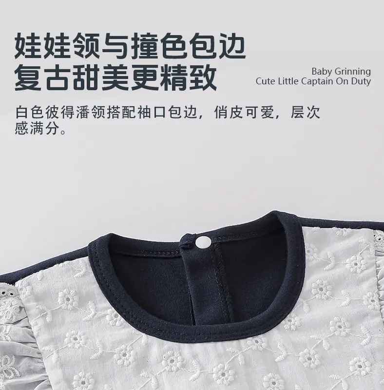 Vestido de Bebé Clase A Algodón Puro Vestido de Princesa Vestido de Niña Otoño Nuevo Set de Vestido con Cuello de Muñeca