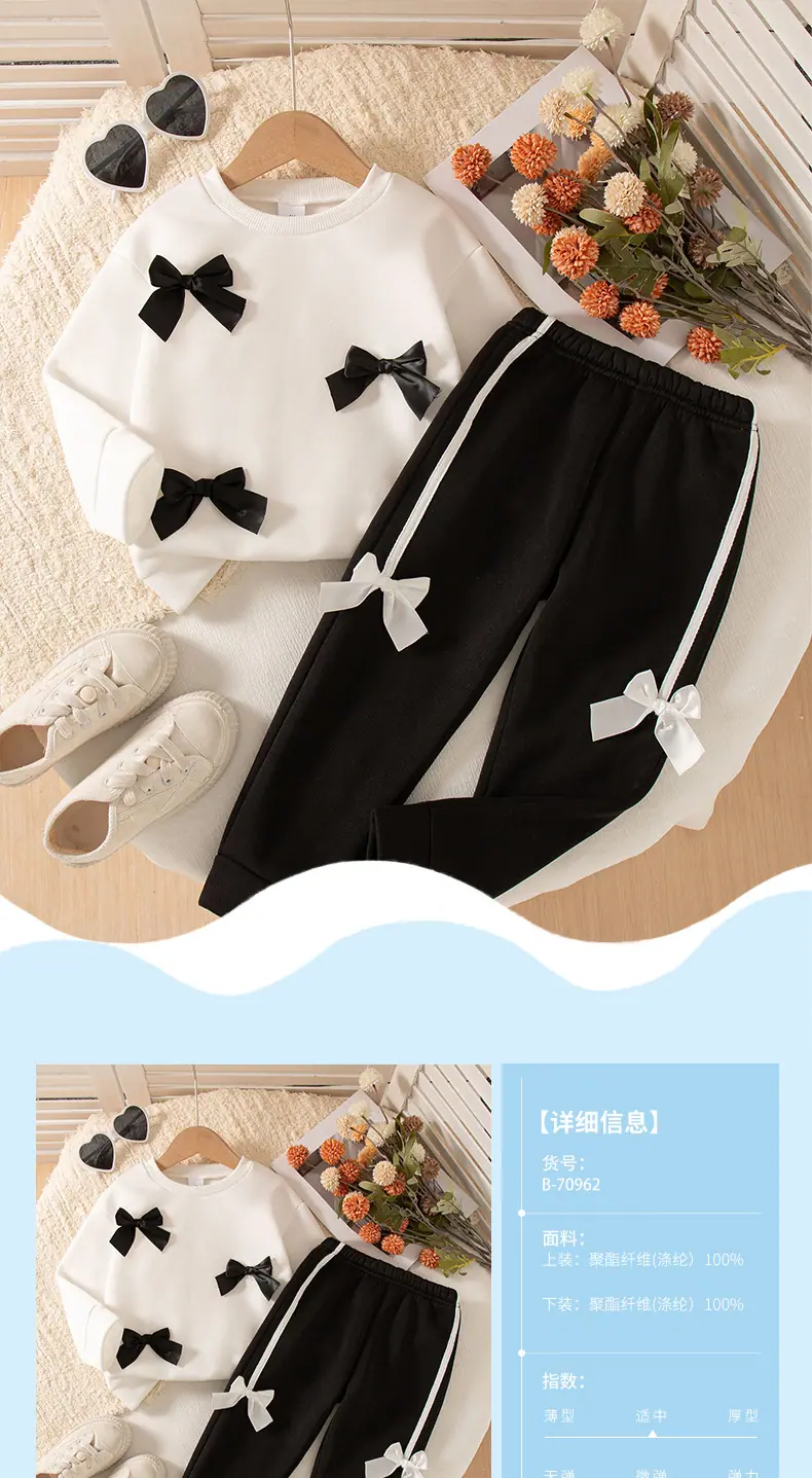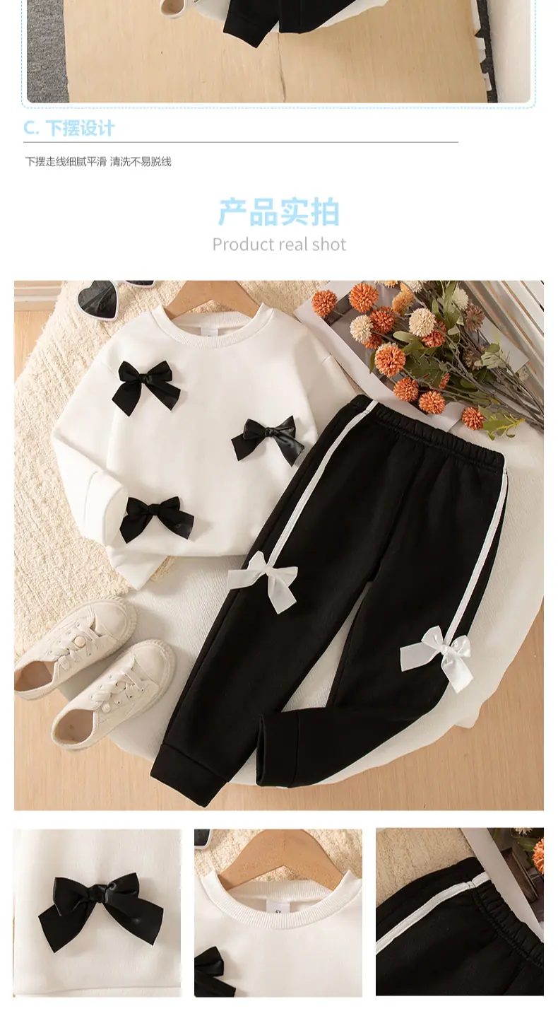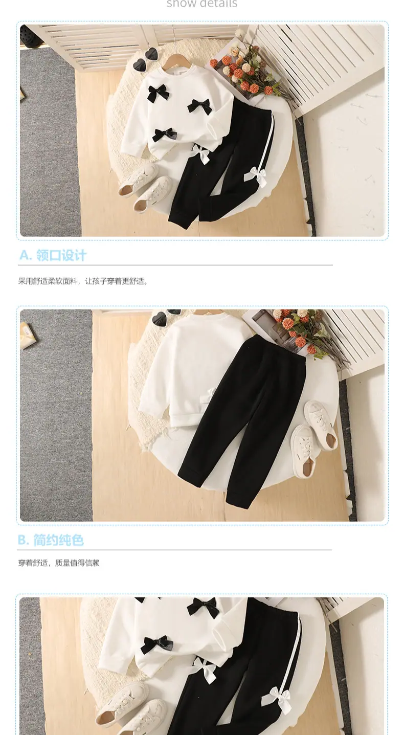 Conjunto de otoño para niñas ropa de otoño 2025 nuevo moderno estilo delgado para niños pequeños y medianos lazo casual conjunto de otoño para niñas