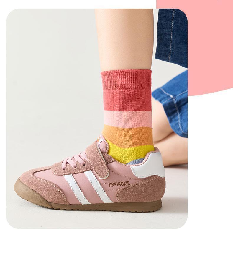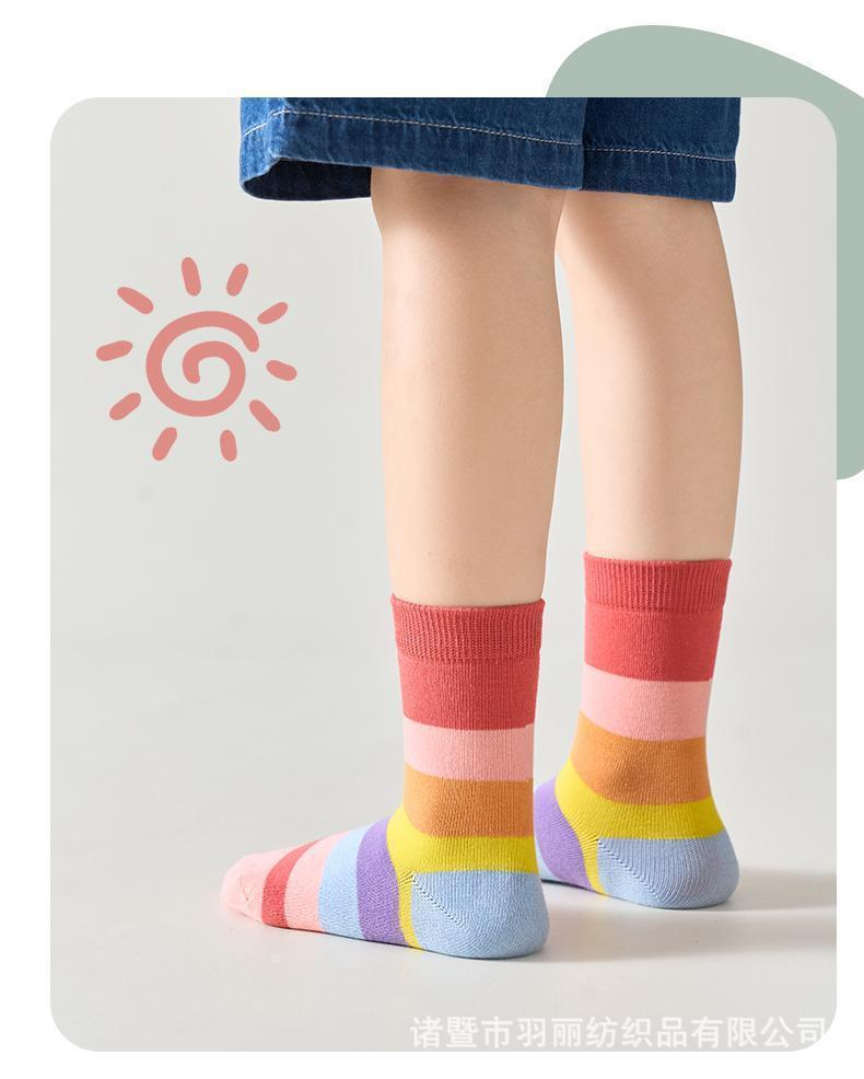 Calcetines para niños primavera y otoño arcoíris lindos media pantorrilla versátiles calcetines casuales transpirables para niñas otoño e invierno calcetines de algodón de princesa clase a
