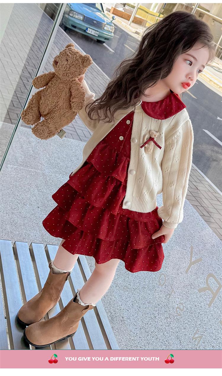 Vestido de Niña Otoño Moda Infantil Niña Pequeña Vestido de Princesa Bebé de Un Año Vestido de Fiesta Set Vestido de Pastel