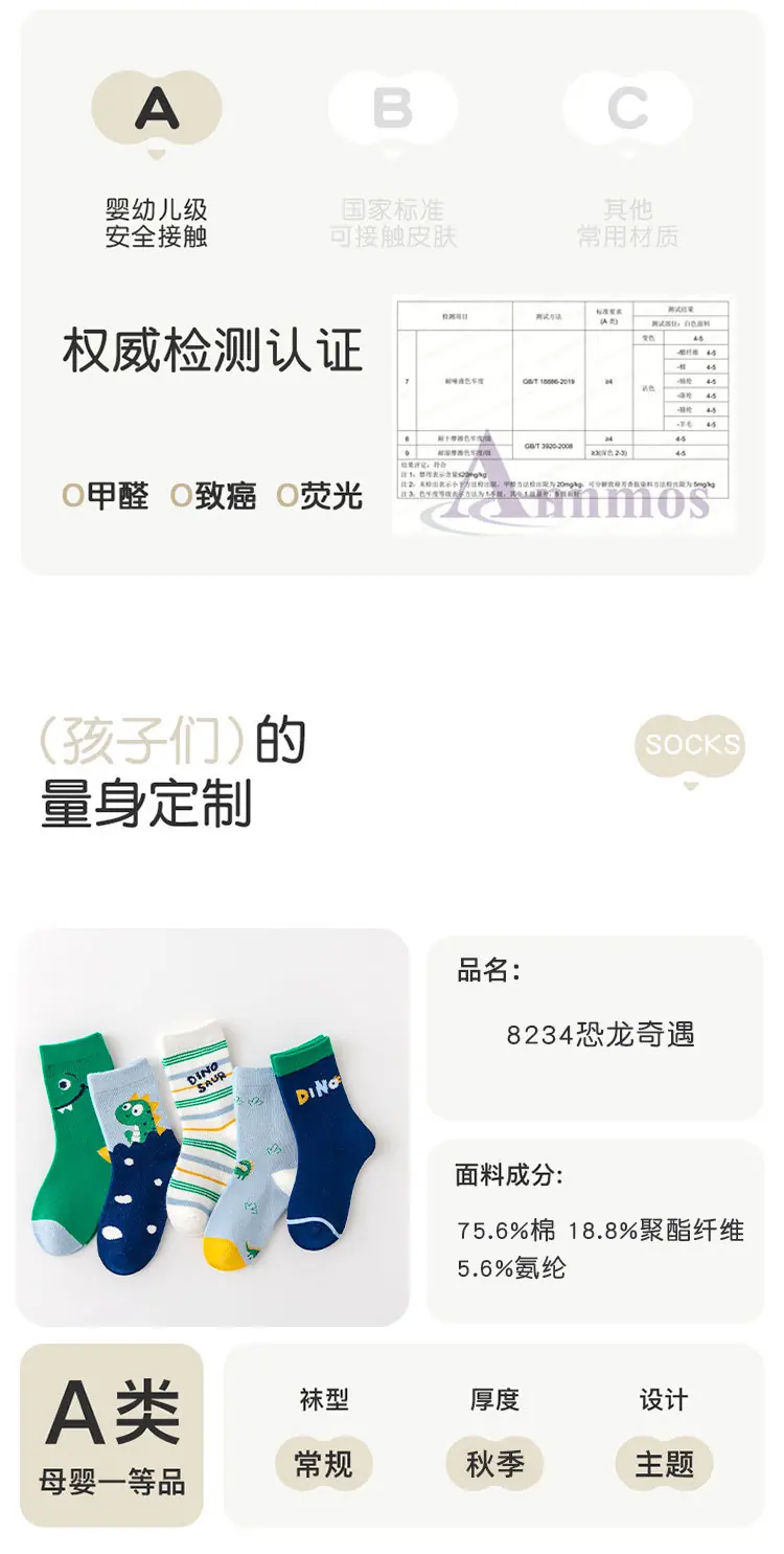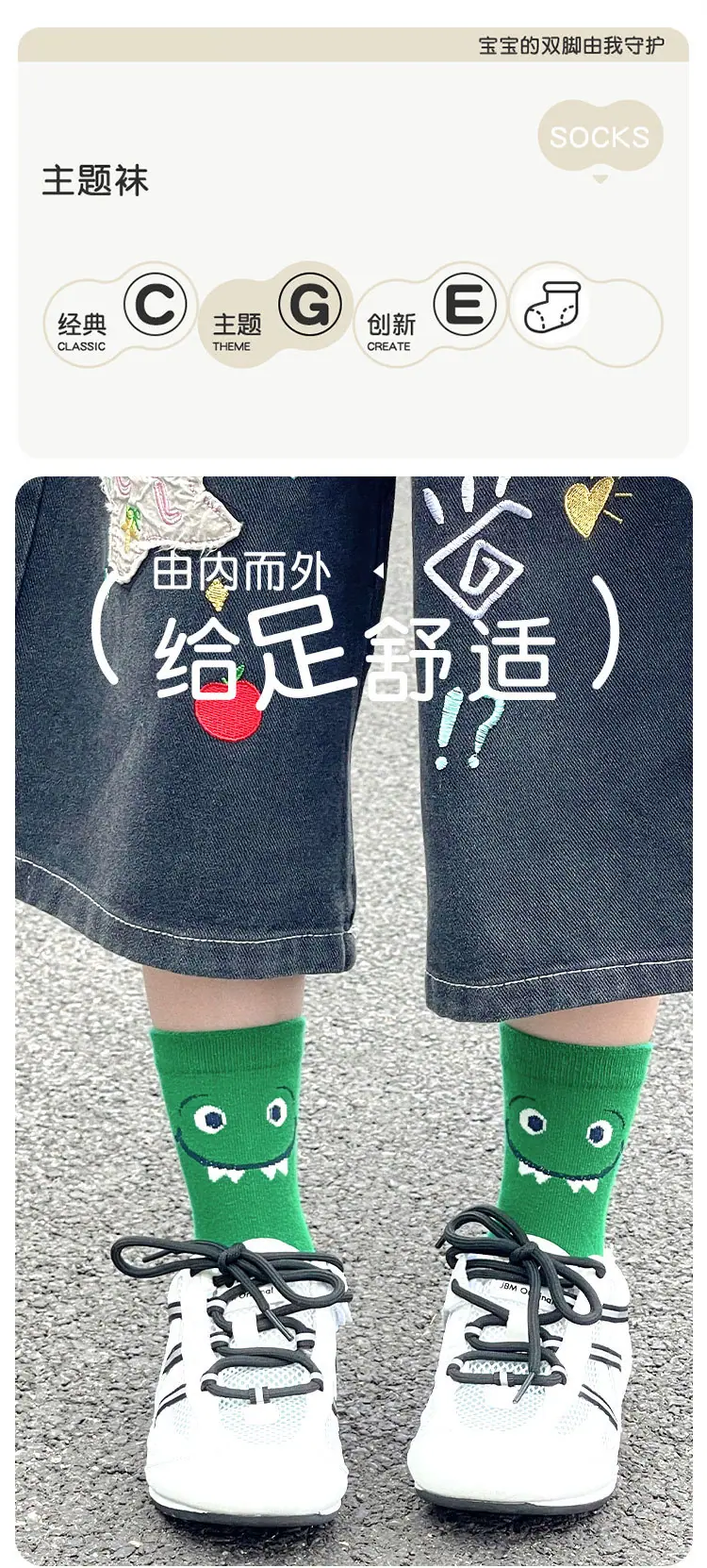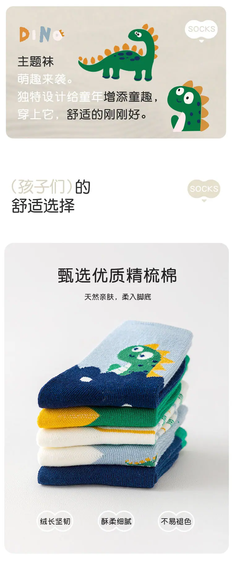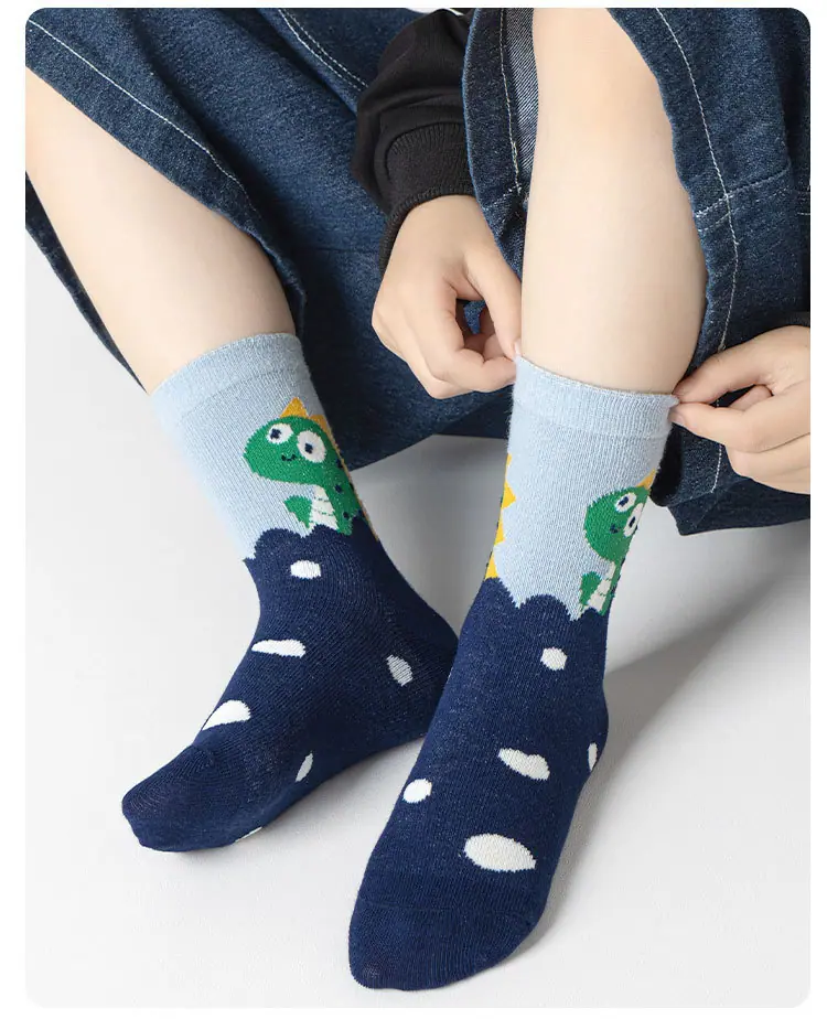 Calcetines nuevos de Otoño e Invierno para Niños Clase A Lindo Dinosaurio Calcetines para Niños de Dibujos Animados Media Pantorrilla Algodón Primavera y Otoño Bebé Transpirable