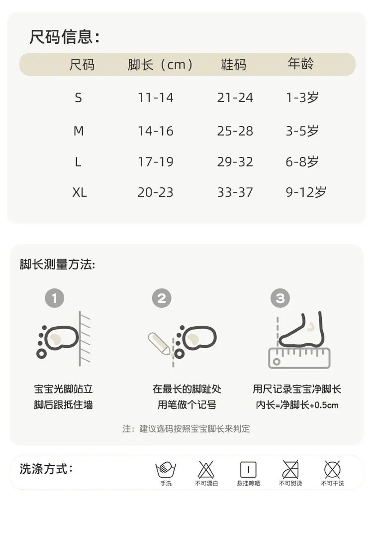 S size 1-3 years old [recommended shoe size 21-24], M size 3-5 years old [recommended shoe size 25-28], Size L...