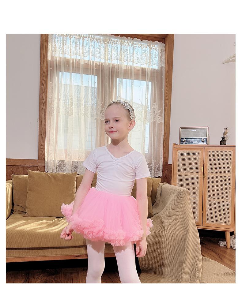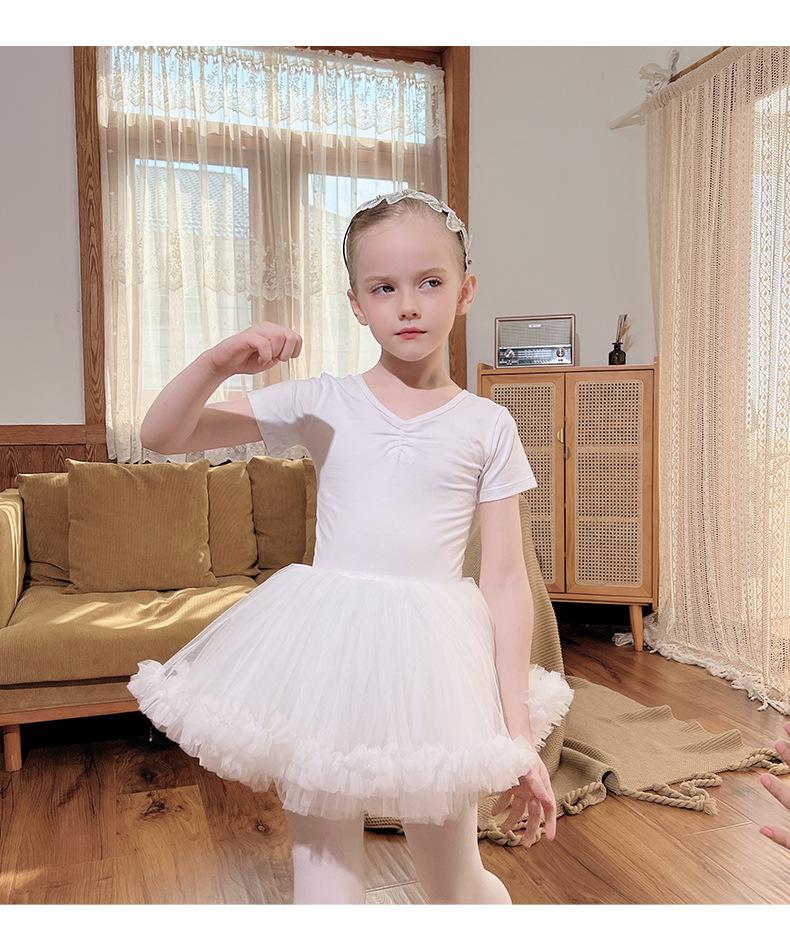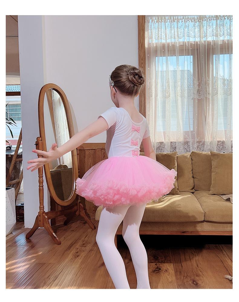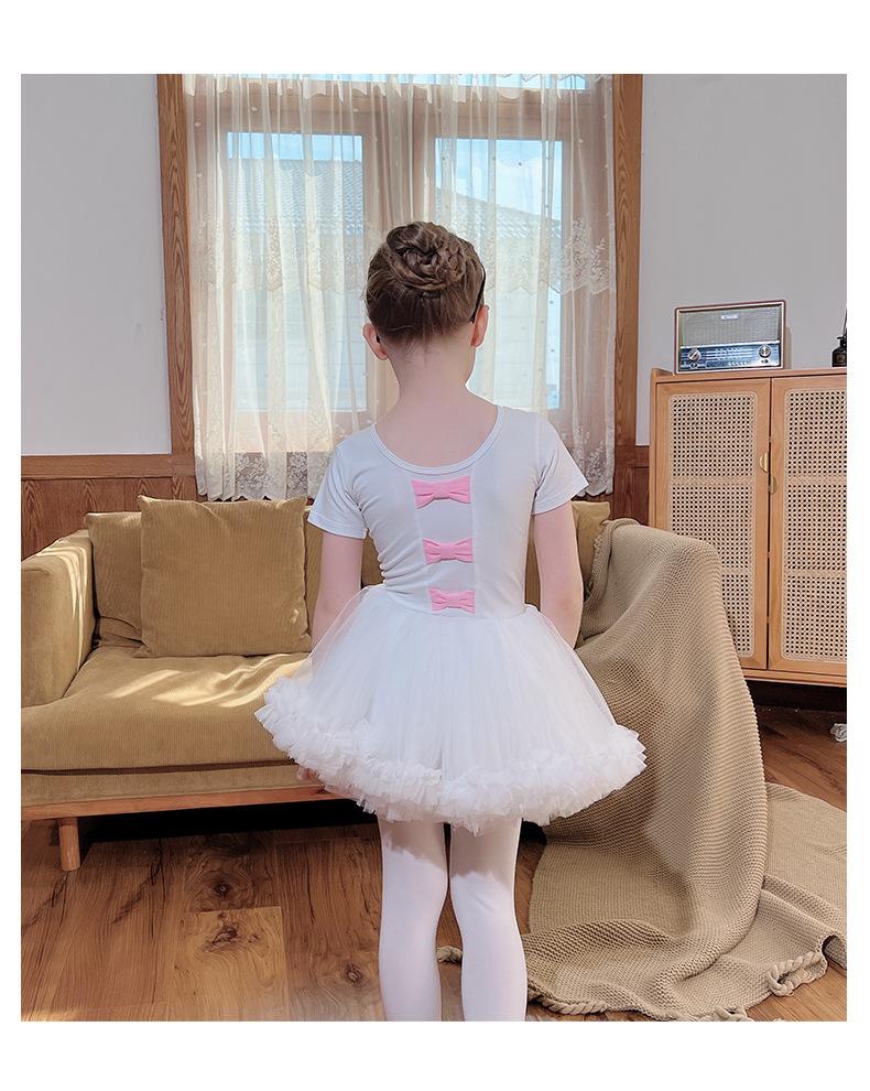 Ropa de baile para niños ropa de entrenamiento para niñas verano manga corta blanco falda de ballet para niña pequeña falda convexa rosa danza china