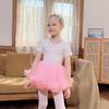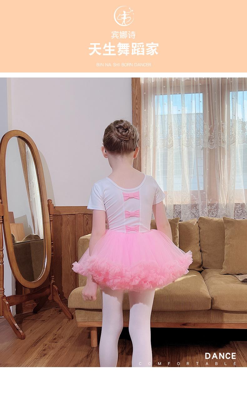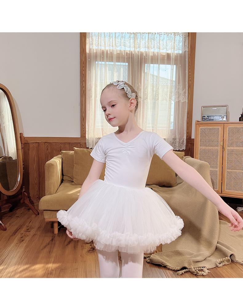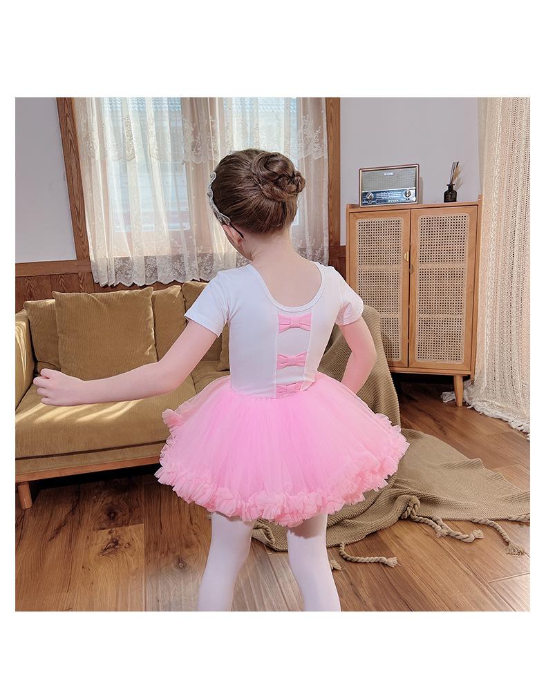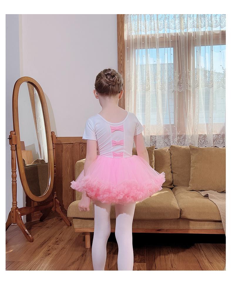 Ropa de baile para niños ropa de entrenamiento para niñas verano manga corta blanco falda de ballet para niña pequeña falda convexa rosa danza china