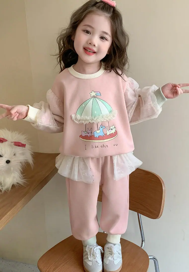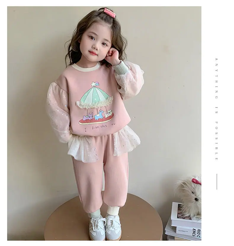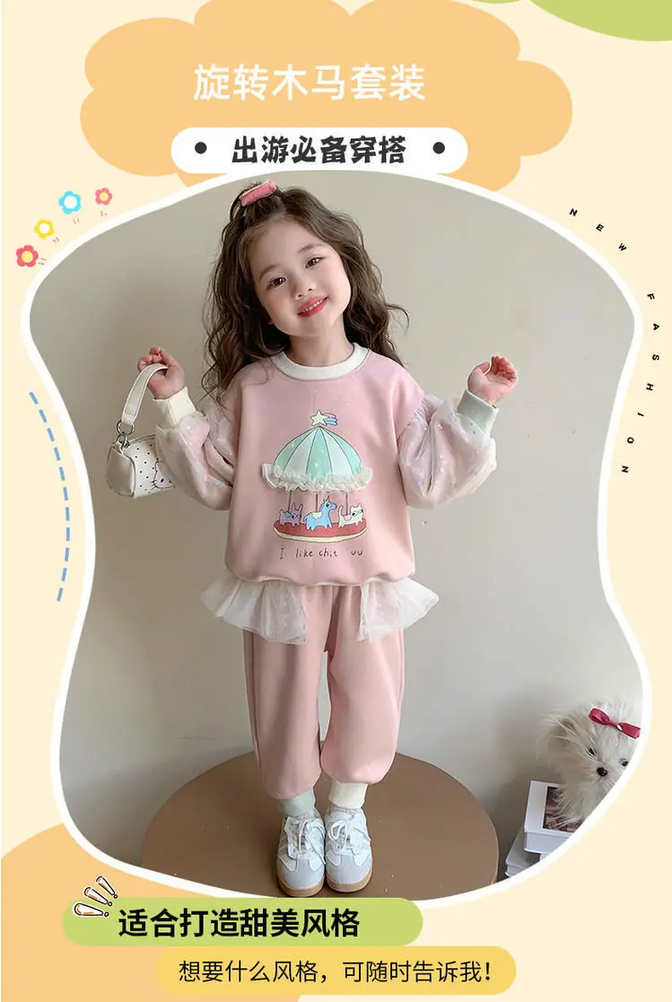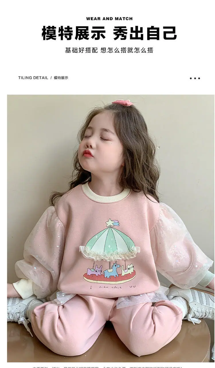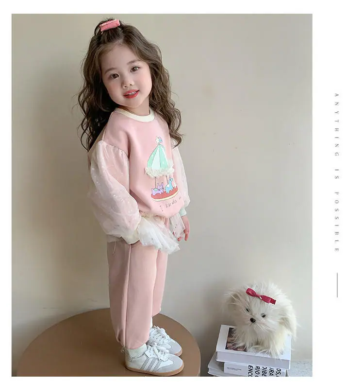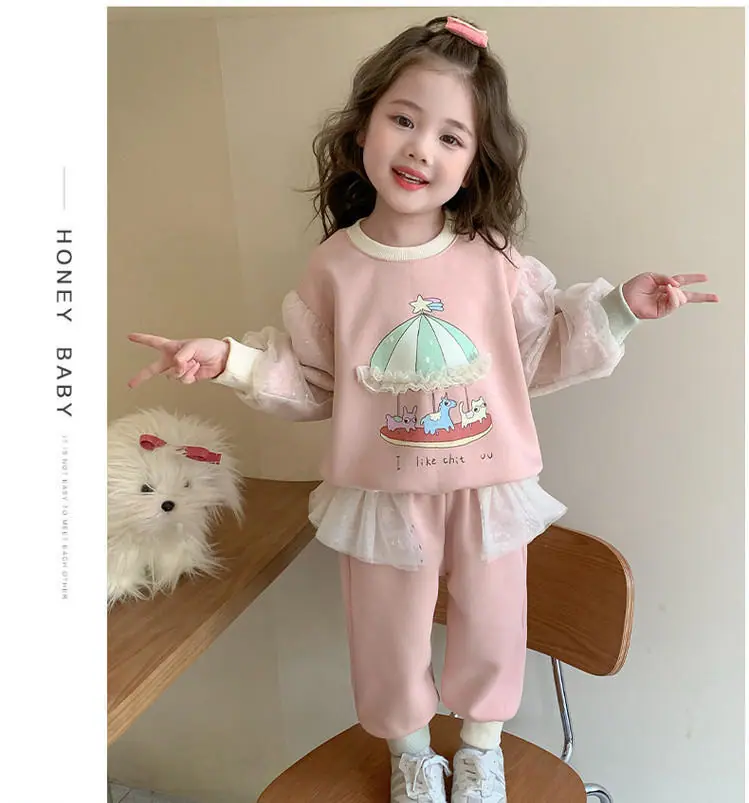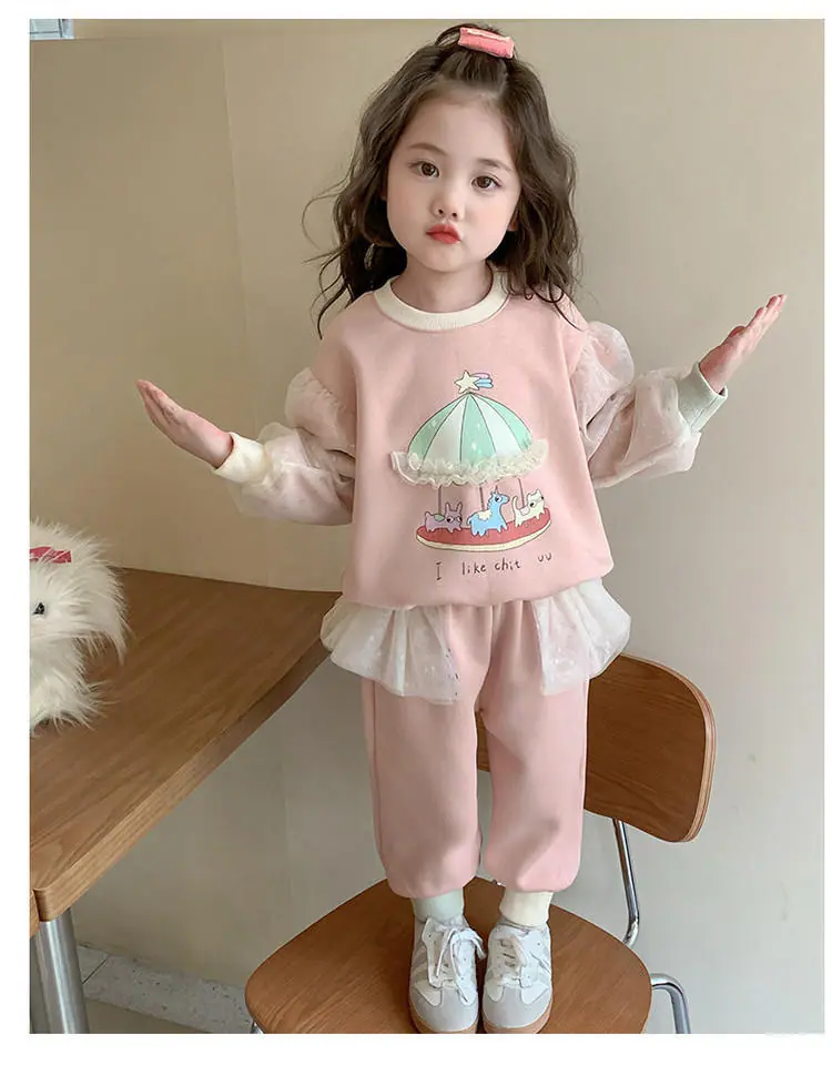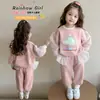 Conjunto de moda para niñas otoño y primavera casual top de moda niños pequeños y medianos bebé niña elegante conjunto de dos piezas