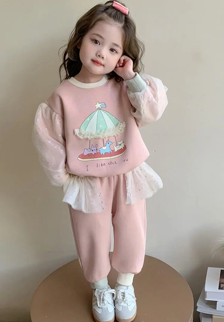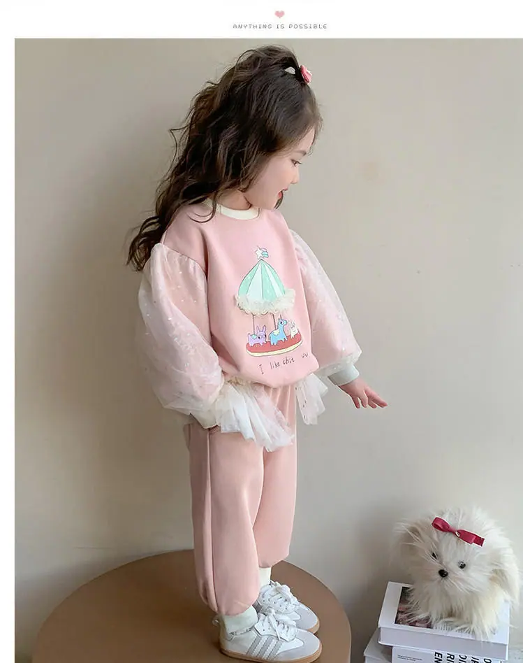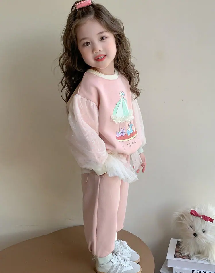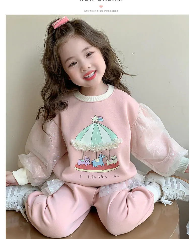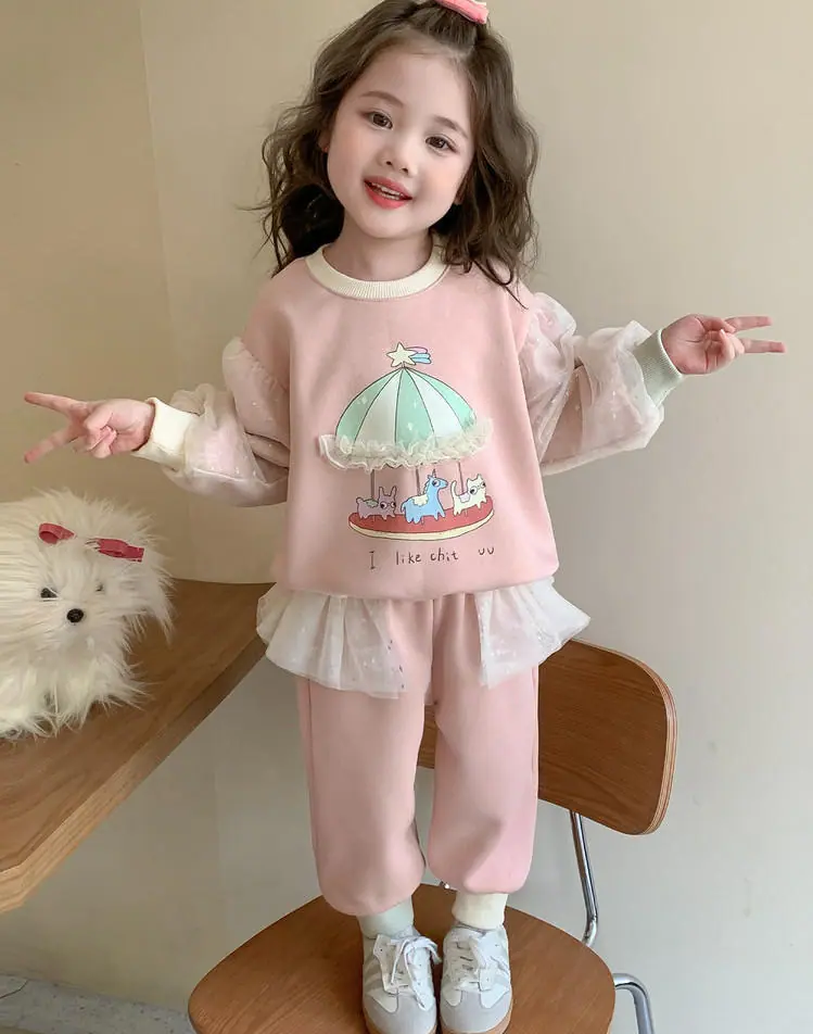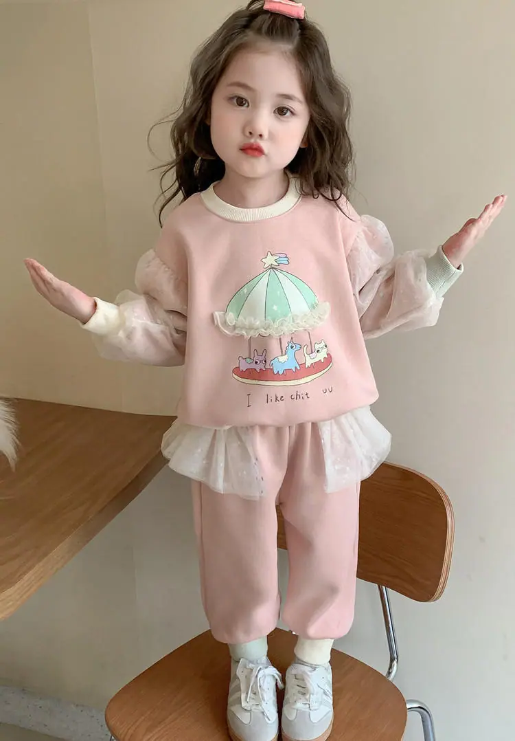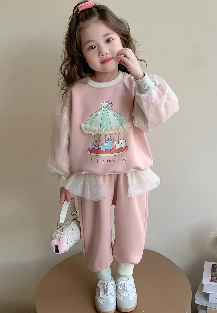 Conjunto de moda para niñas otoño y primavera casual top de moda niños pequeños y medianos bebé niña elegante conjunto de dos piezas