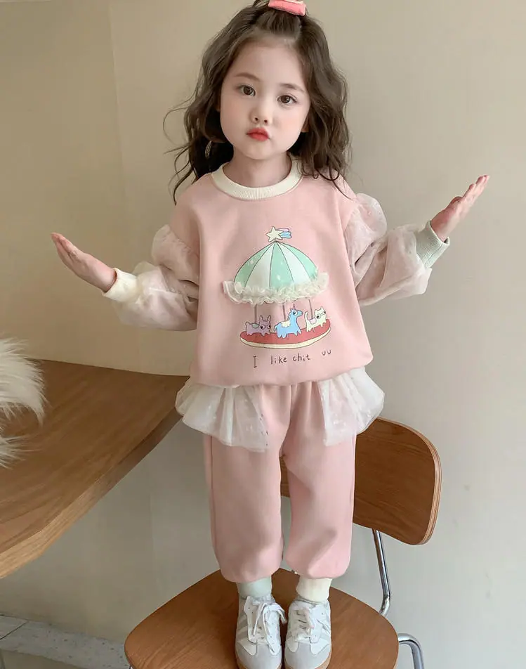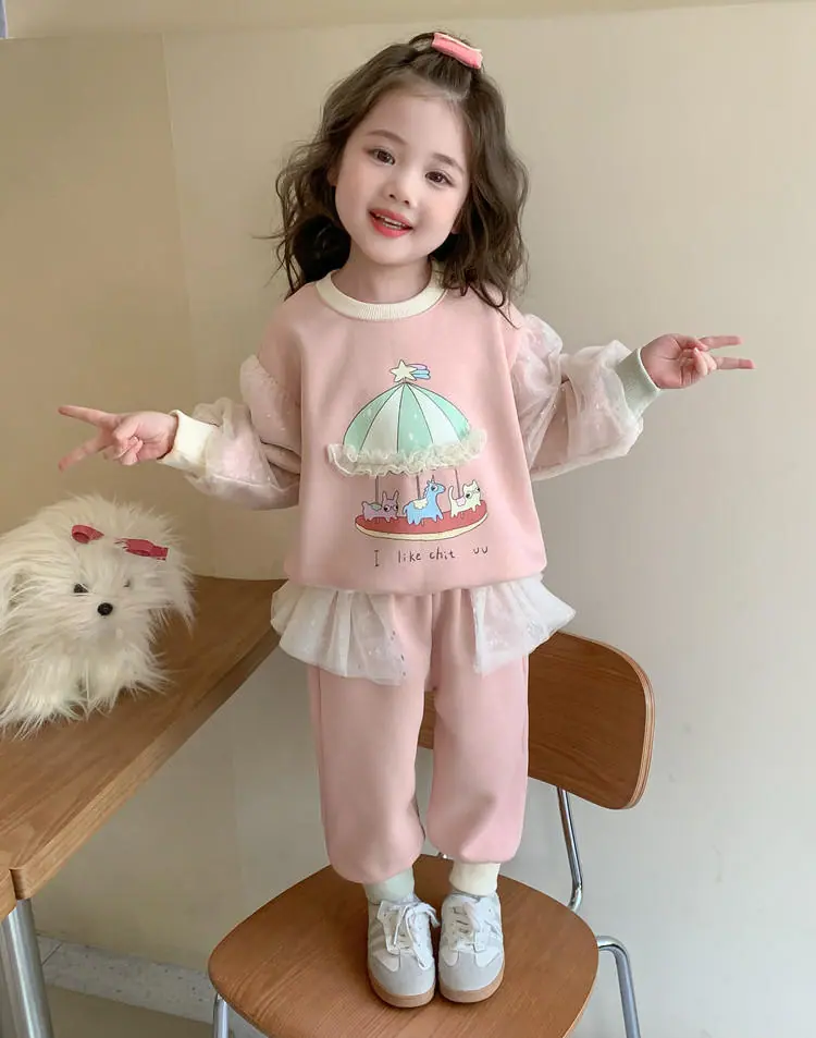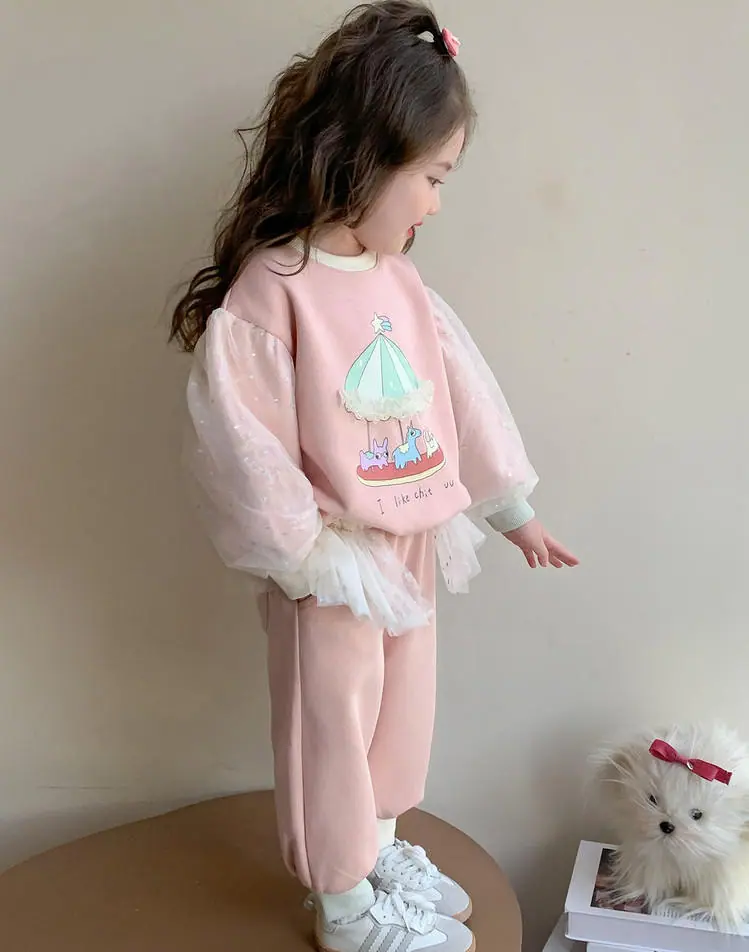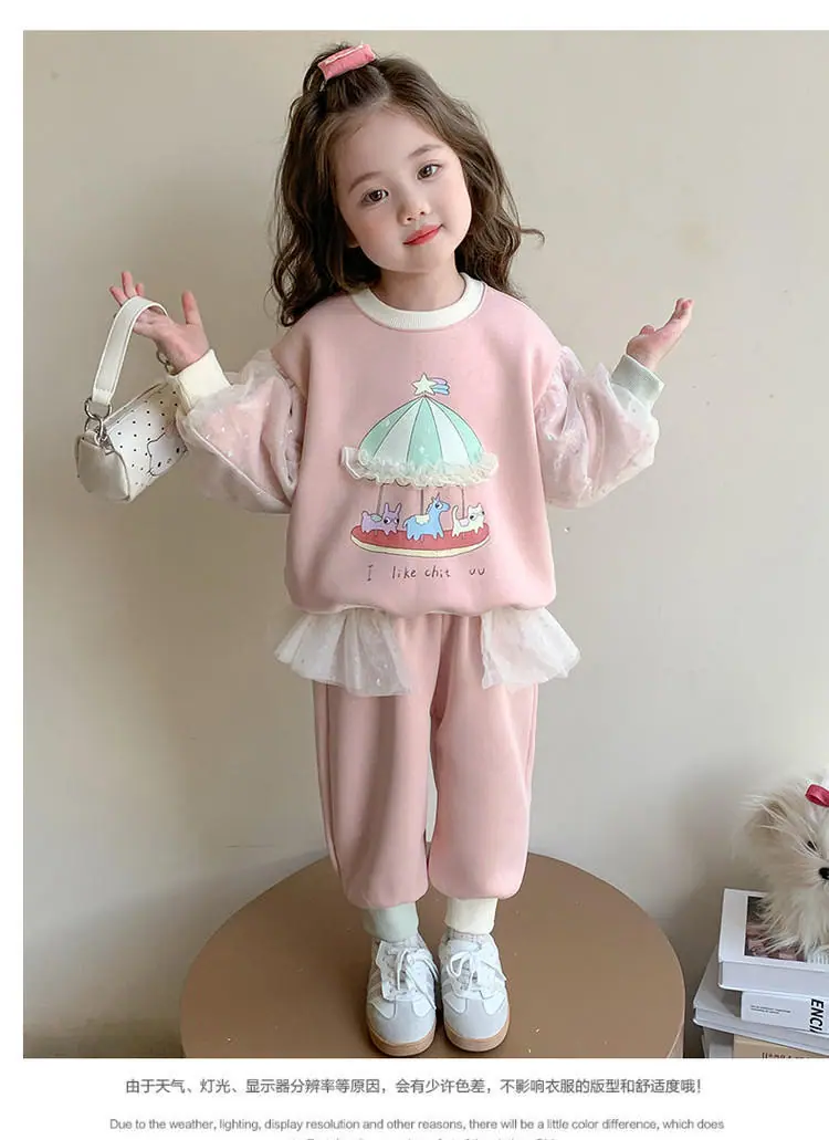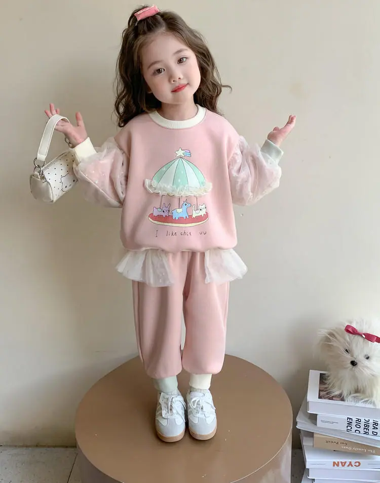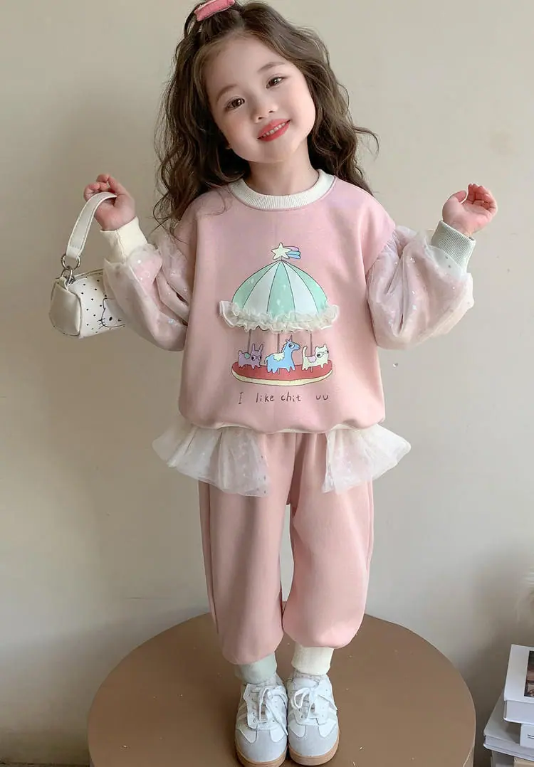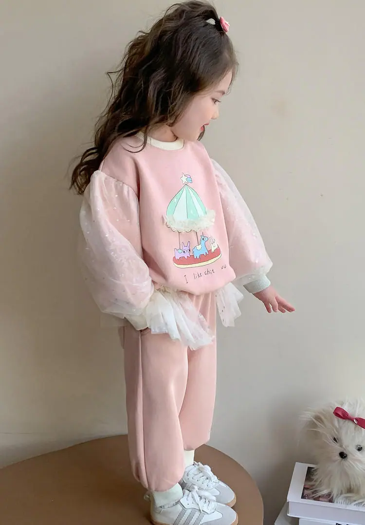 Conjunto de moda para niñas otoño y primavera casual top de moda niños pequeños y medianos bebé niña elegante conjunto de dos piezas