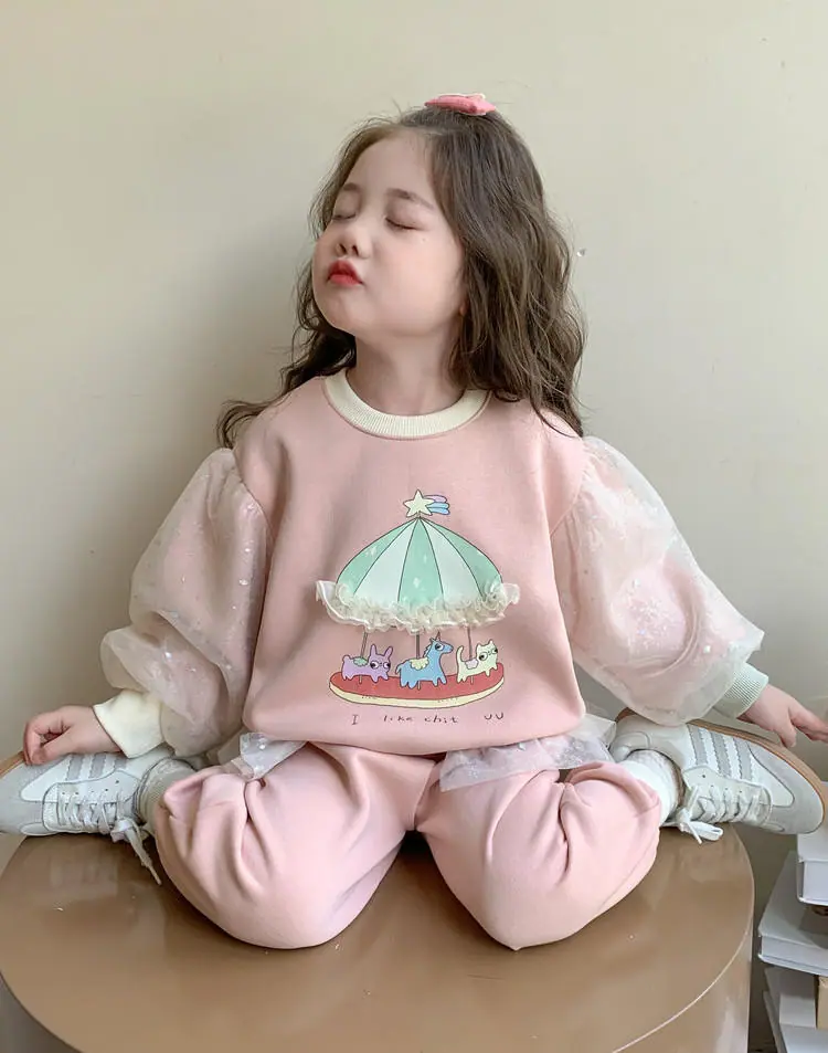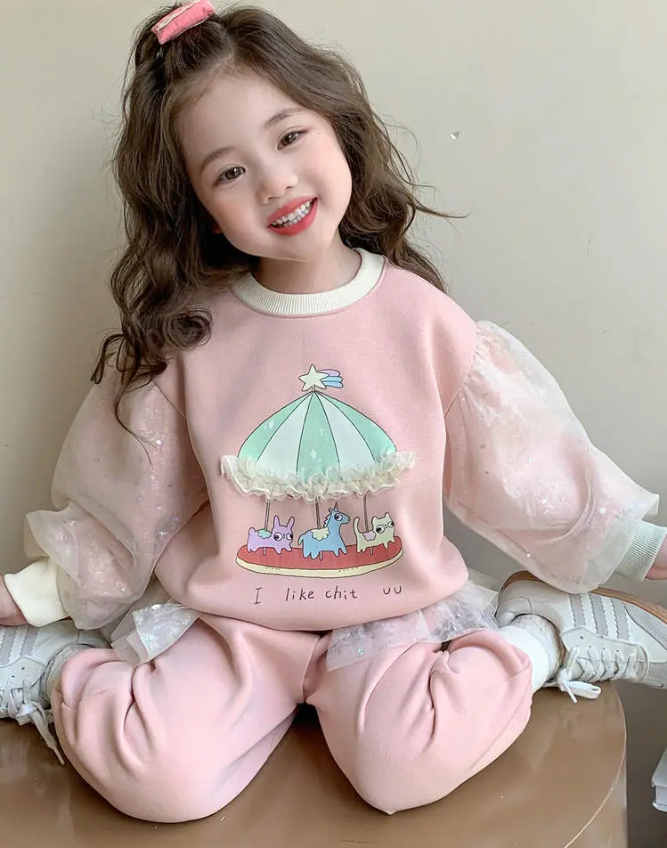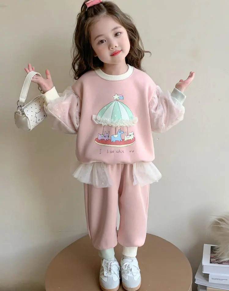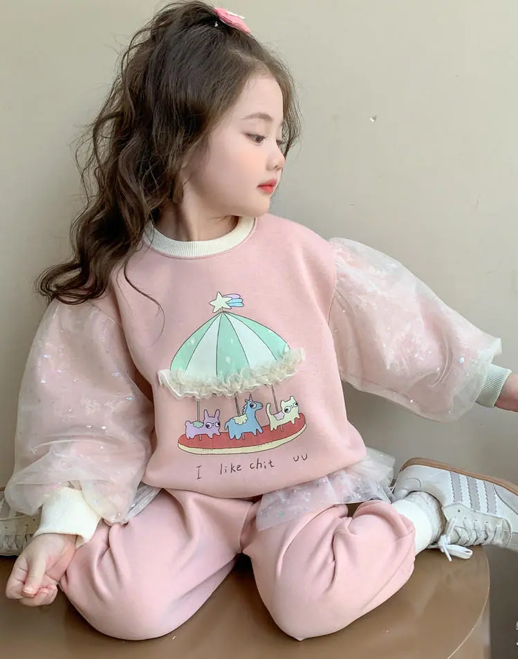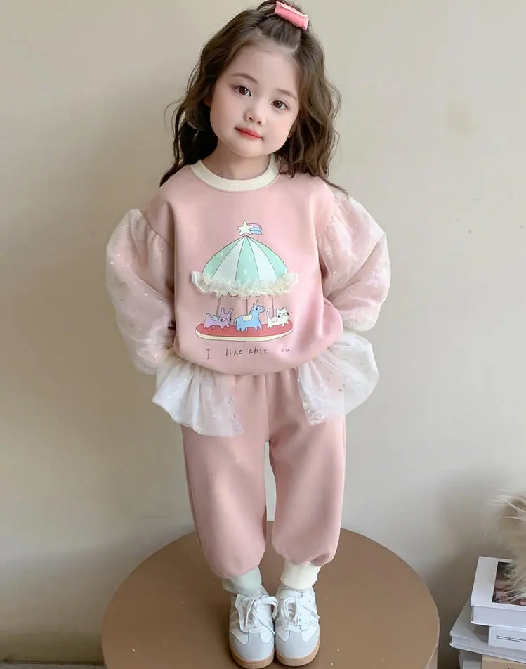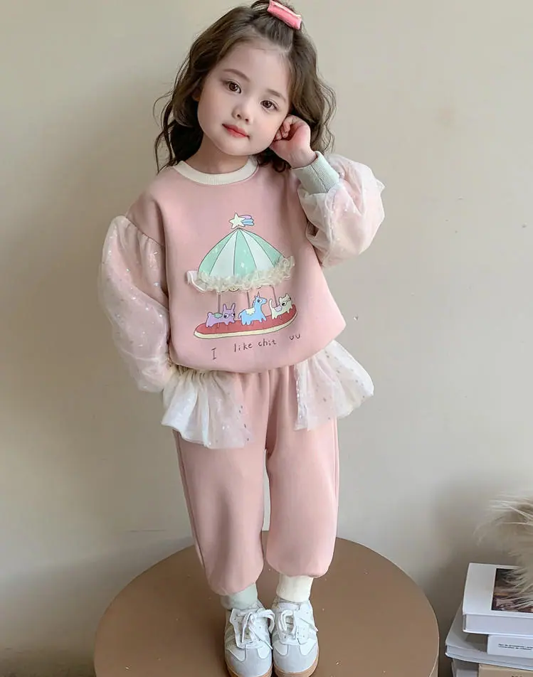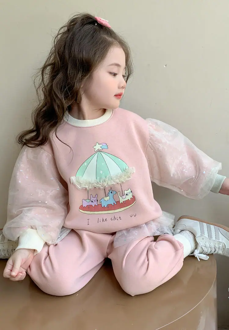 Conjunto de moda para niñas otoño y primavera casual top de moda niños pequeños y medianos bebé niña elegante conjunto de dos piezas
