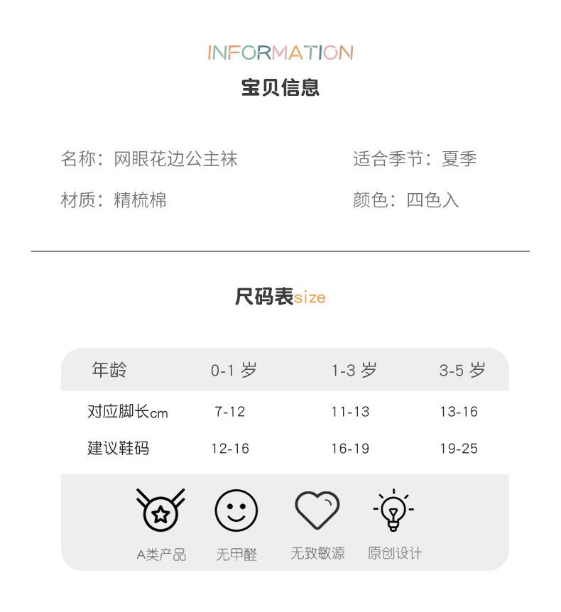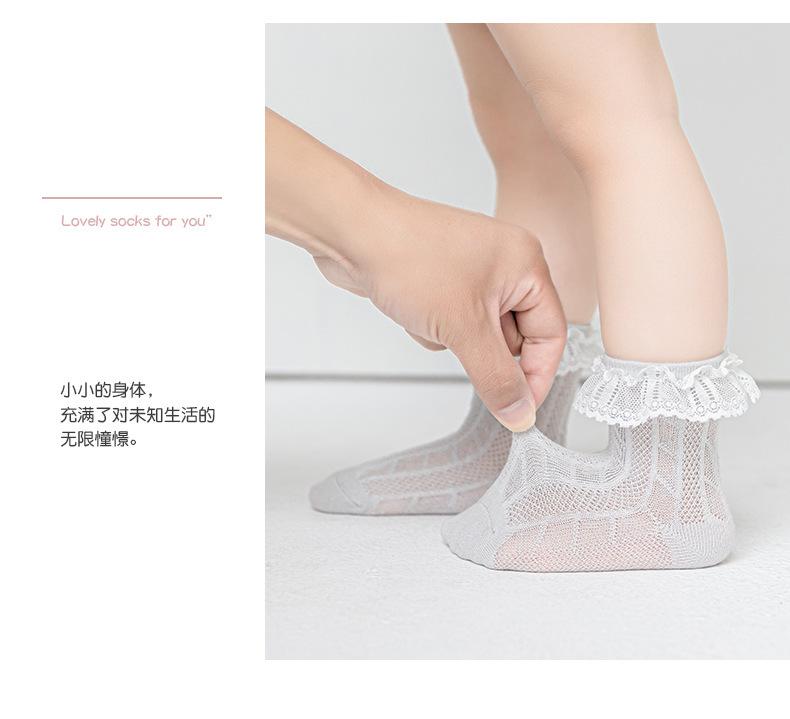 Calcetines para niños Calcetines de algodón peinado Primavera y verano Niñas Bebé Niñas Malla Calcetines de encaje para niñas Verano Delgados