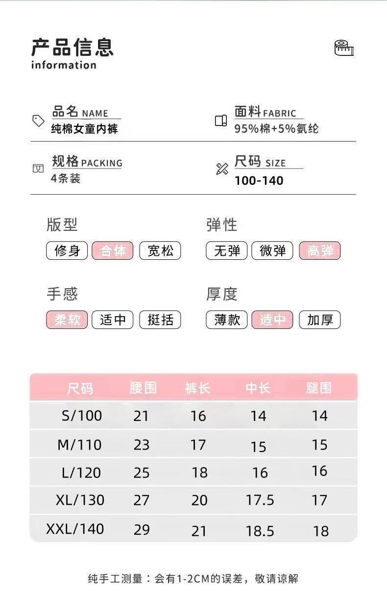 Procesamiento personalizado ropa interior para niños mujeres algodón puro algodón clase A mujeres calzoncillos bóxer para bebé niña niña calzoncillos de cuatro esquinas