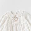 Exquisito bordado de flores pequeñas en forma de corazón en el pecho