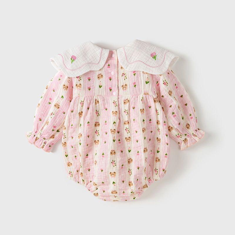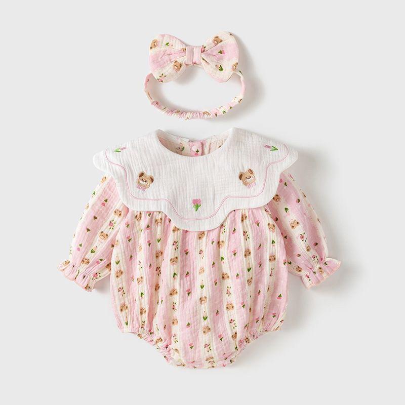 Ropa de una pieza para bebés y niños pequeños para primavera, ropa de bebé niña súper linda de princesa, mameluco de manga corta triangular de manga larga para salir