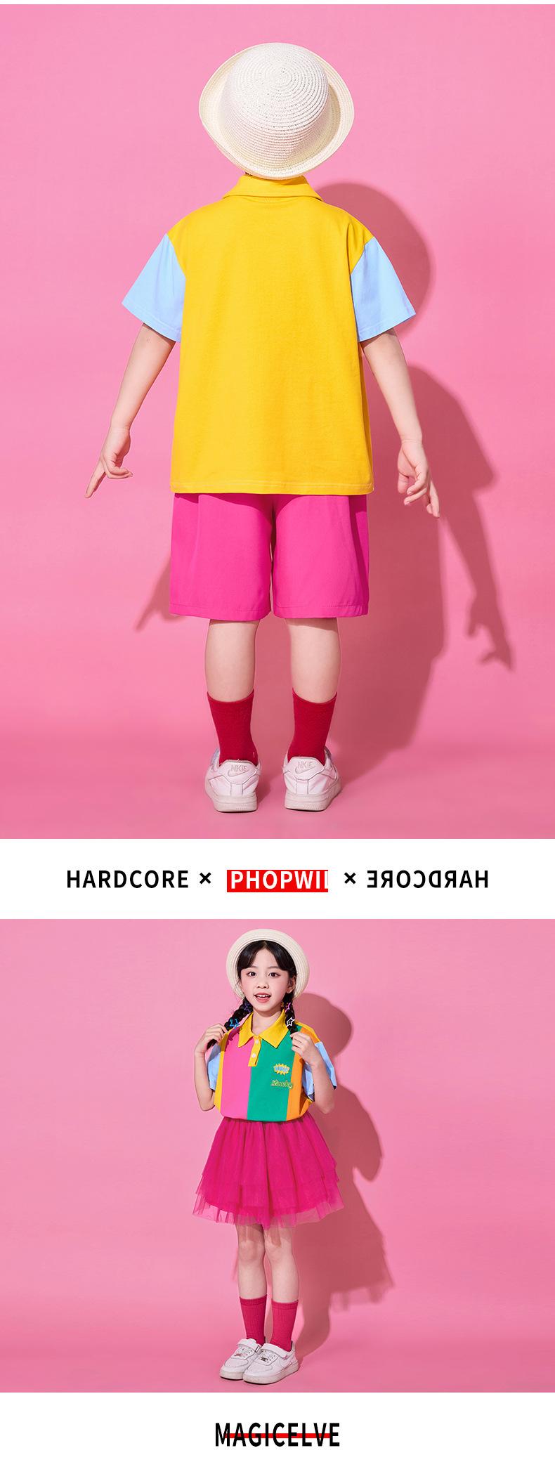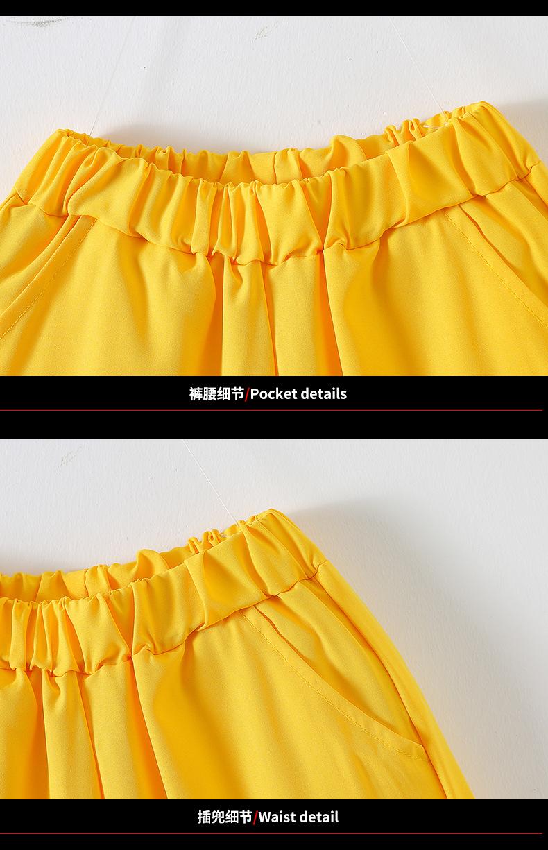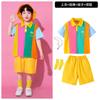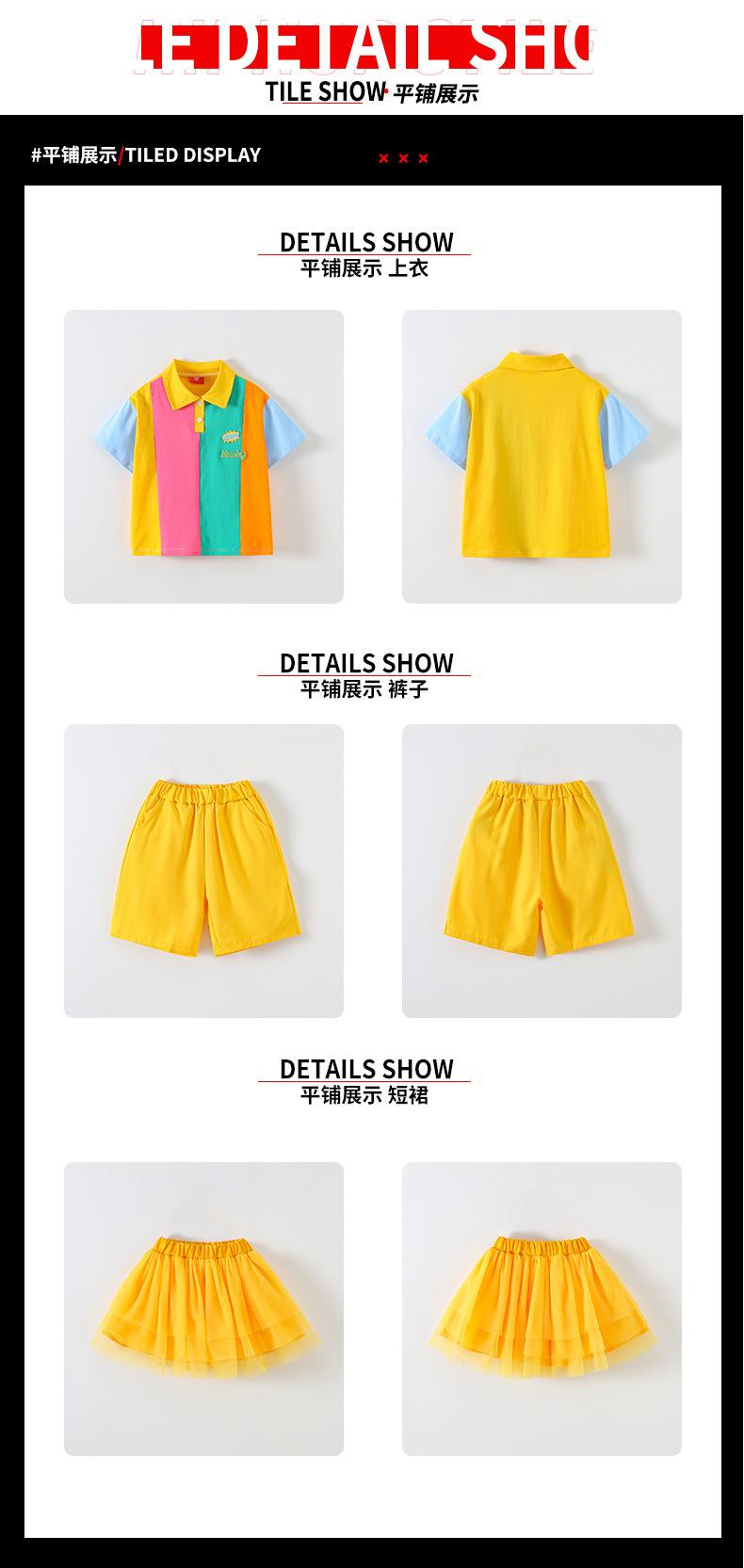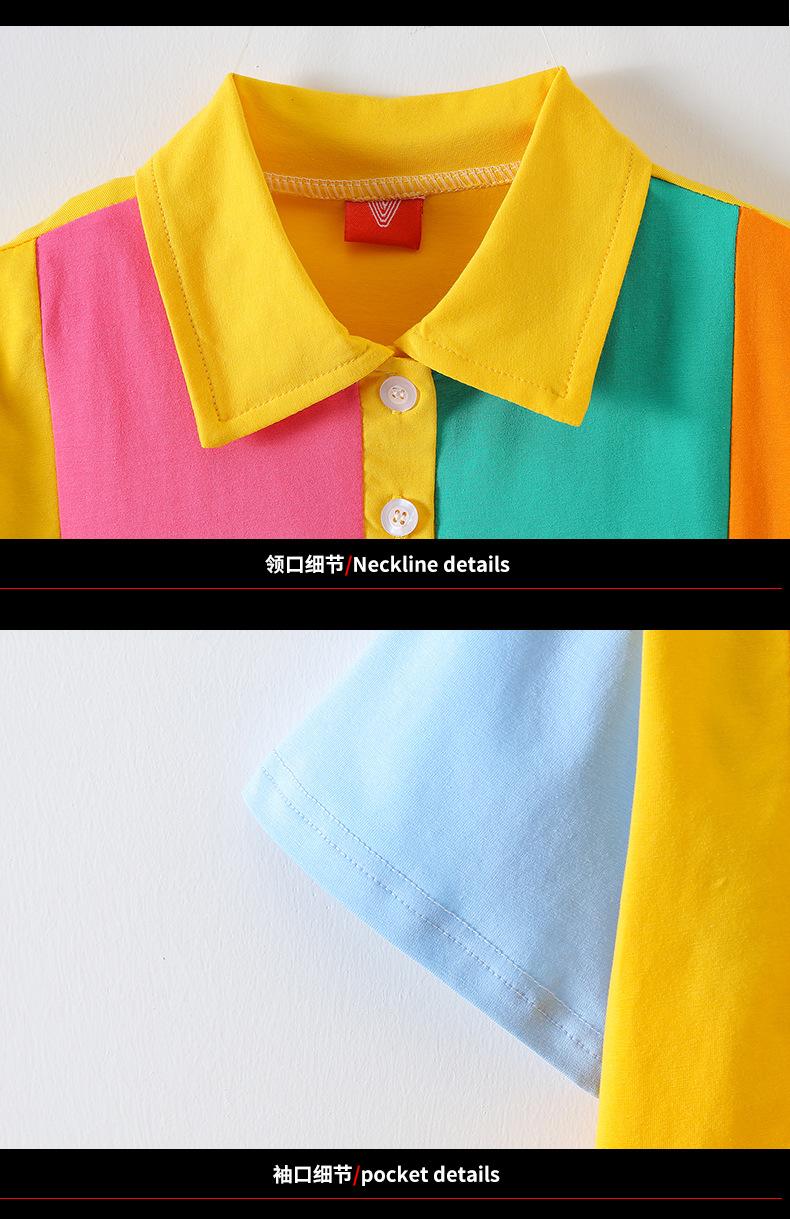 Yellow lapel color block short sleeves, Orange shorts, Yellow shorts, Rose red shorts, Pure green shorts, Gree...