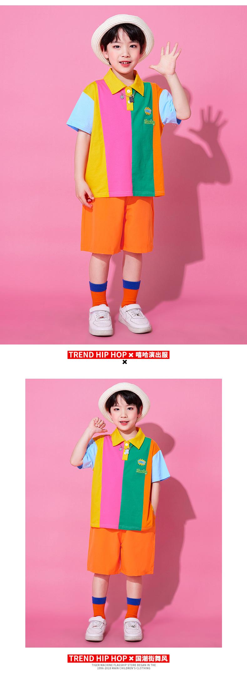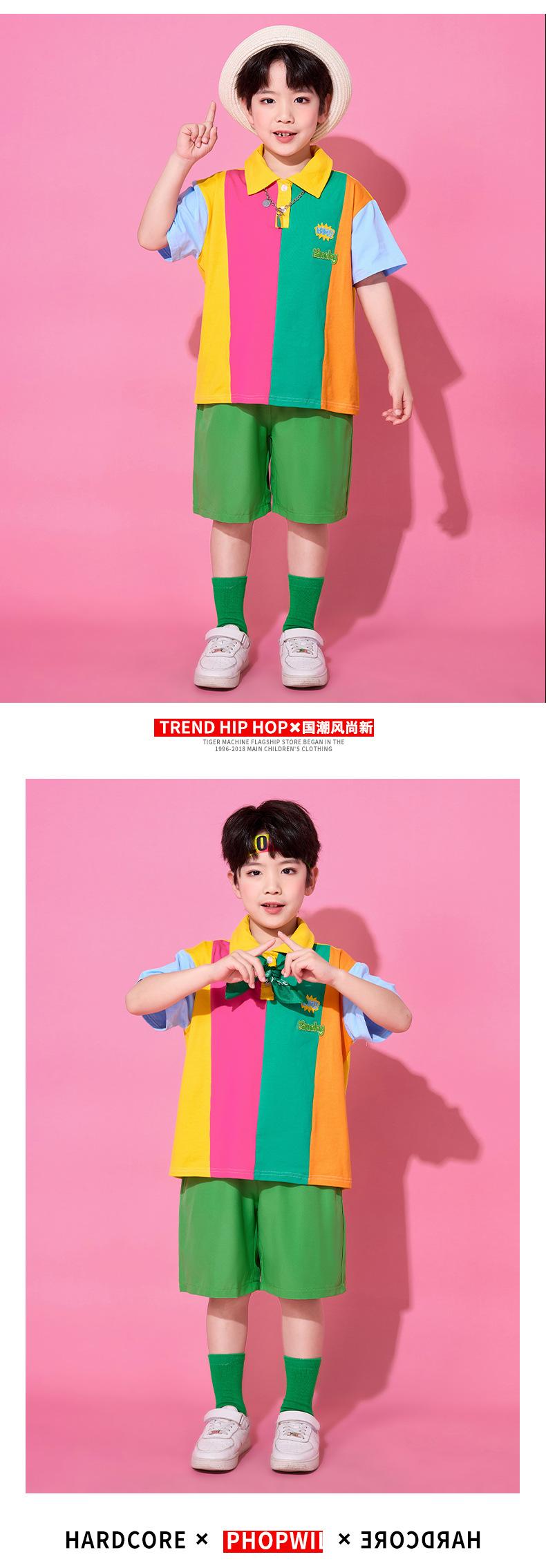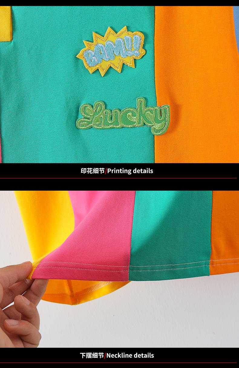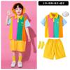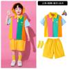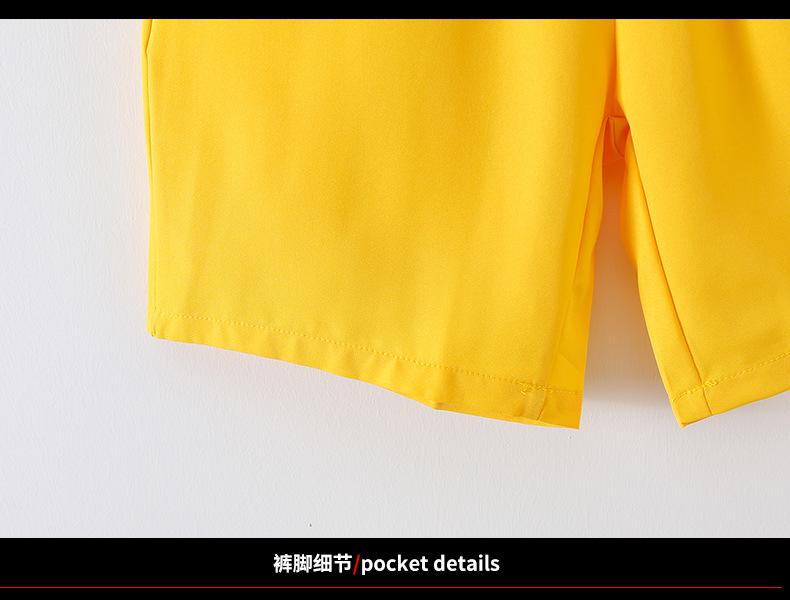 Yellow lapel color block short sleeves, Orange shorts, Yellow shorts, Rose red shorts, Pure green shorts, Gree...